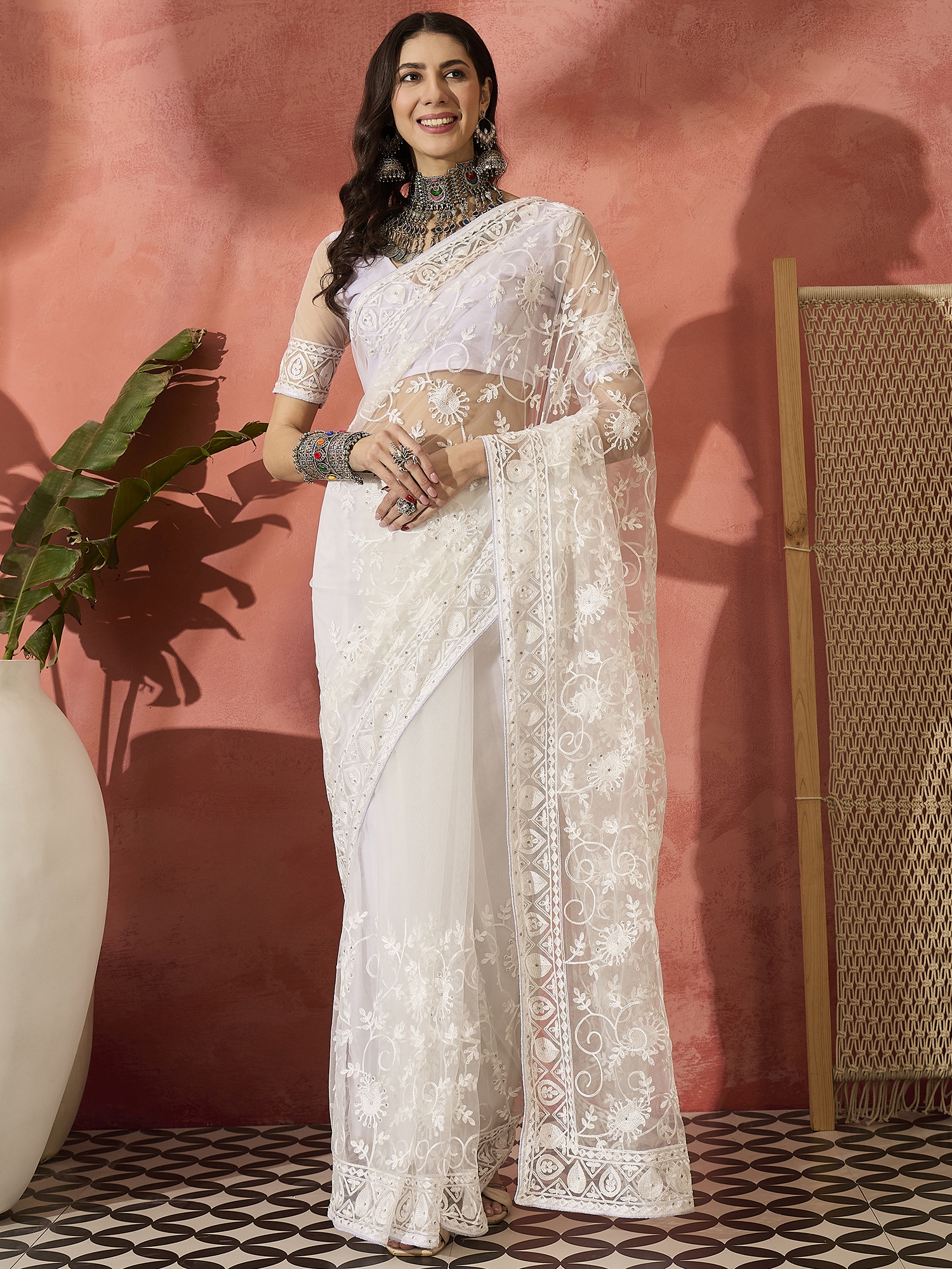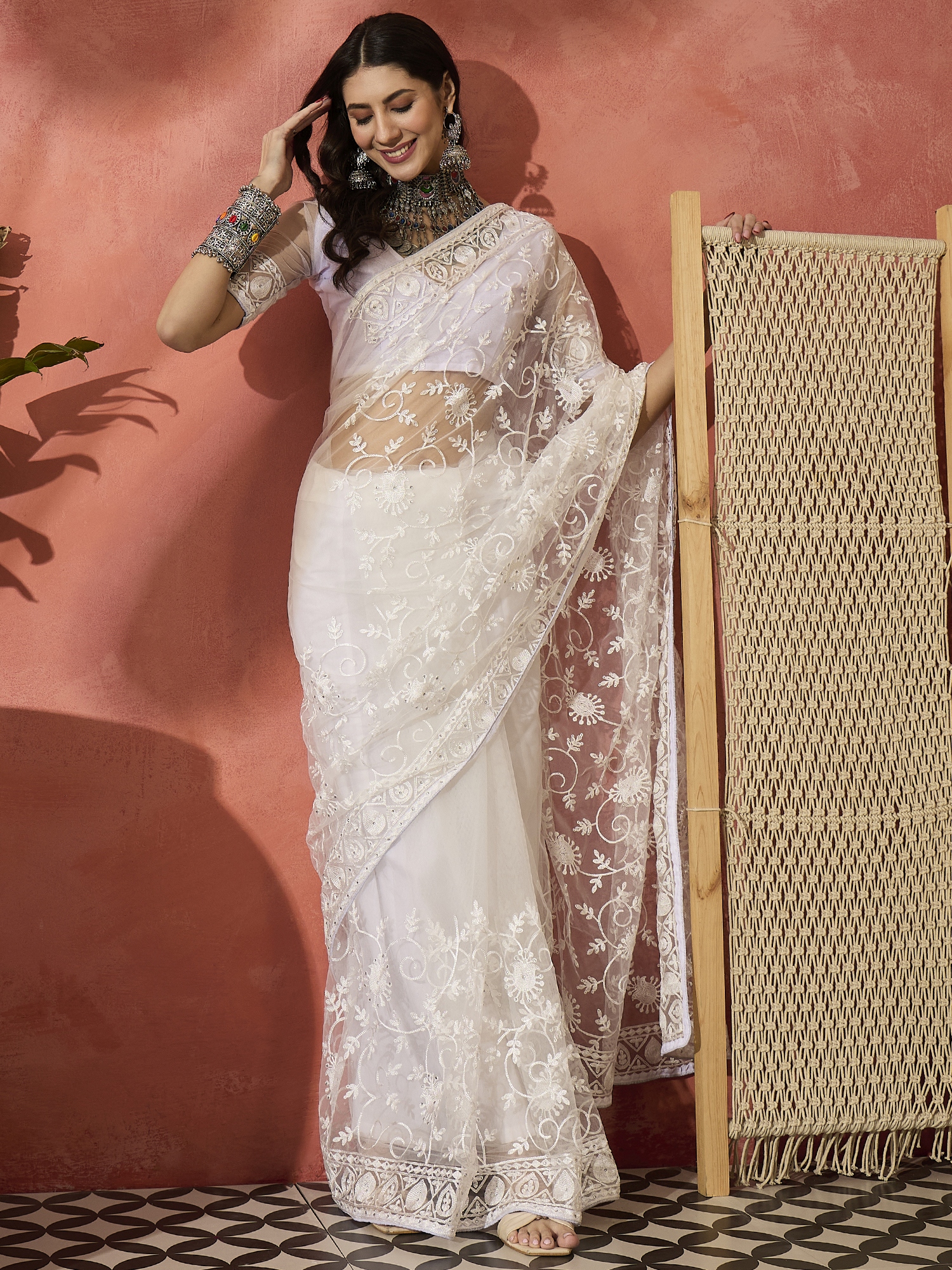 AASTHA FASHION Fashion Dream Womens White Net Saree | Soft & Elegant Traditional Wear