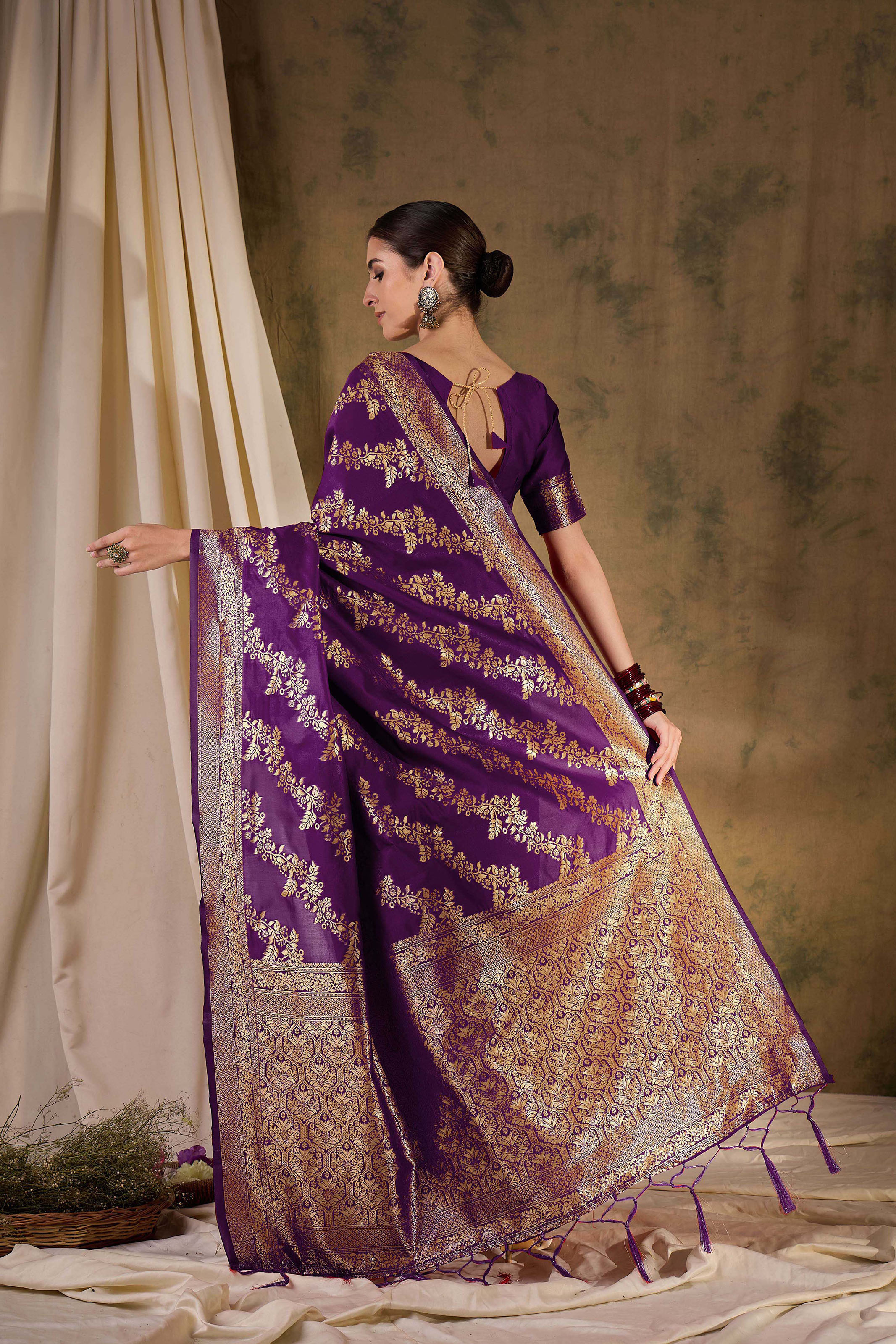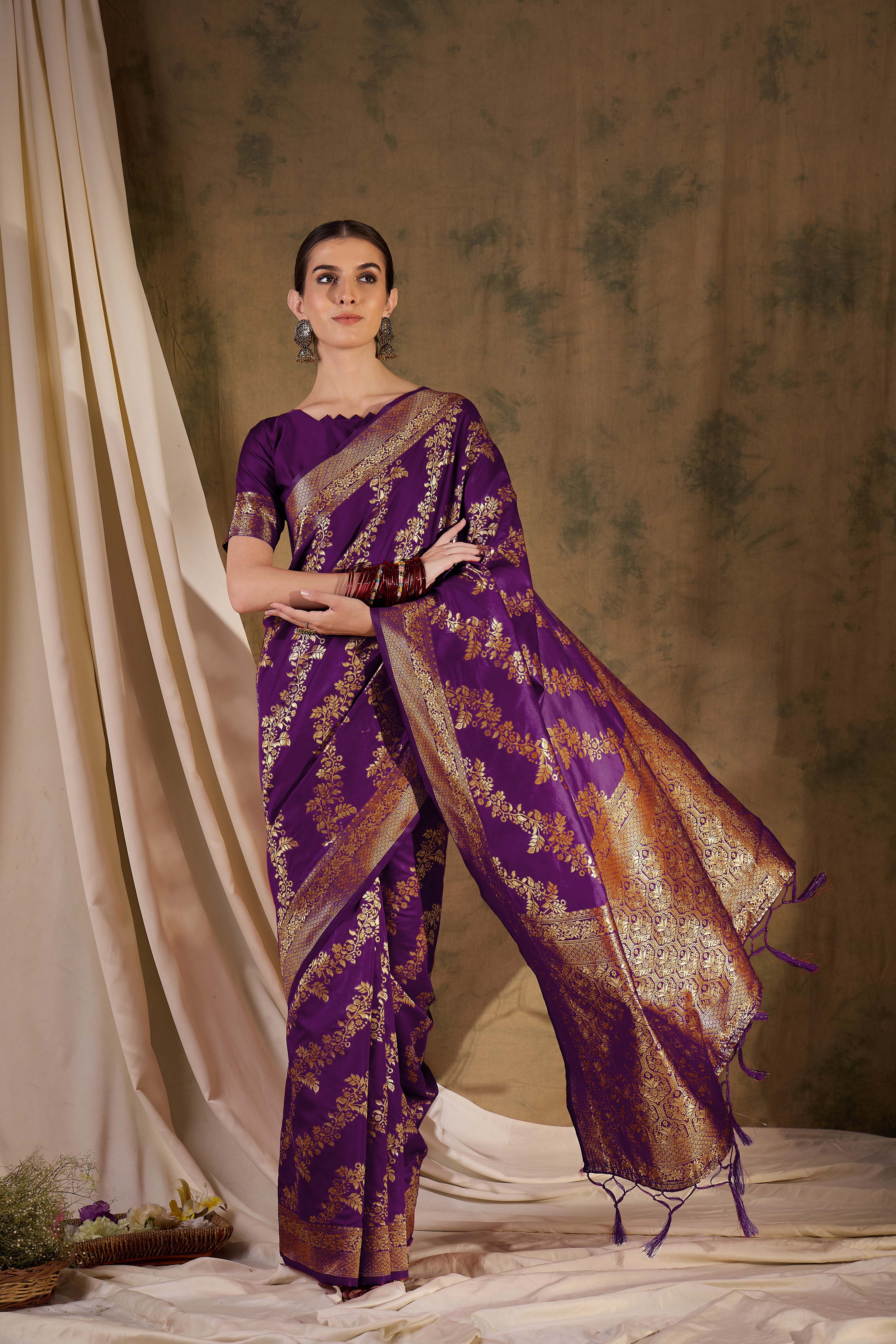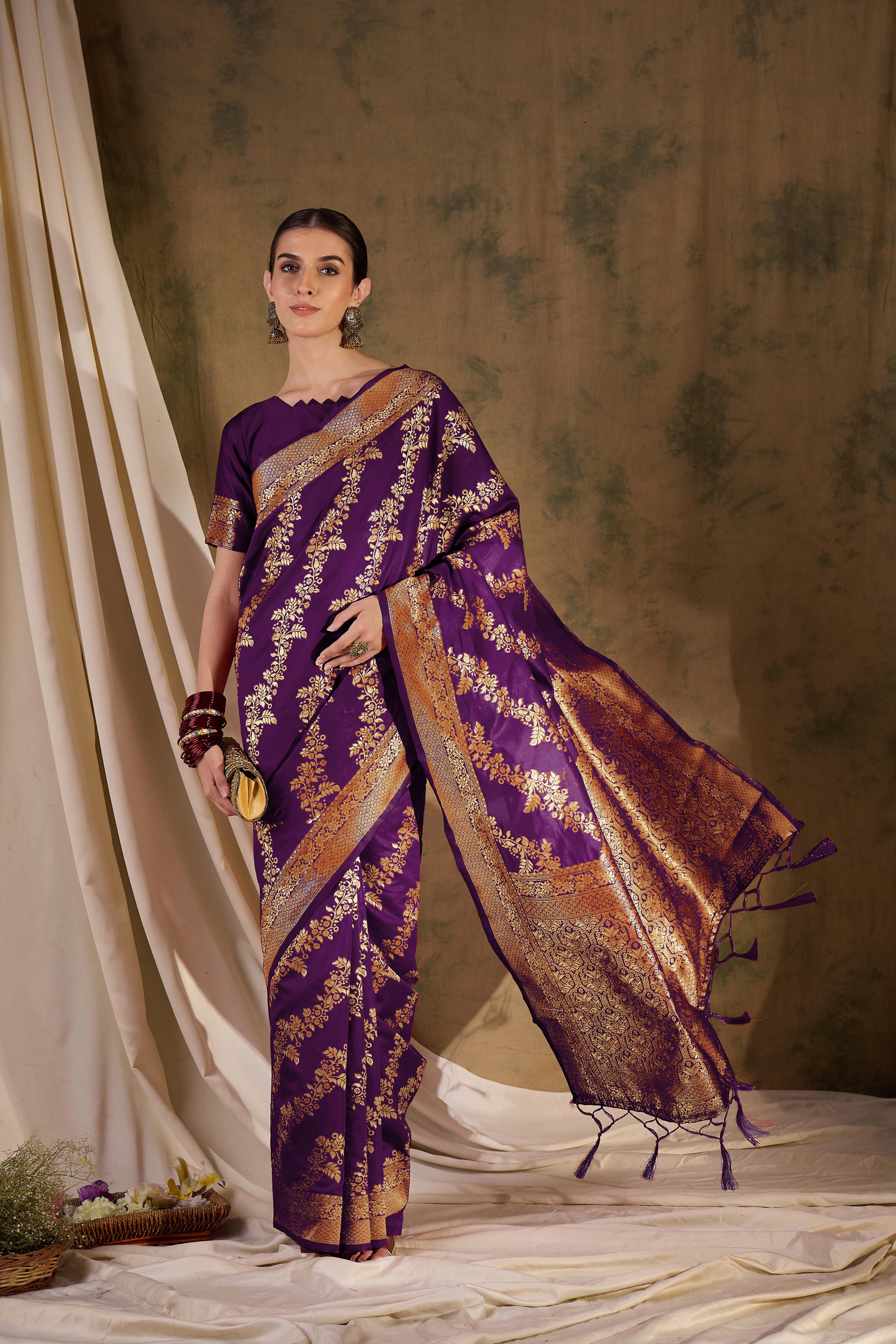 AASTHA FASHION Fashion Dream Womens Wine Banarasi Silk Saree | Soft & Elegant Traditional Wear