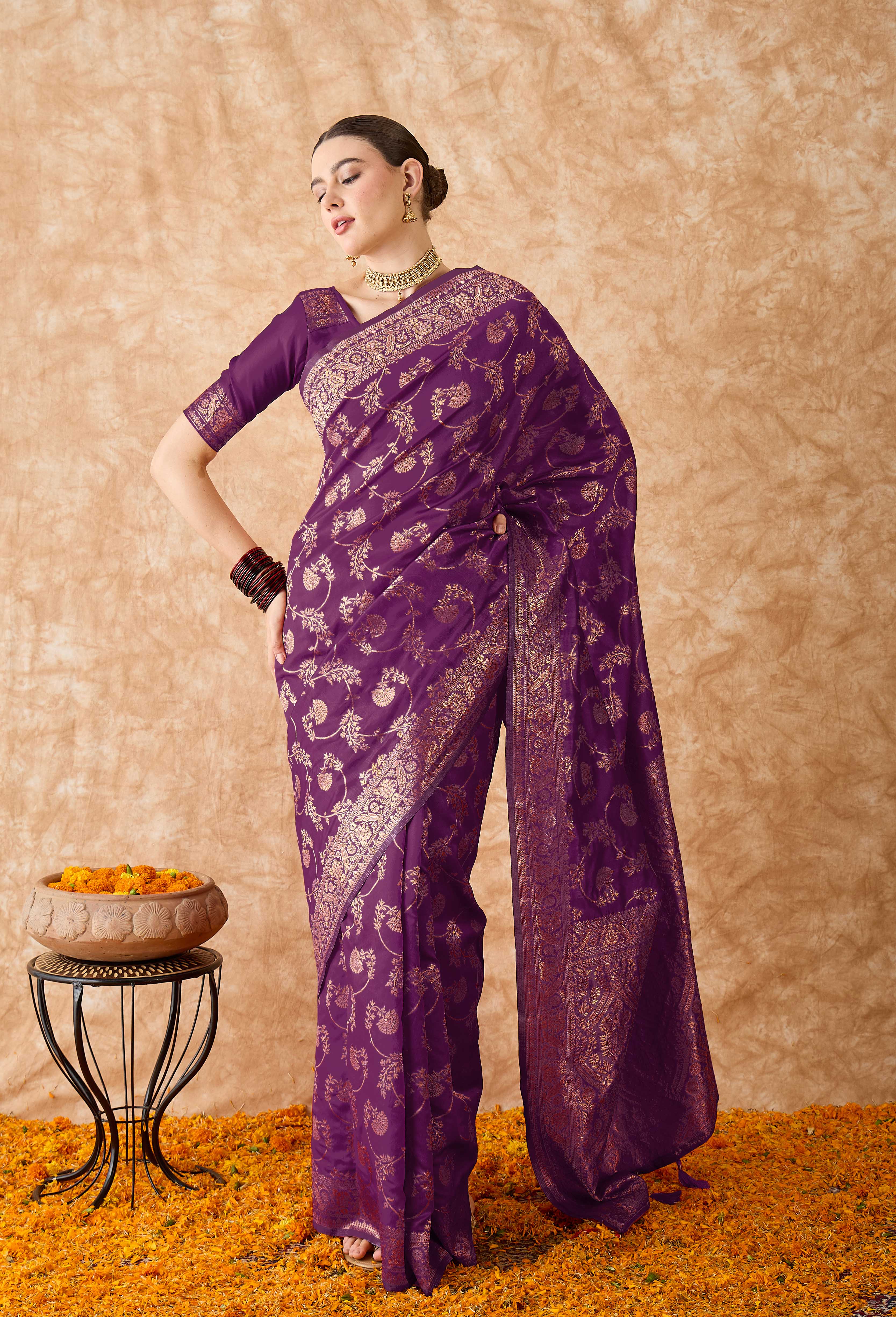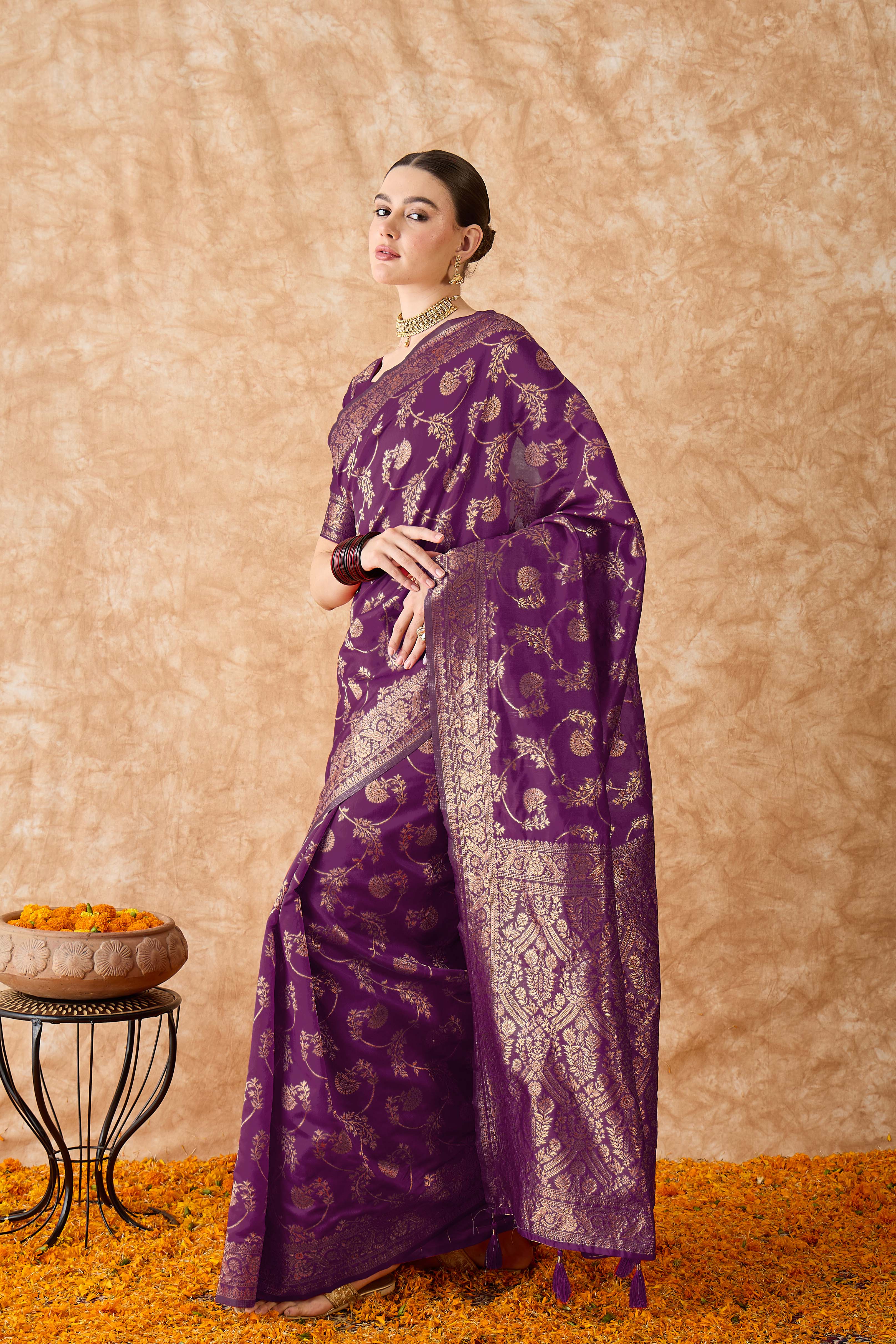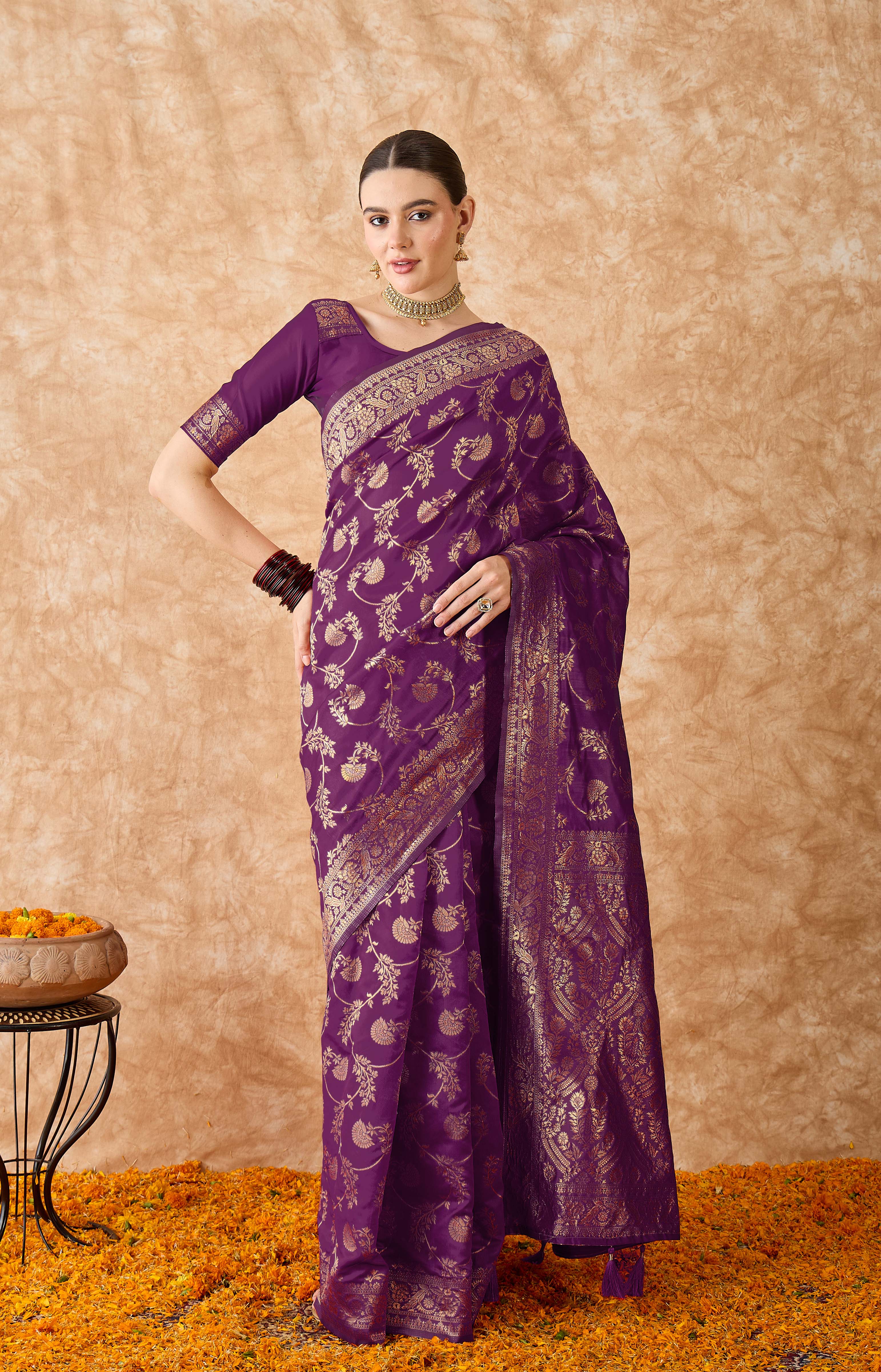 AASTHA FASHION Fashion Dream Womens Wine Banarasi Silk Saree | Soft & Elegant Traditional Wear