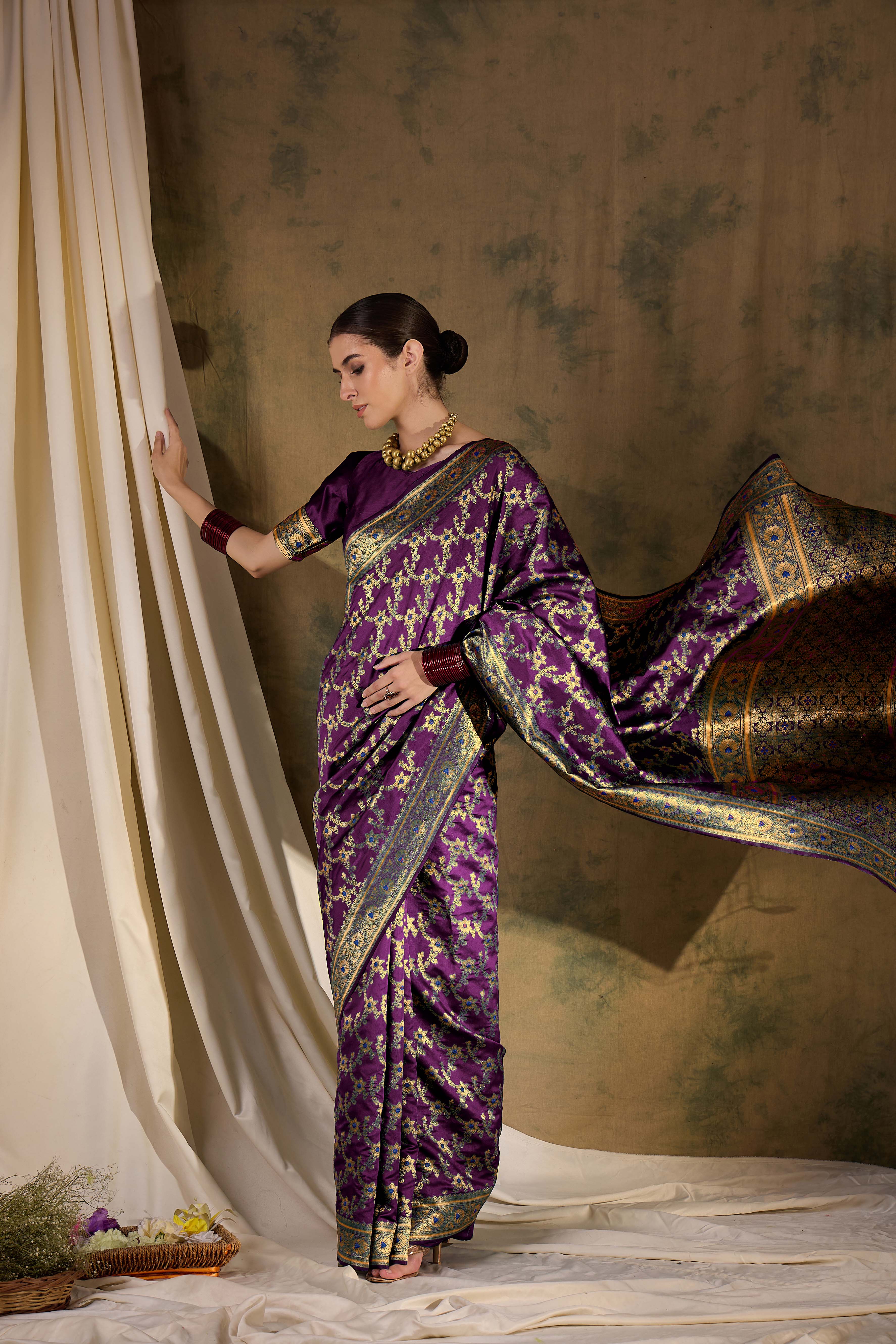 • Saree Fabric-Banarasi Silk ,Blouse Fabric-Banarasi Silk
