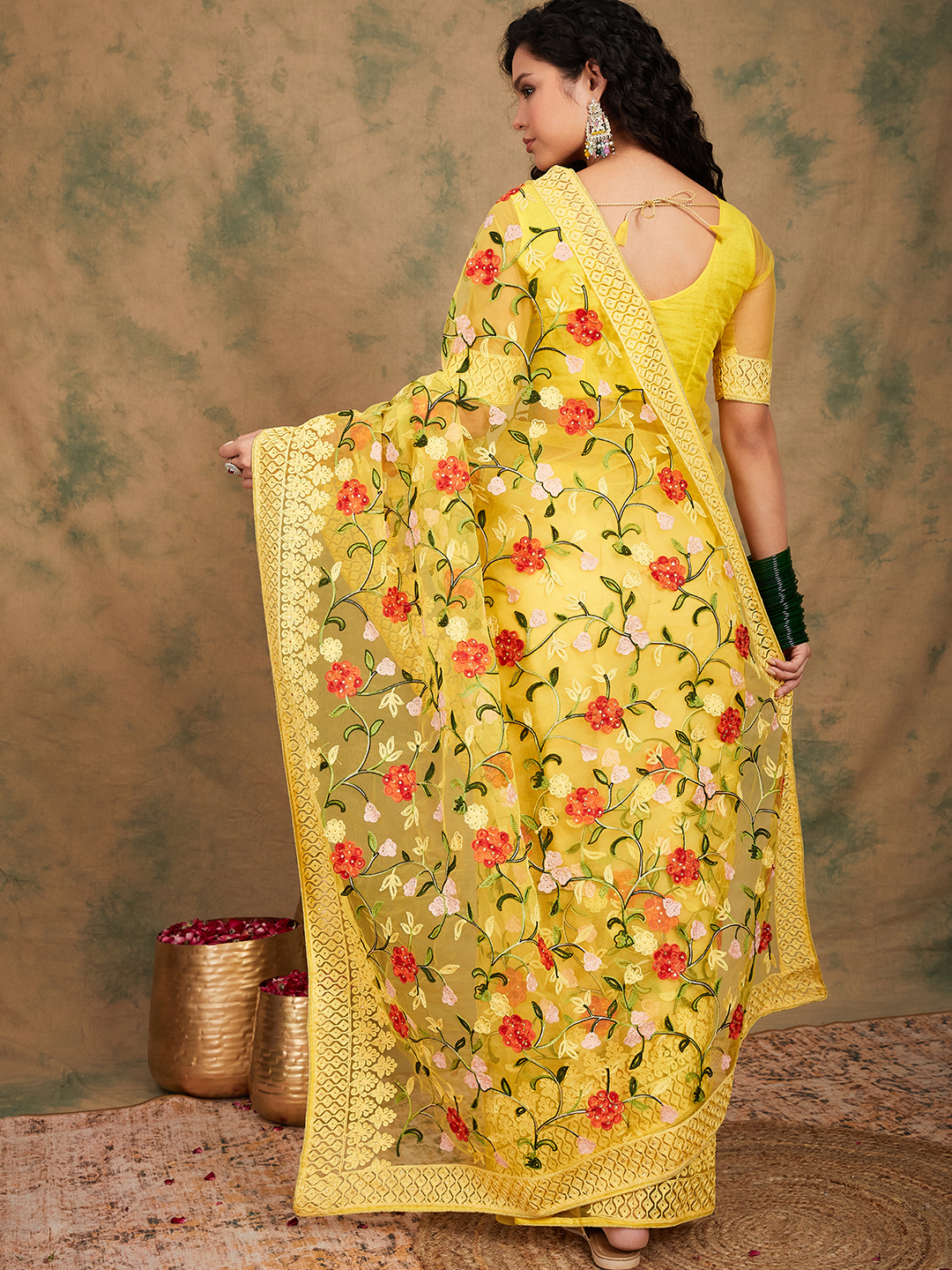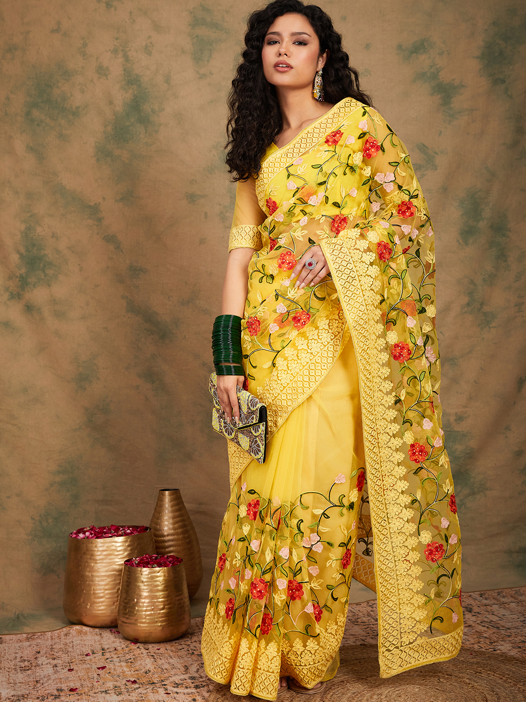 AASTHA FASHION Fashion Dream Womens Yellow Net Saree | Soft & Elegant Traditional Wear