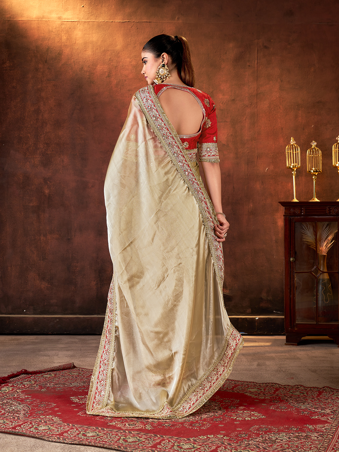 Beige Color Designer Space Silk Fabric Designer Sequins Embroidery Work Saree