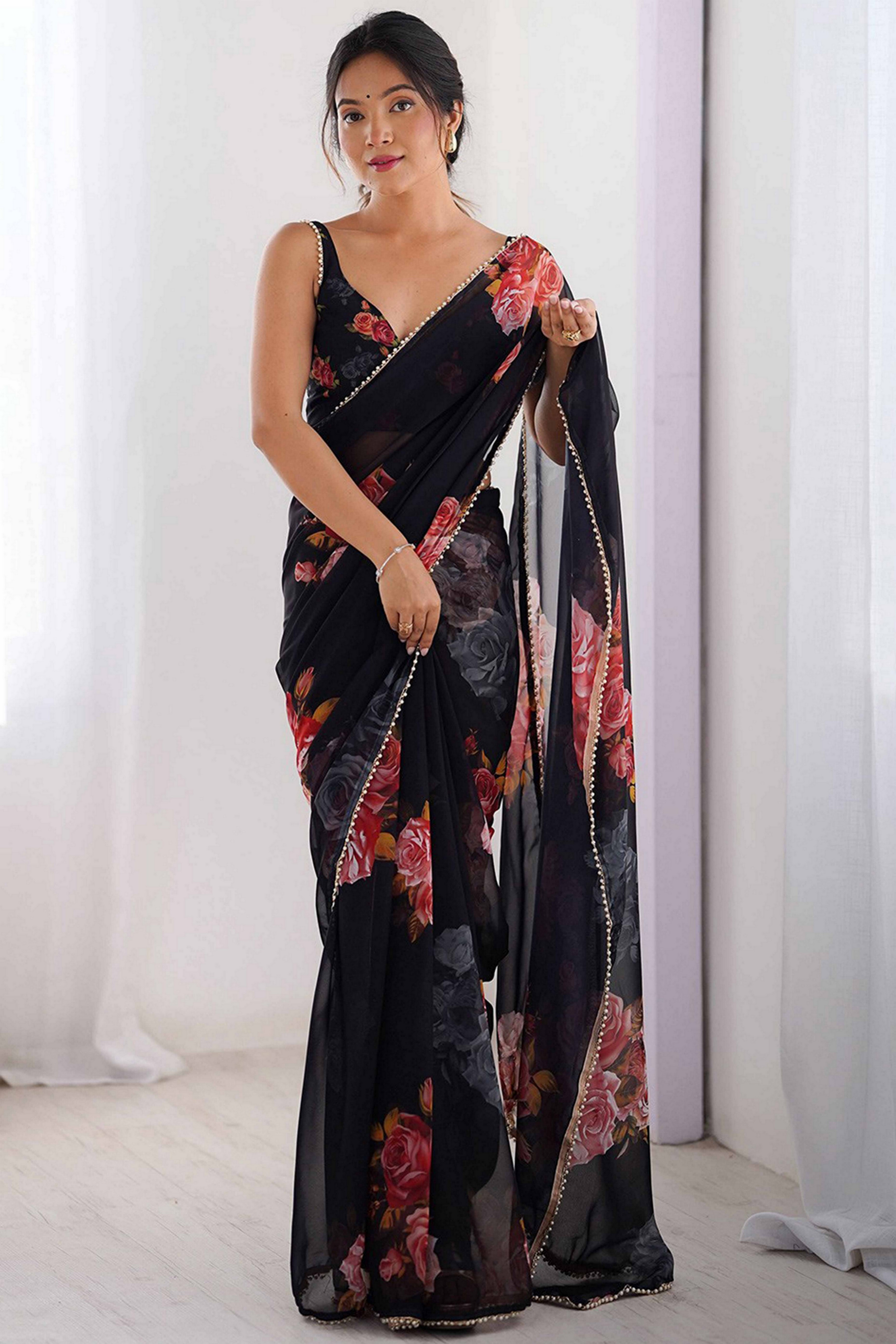 Black Color Beautiful floral Printed Ceremonial Georgette Saree