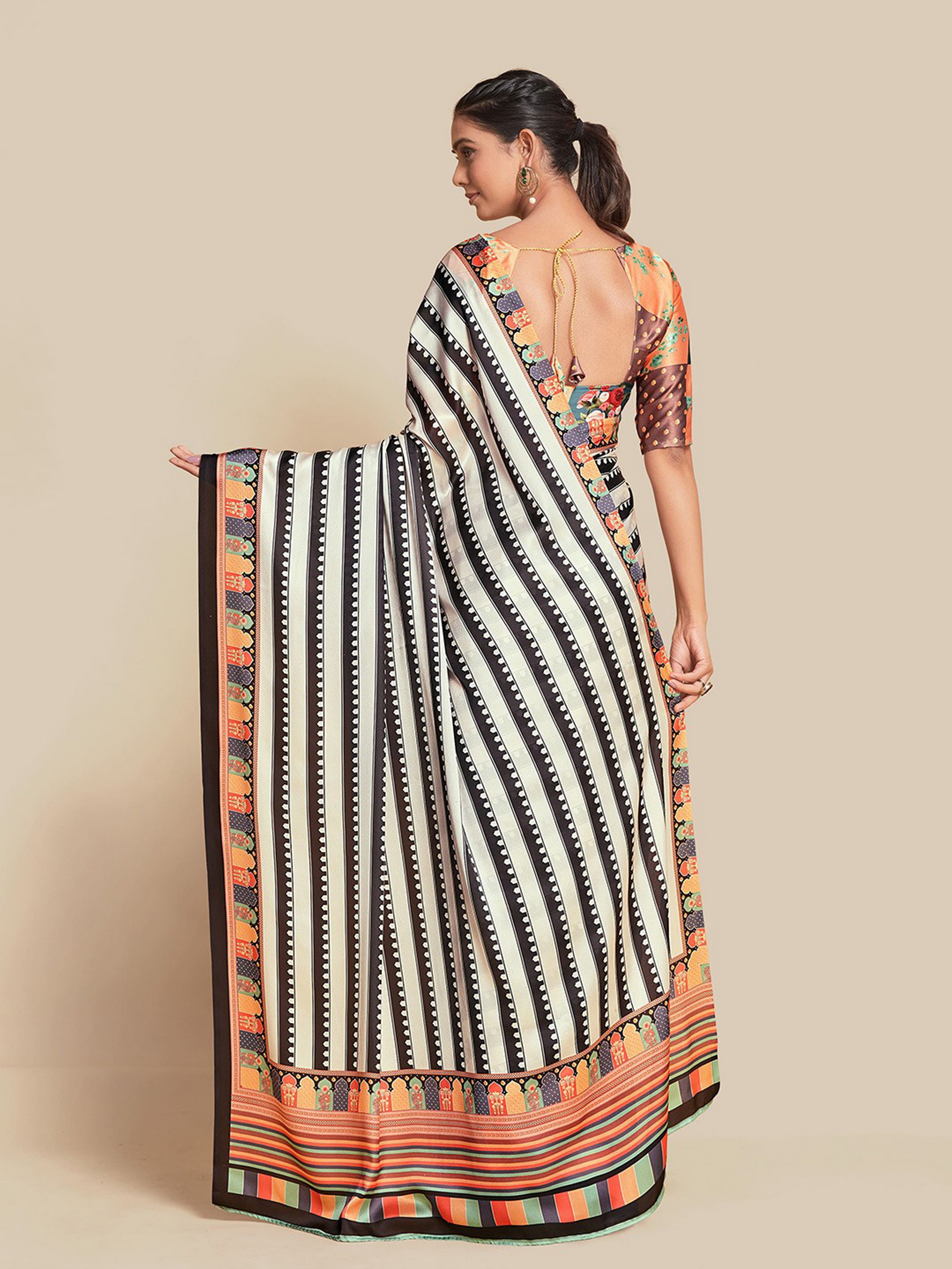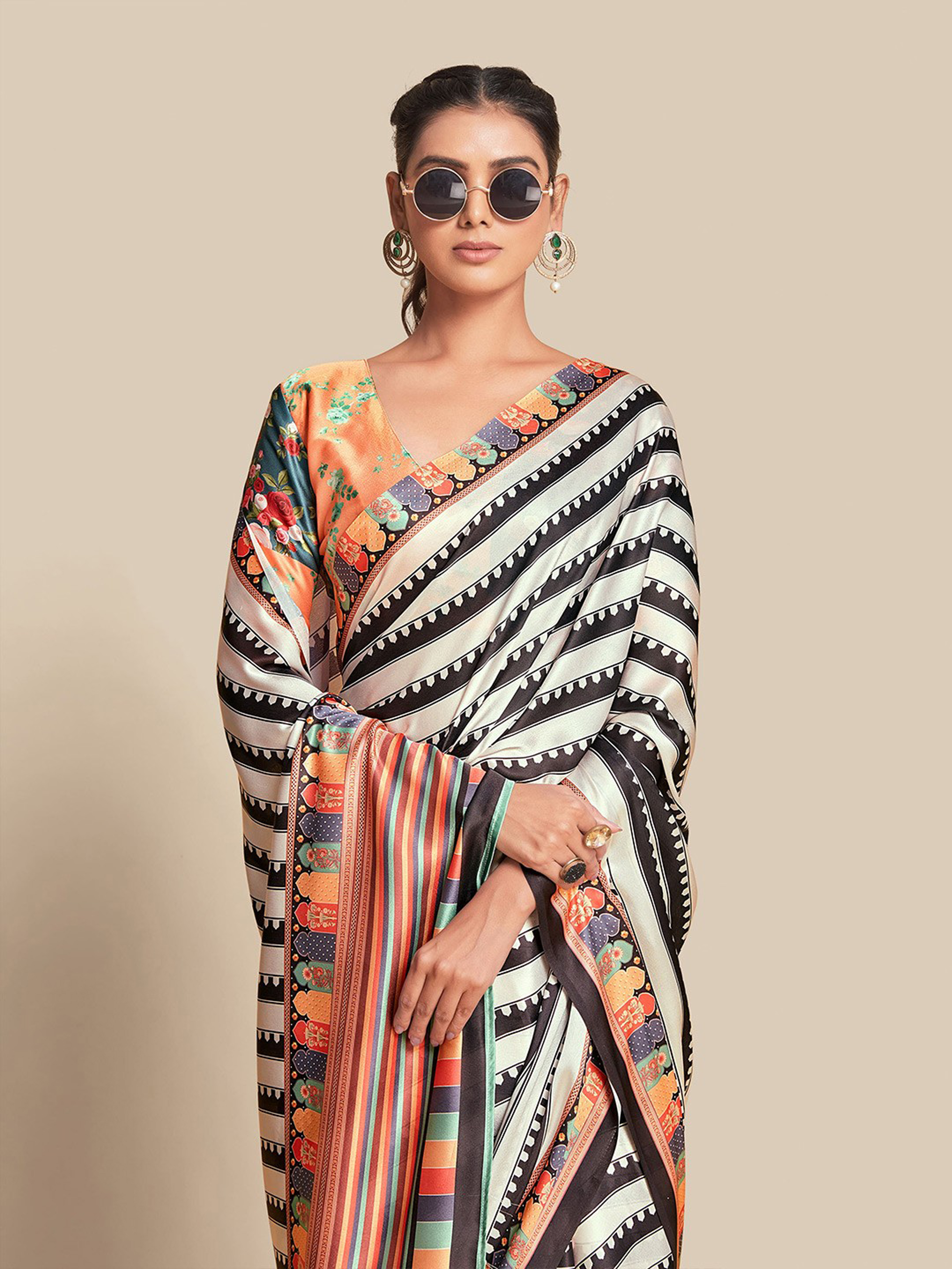 Black Color Bright Moss Fabric Ethnic Partywear Designer Printed Saree
