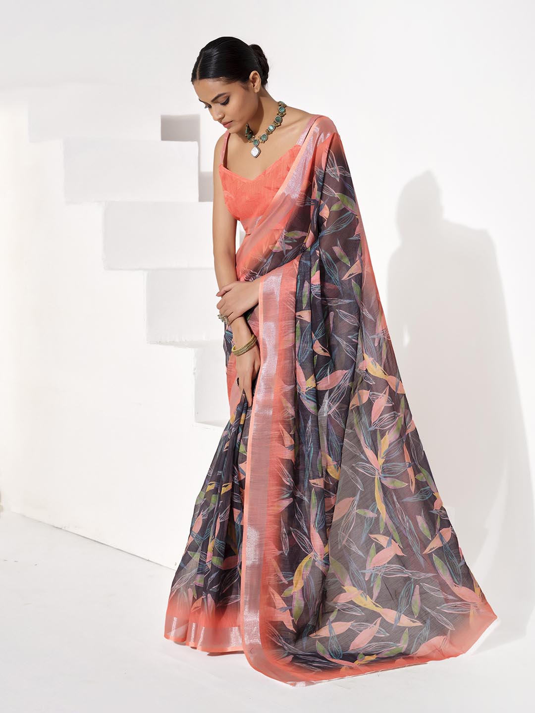 Black Color Cotton Blend Girlie Designer Printed Saree For Rich Sophisticated Looks