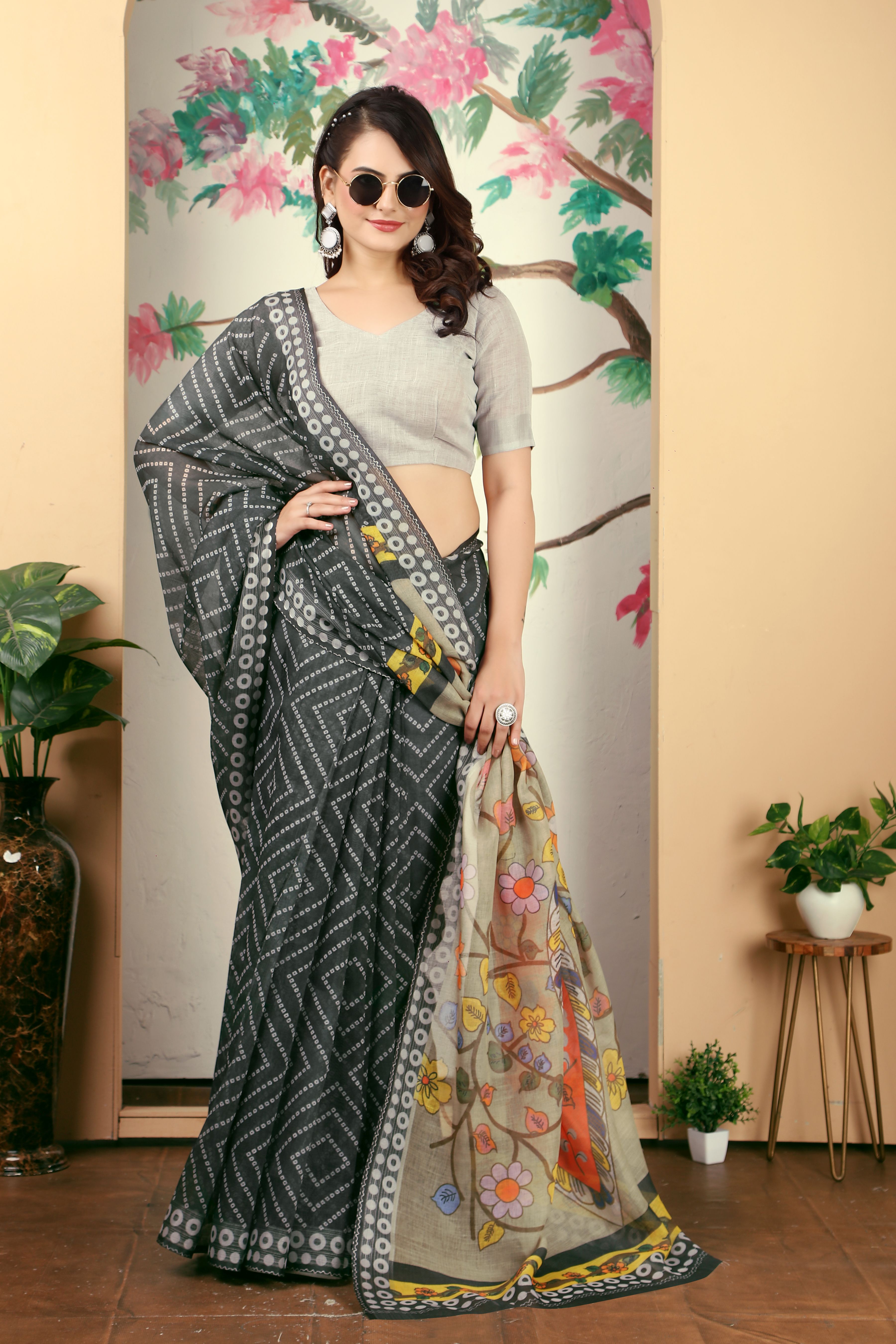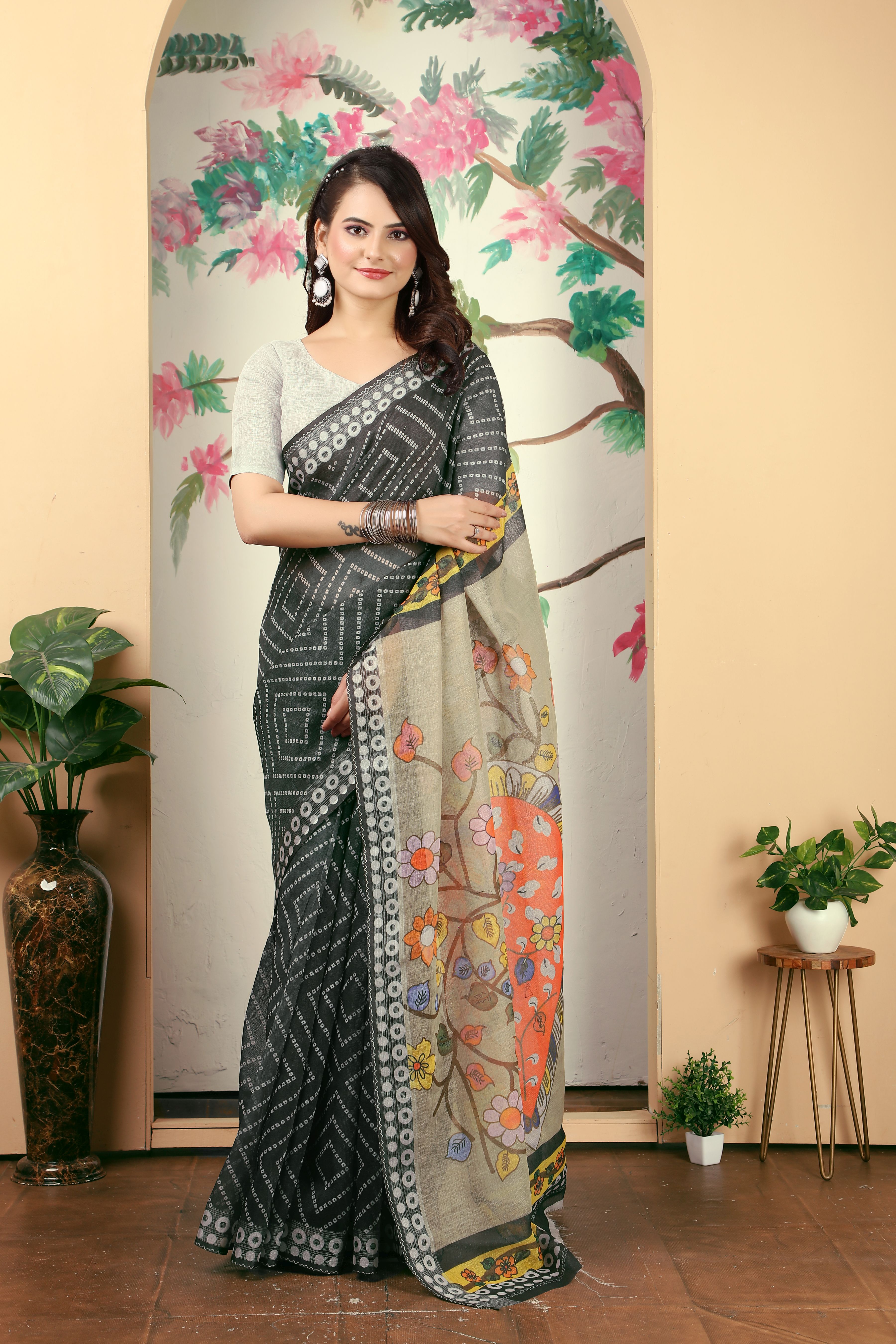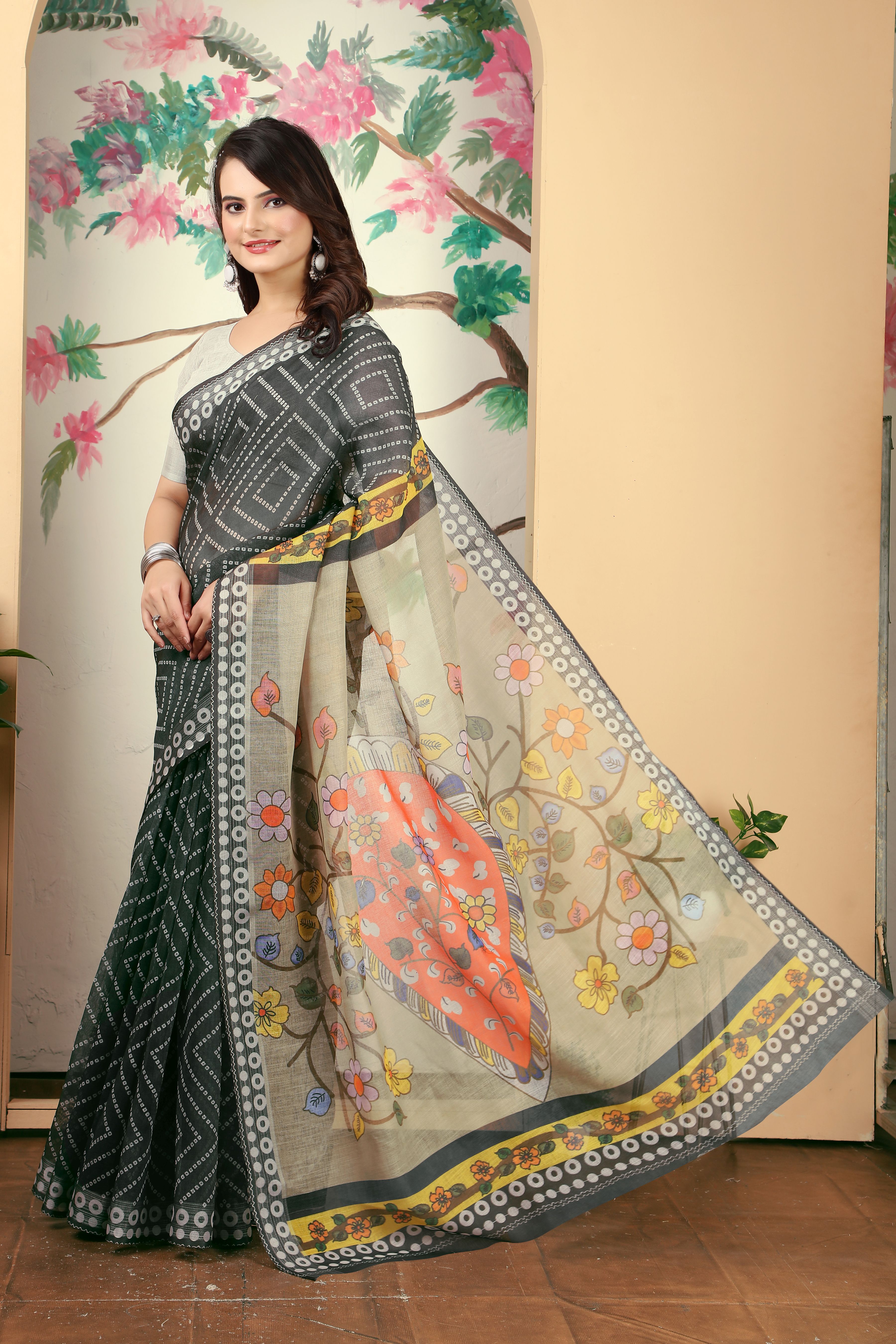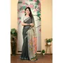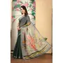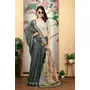 Black Color Linen Cotton Fabric Beautiful Printed Saree