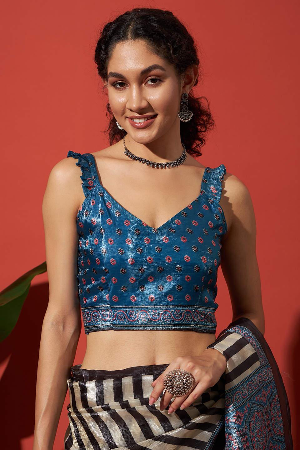 Black Color Tissue Fabric Designer Digital Printed Fancy Trendy Saree