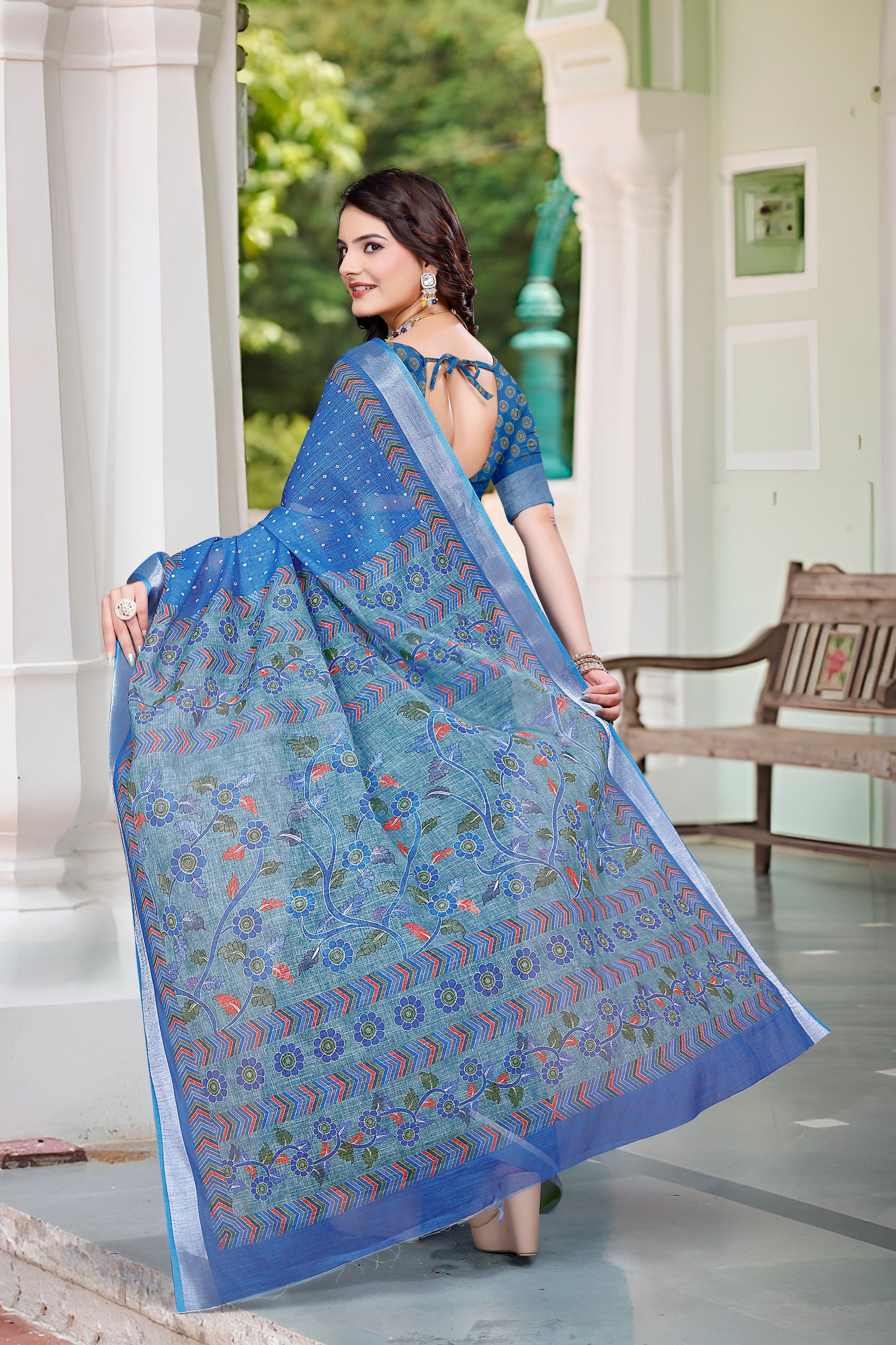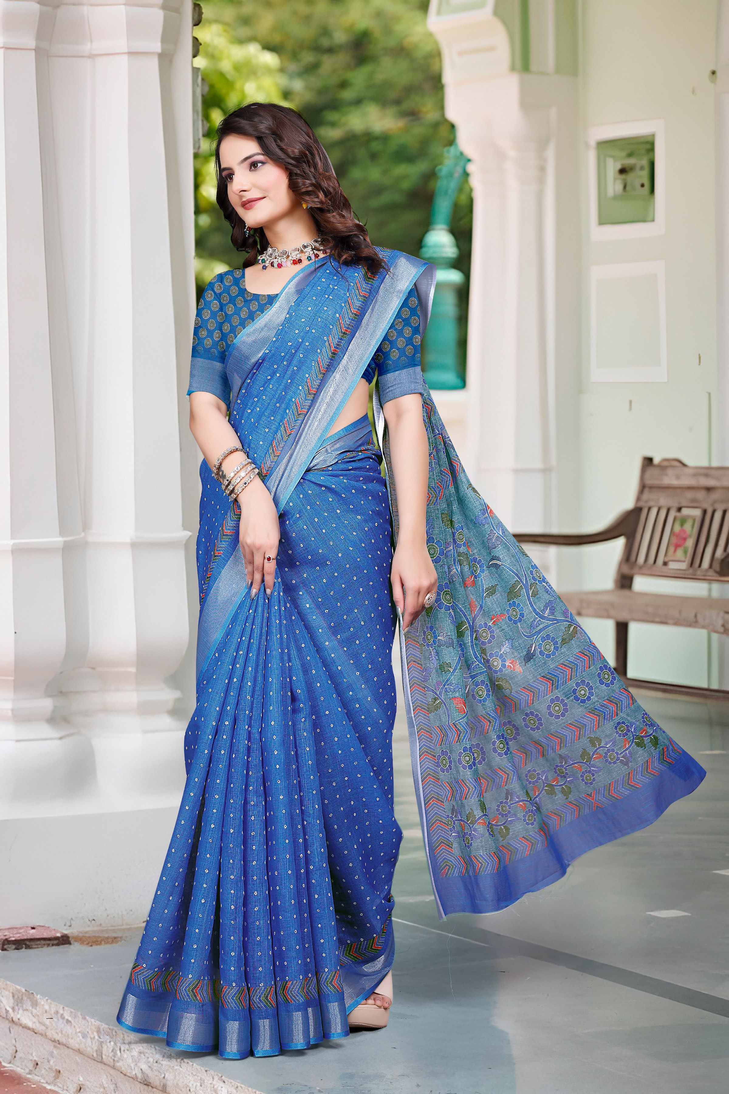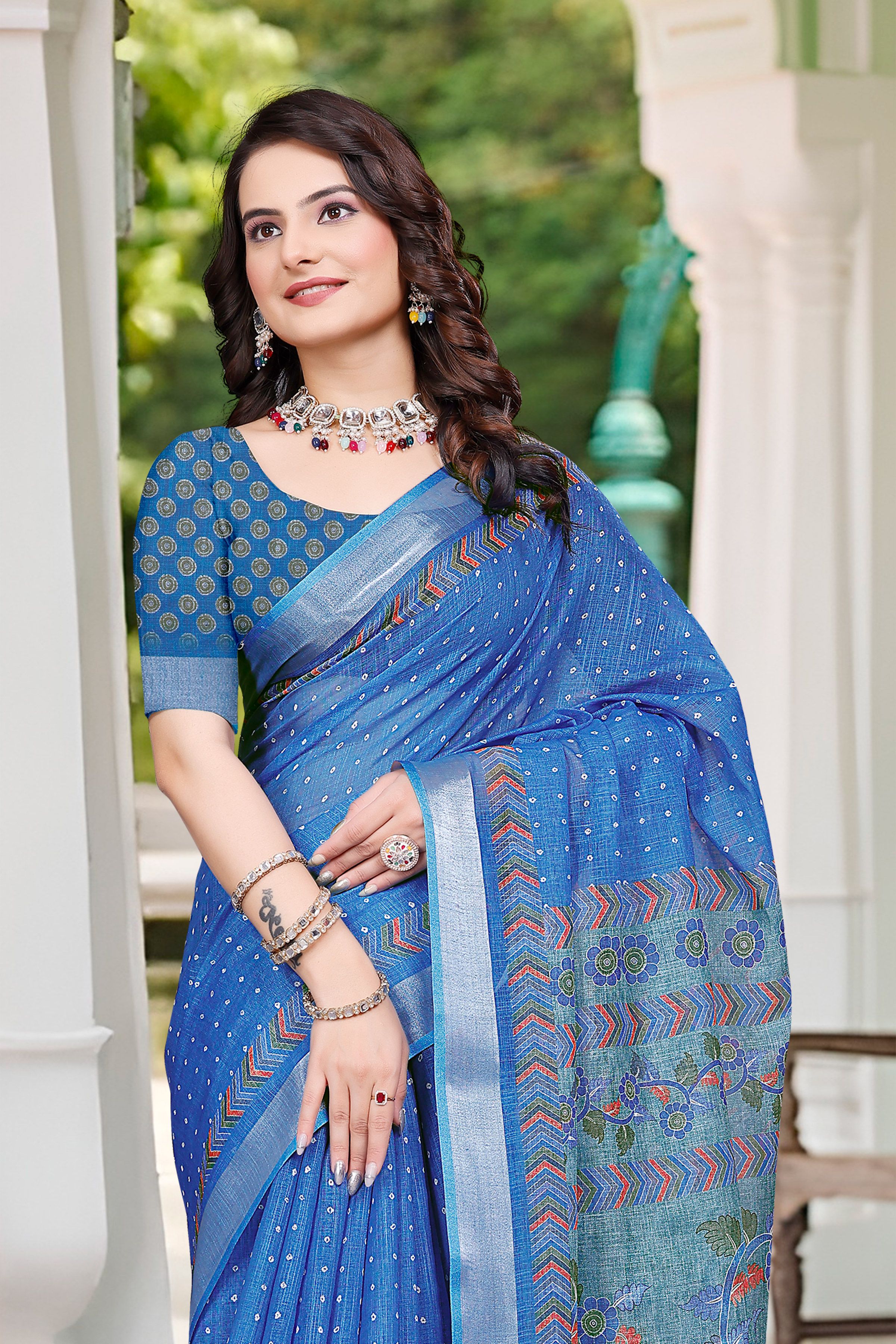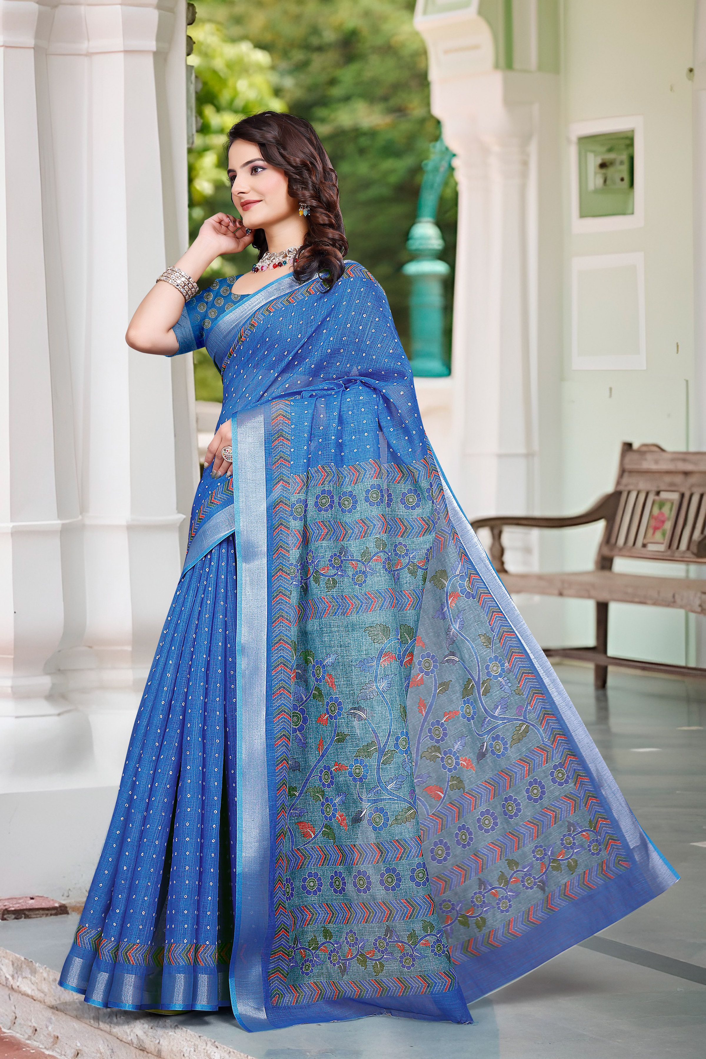 Attractive These Festive Saree in Fine Colored.These Saree Are Linen Cotton And Blouse is Fabricated On Linen Cotton Pair.Its Beautified With Woven Jari Border With Designer Digital Printed.