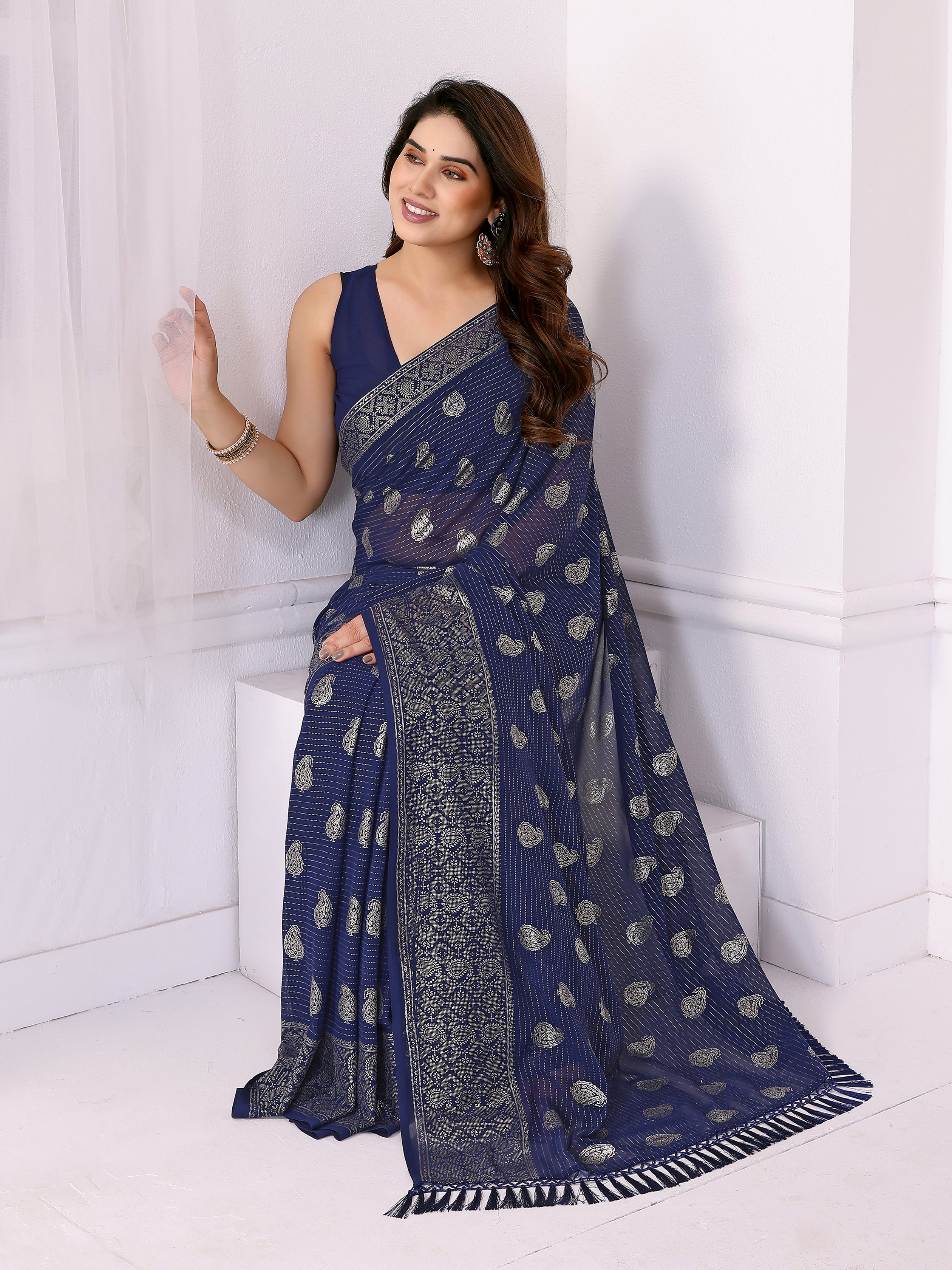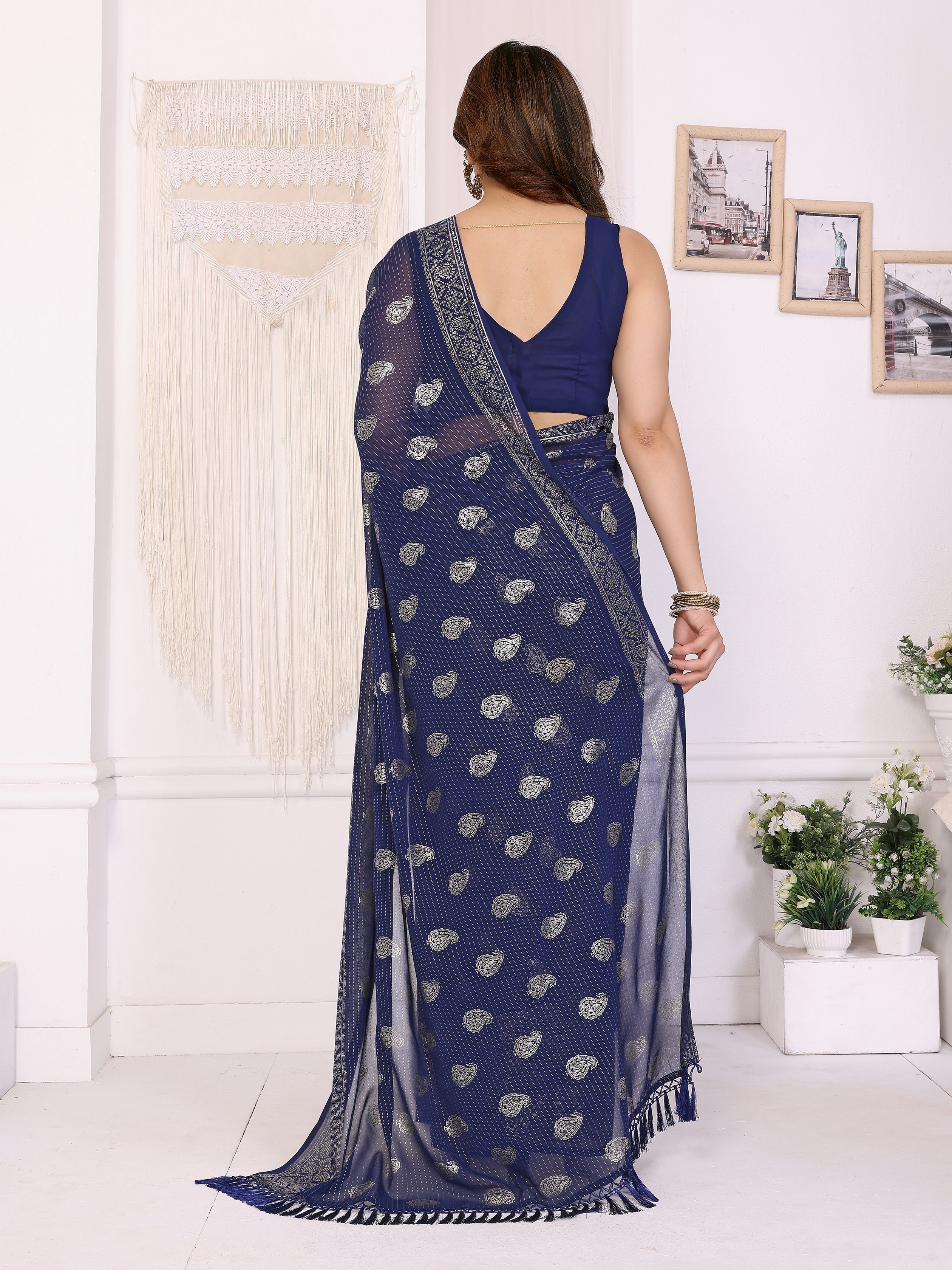 Blue Color Georgette Fabric Designer Foil Printed Ceremonial Saree