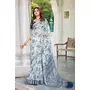 Blue Color Linen Cotton Fabric Beautiful Festive Special Saree