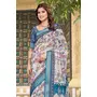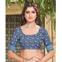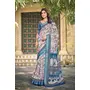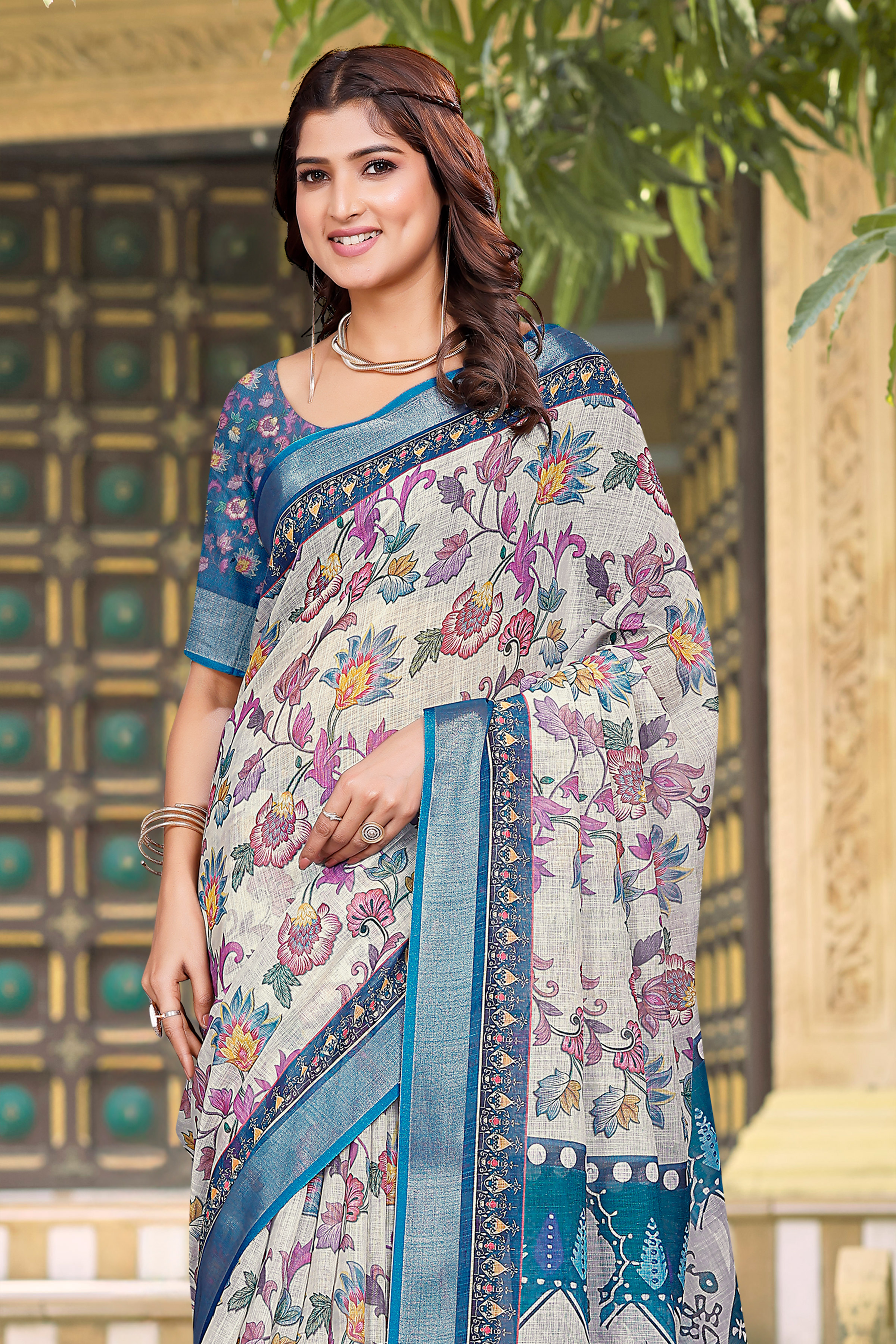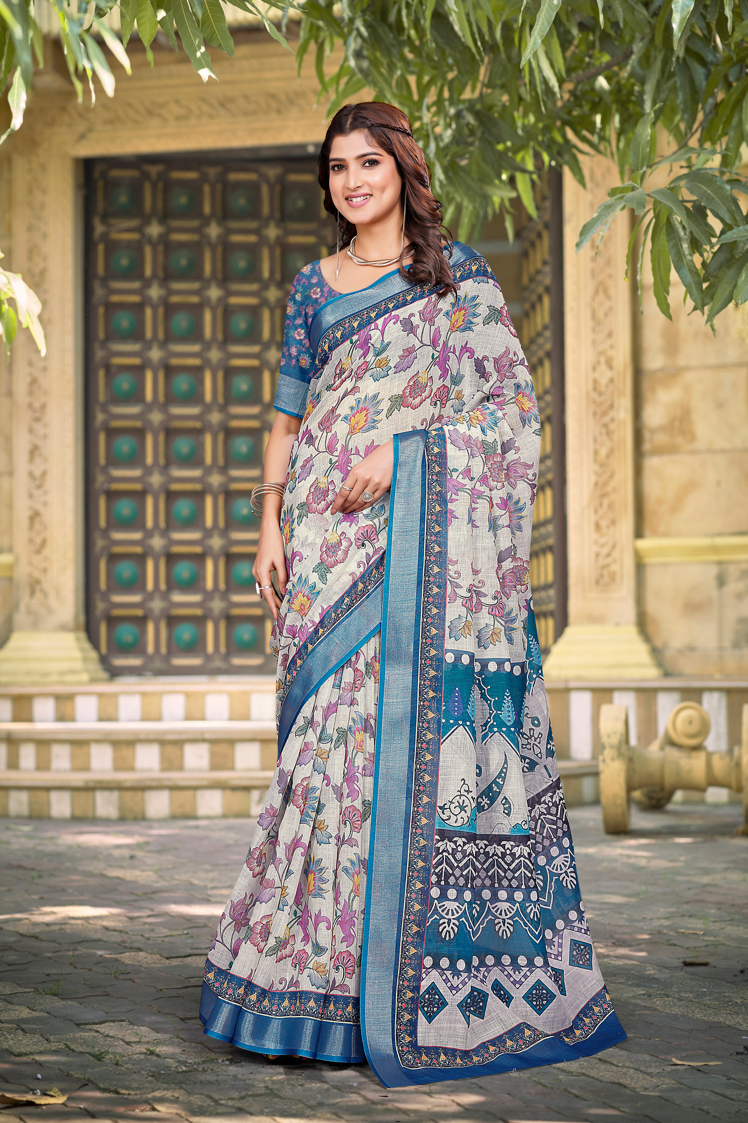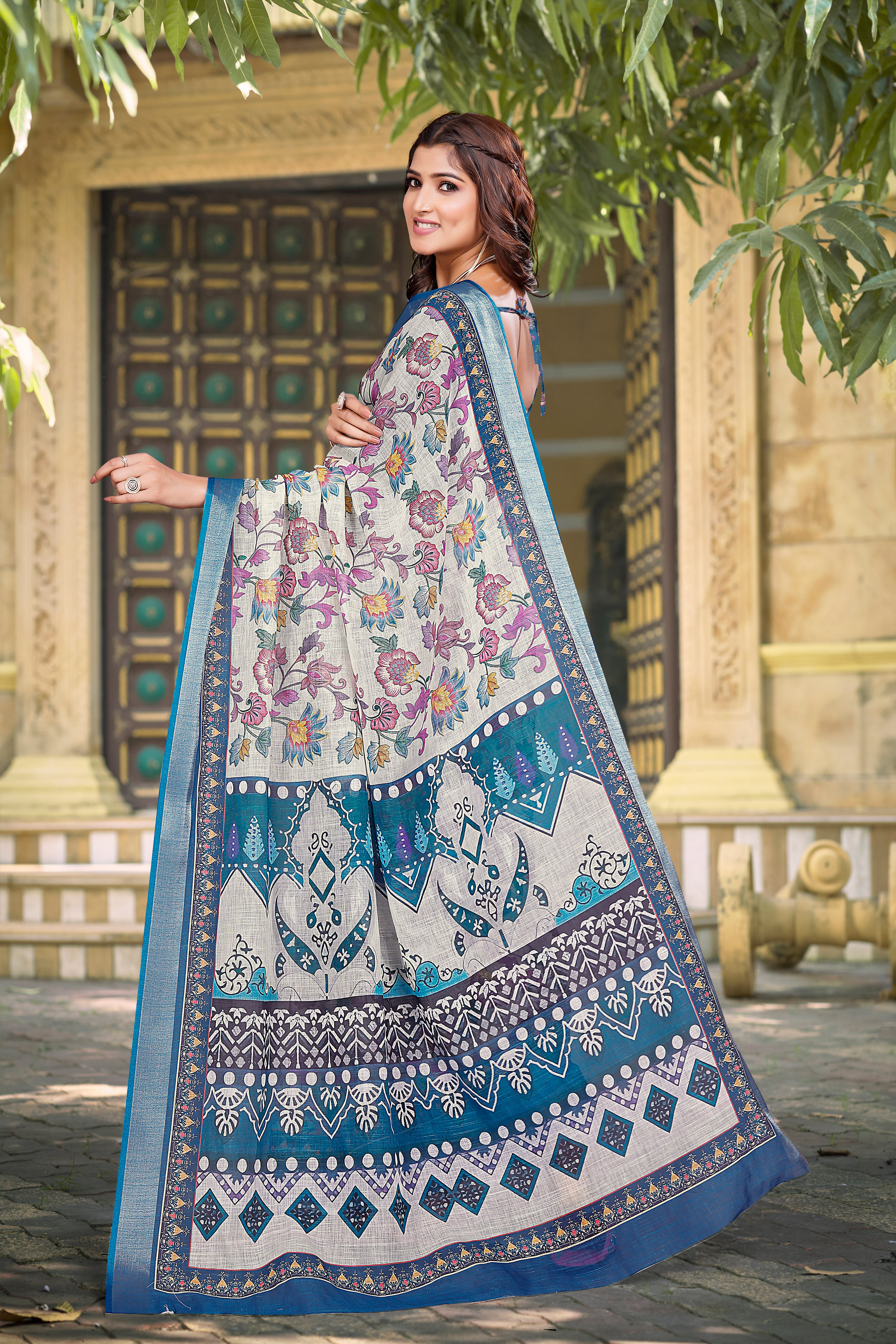 Blue Color Linen Cotton Saree With Smart Partywear Printed Looks