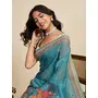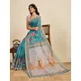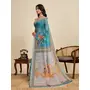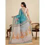 Blue Color Linen Fabric Beautiful Printed Ceremonial Saree