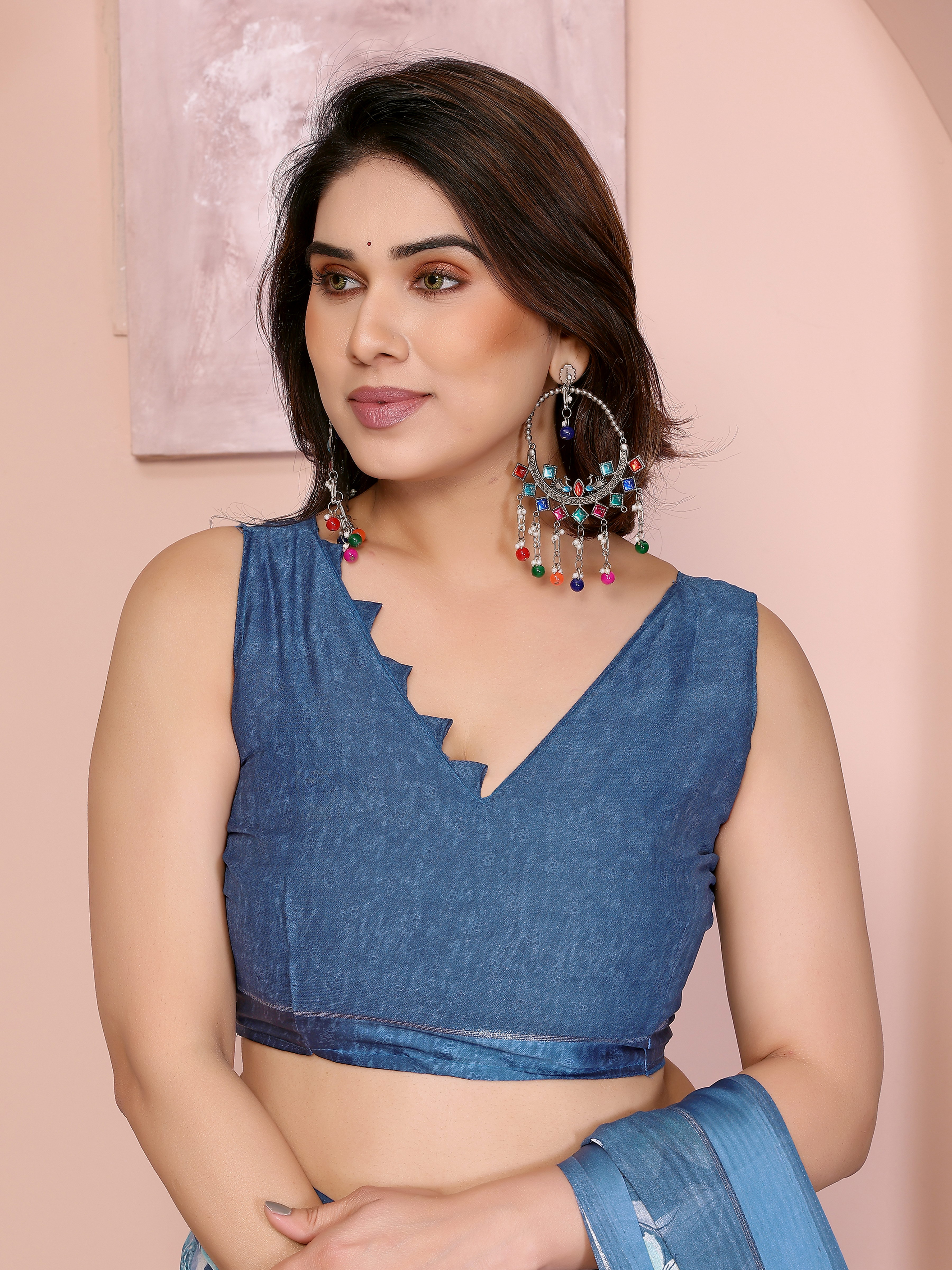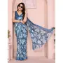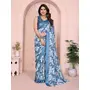 Blue Color Moss Satin Patta Woven Patta Designer Printed Fancy Saree