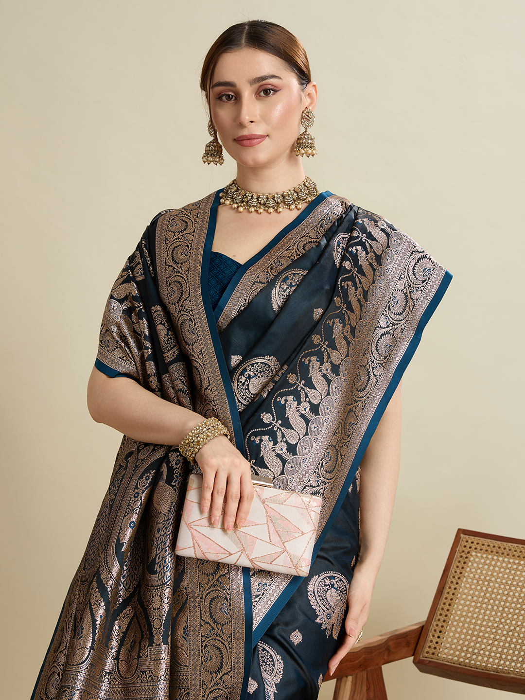 Blue Color Satin Silk Wevon Jari Designer Trendy Festive Saree