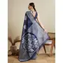 Blue Color Soft Silk Fabric Wevon Flower Designer Stylish Partywear Saree