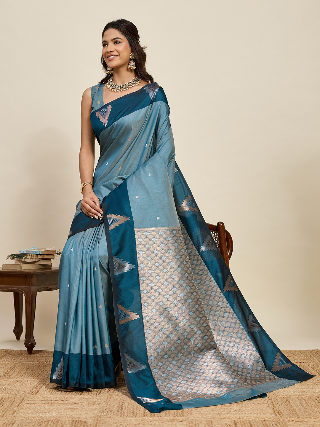 Blue Color Soft Silk Woven Jari Designer Saree