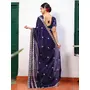 Blue Color Tissue Fabric Embroidery Work Partywear Saree
