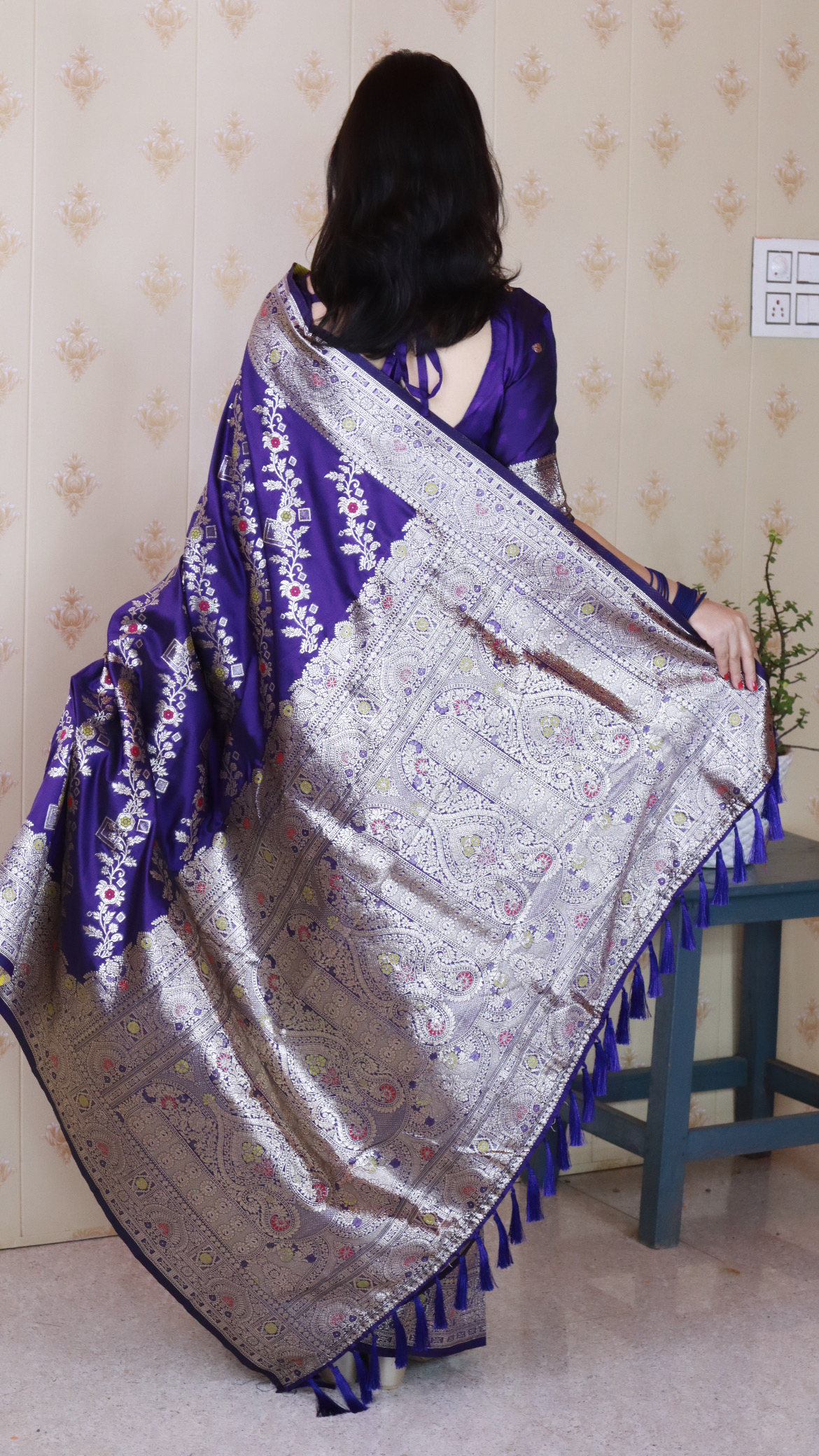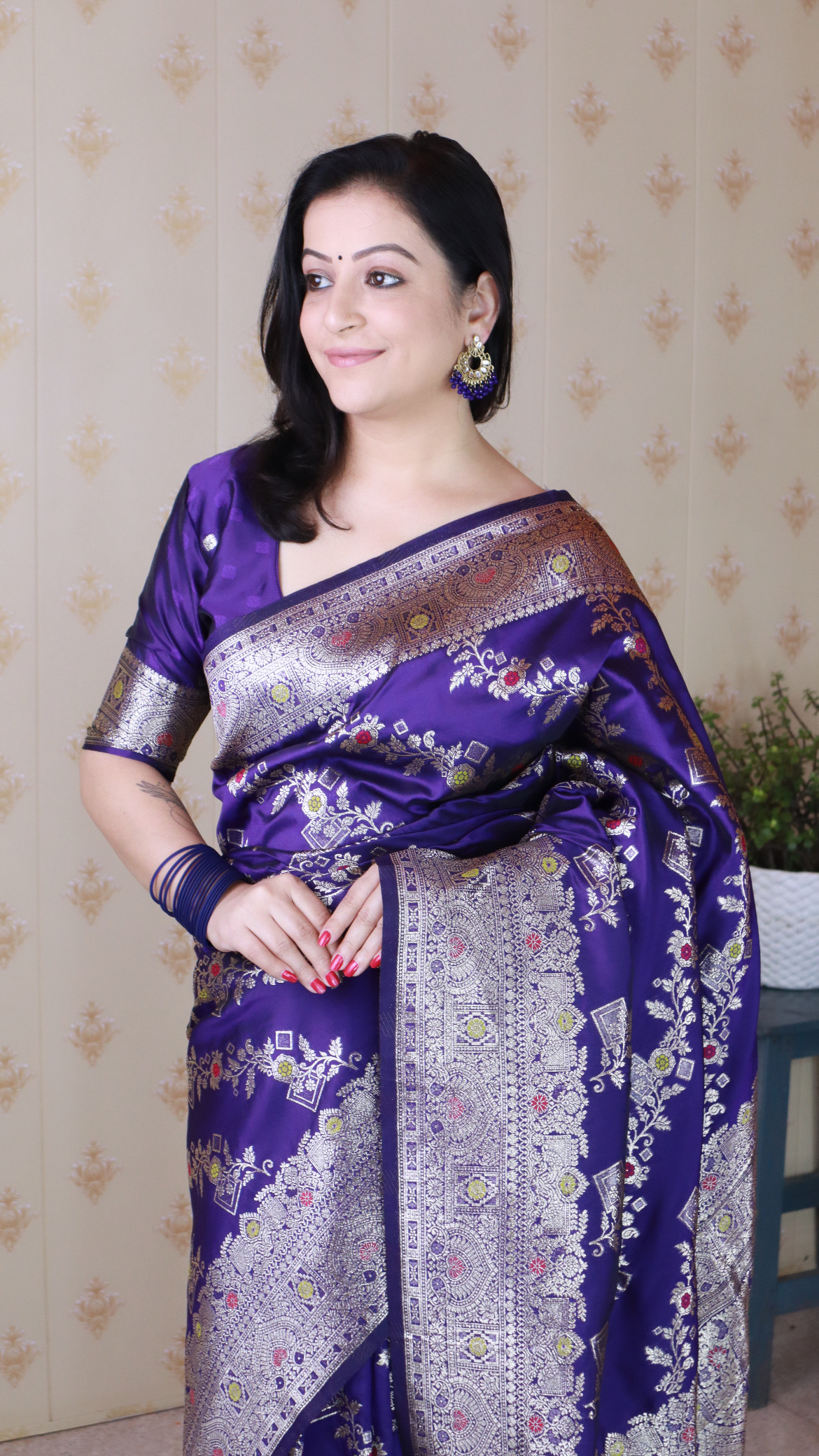 Blue Color Woven Silver Jari Designer Banarasi Silk Ceremonial Saree
