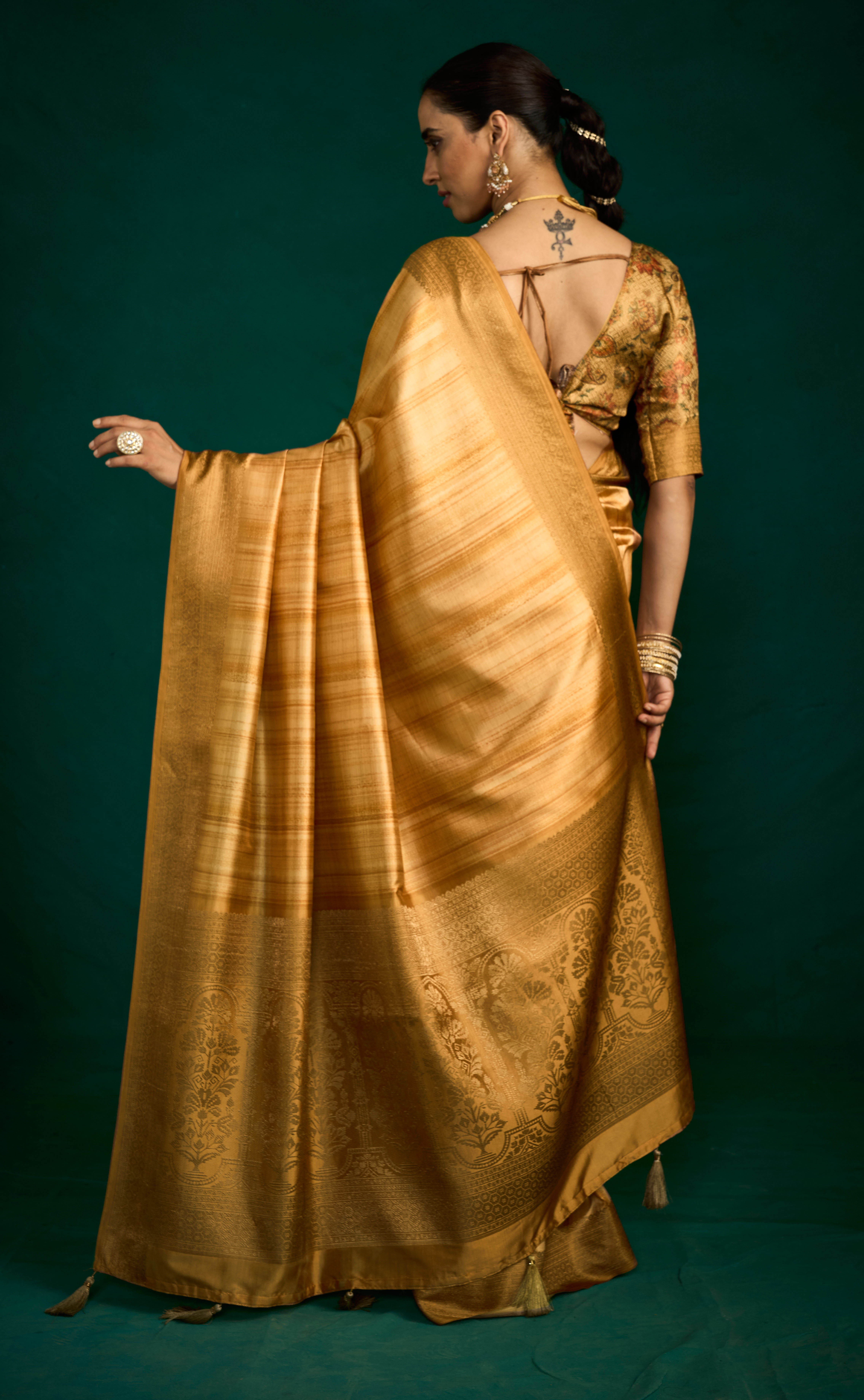 Bronze Gold Color Beautiful Tussar Silk Fabric Sophisticated Woven Designer Saree