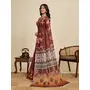 Brown Color Linen Fabric Beautiful Printed Ceremonial Saree