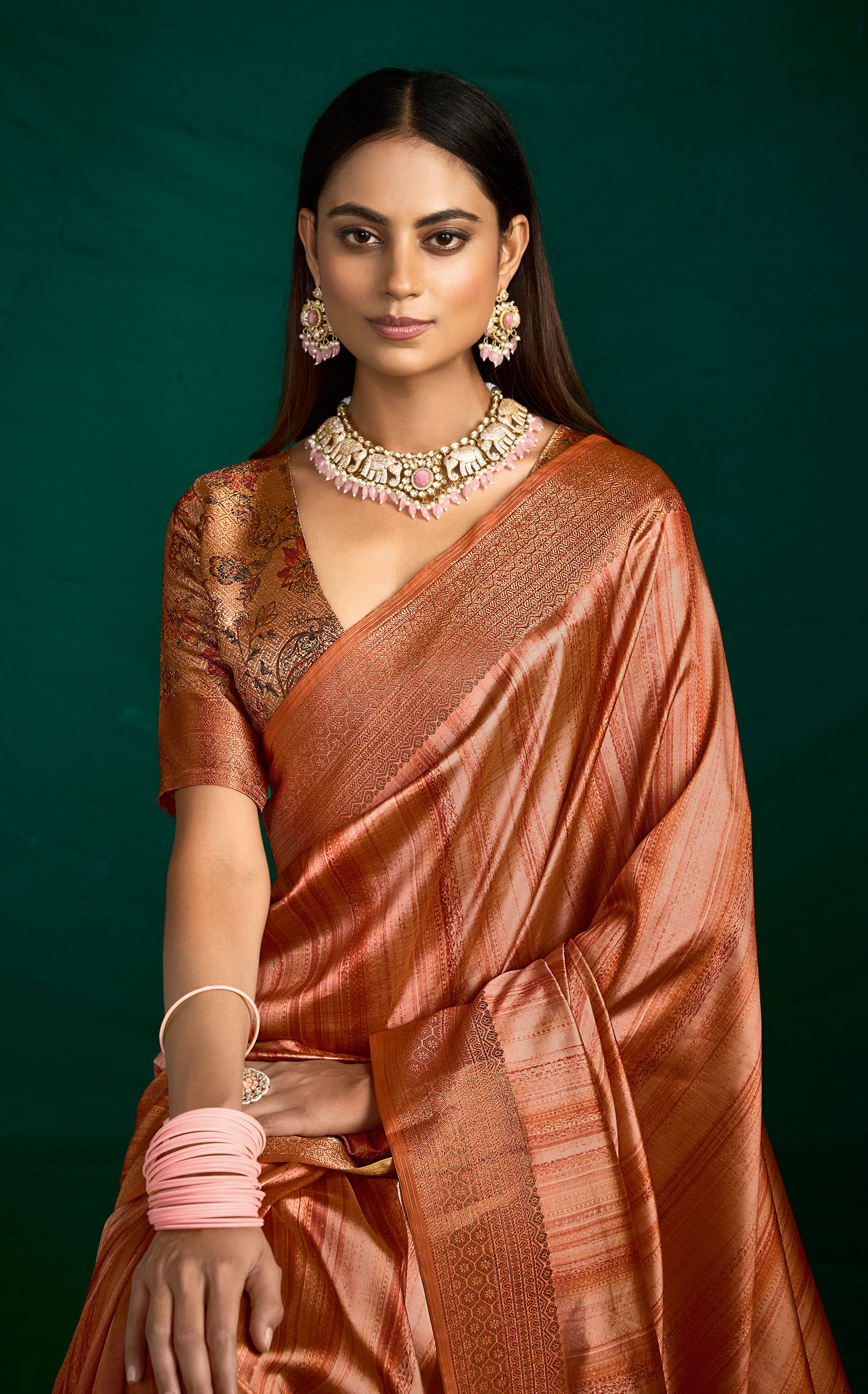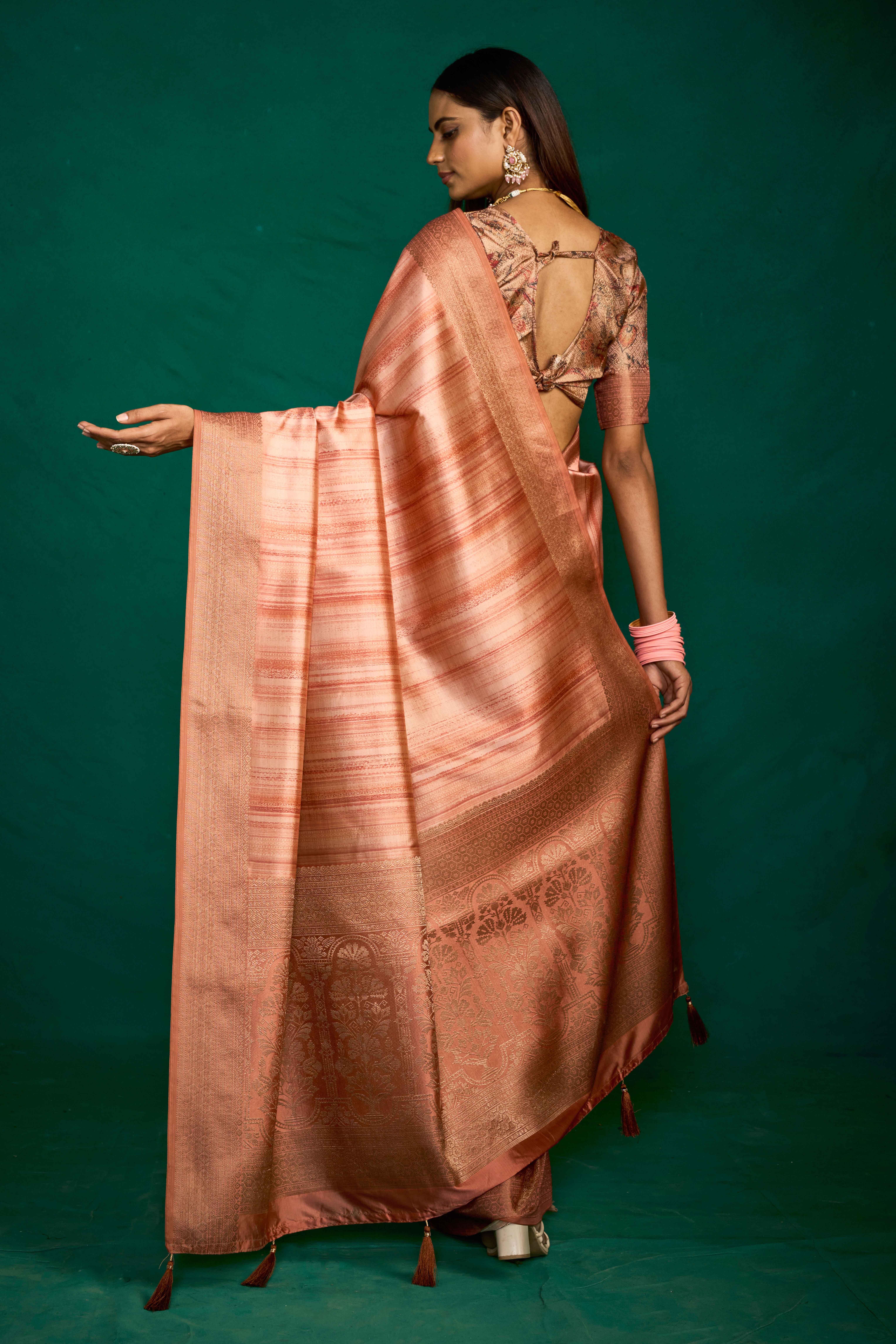 Corol Color Beautiful Tussar Silk Fabric Sophisticated Woven Designer Saree
