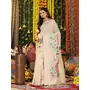 Cream Color Linen Cotton Fabric Beautiful Woven Designer Partywear Saree