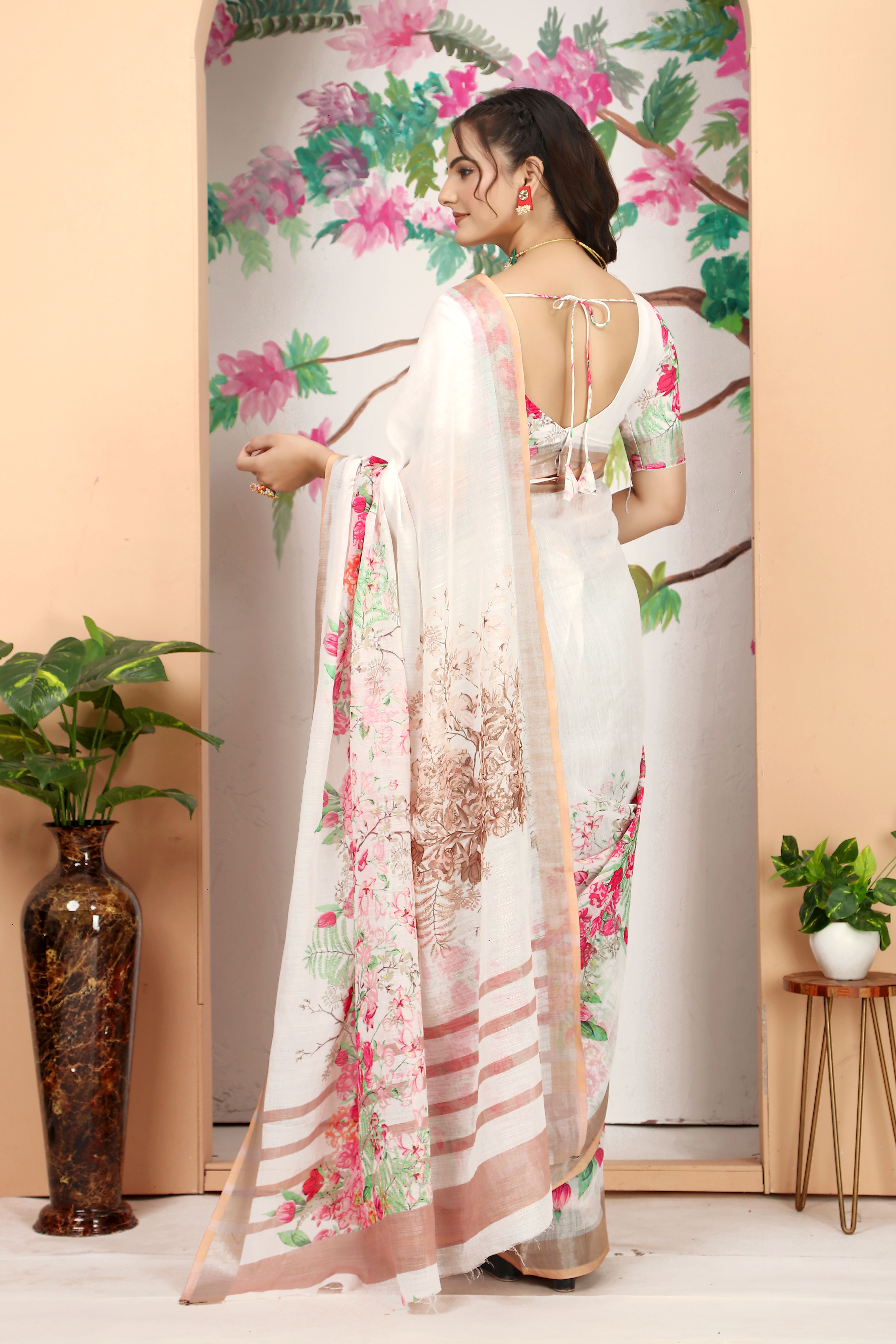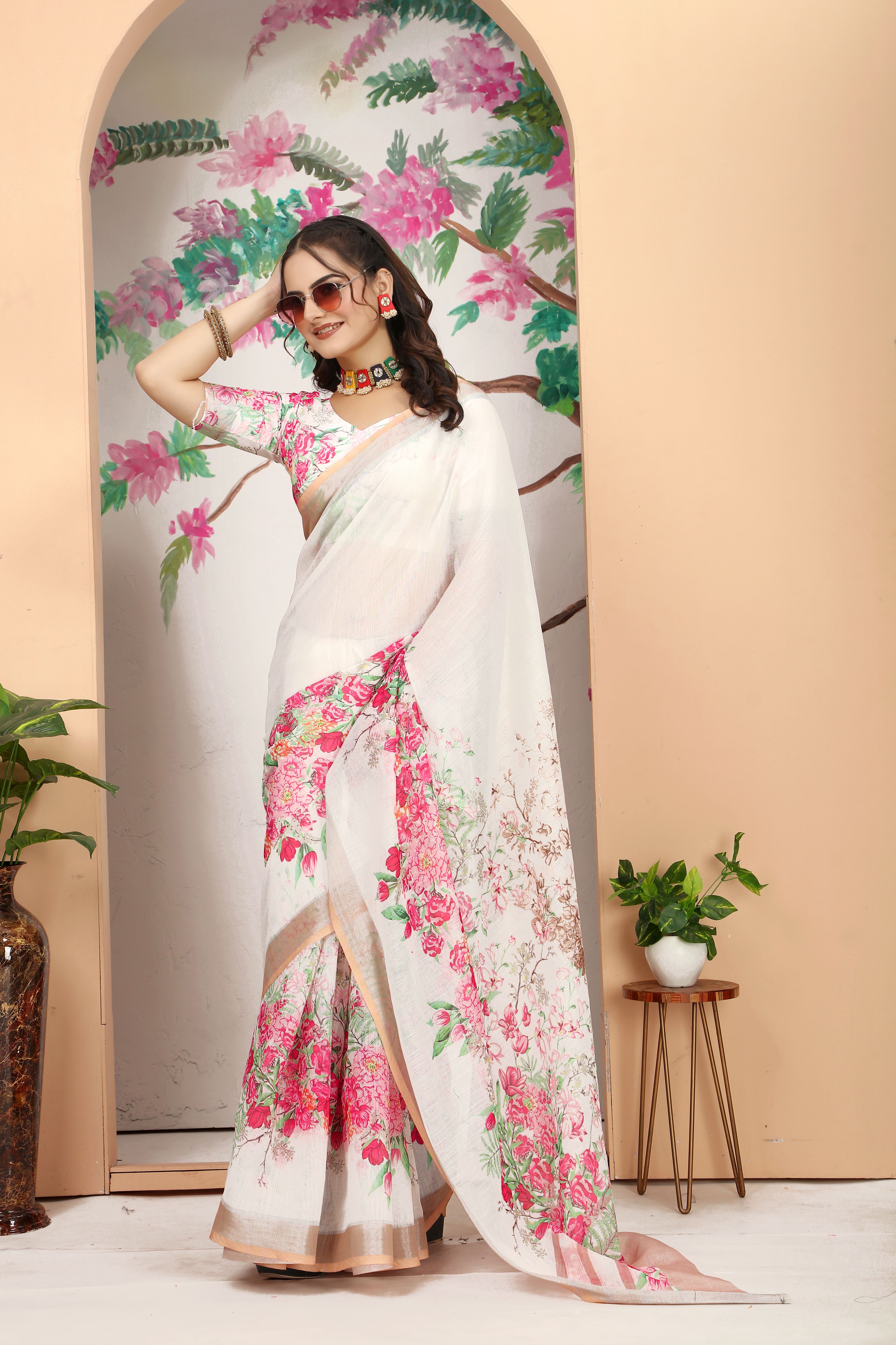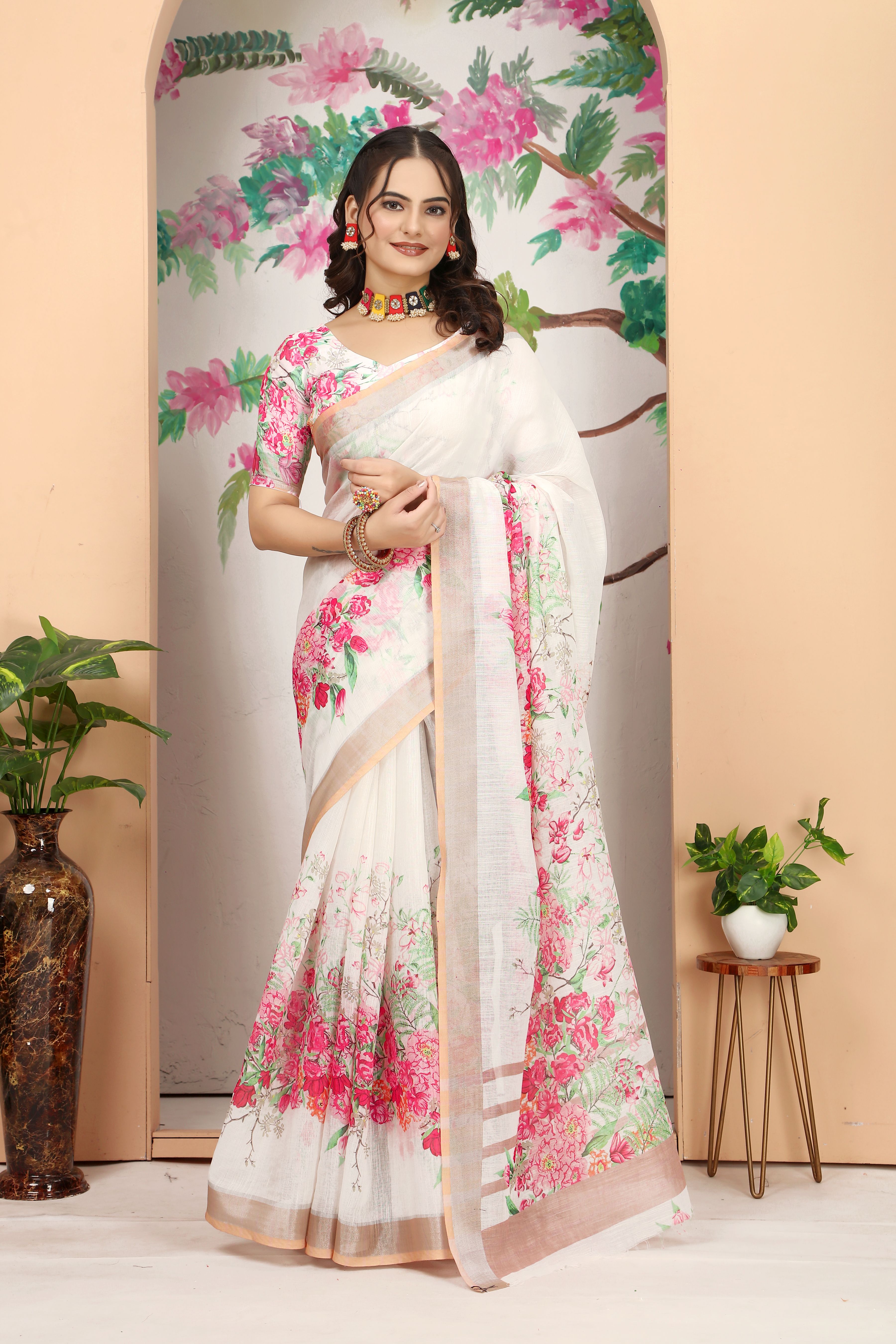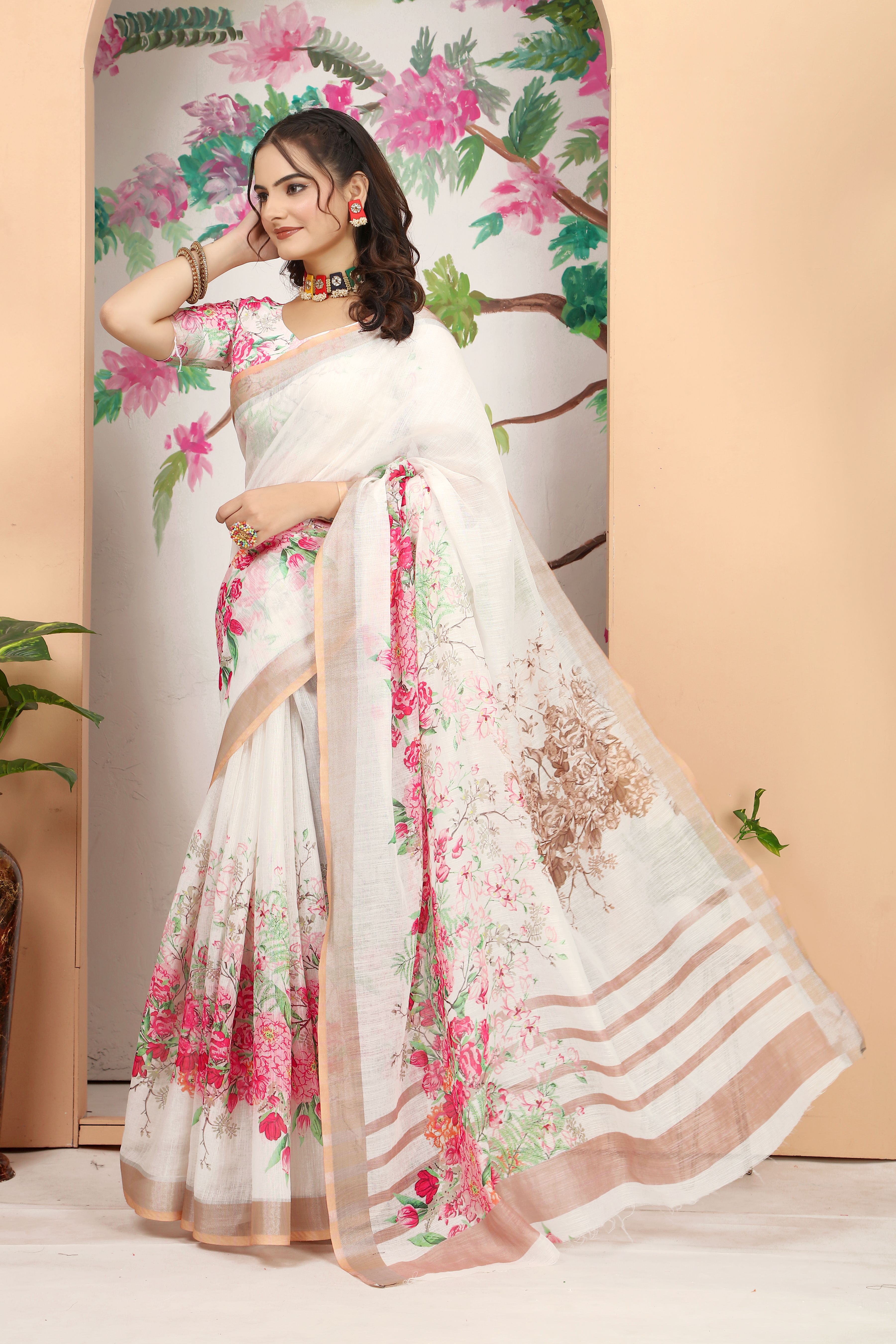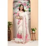 Ethnic Off White Color Beatutiful Linen Cotton Digital Printed Saree