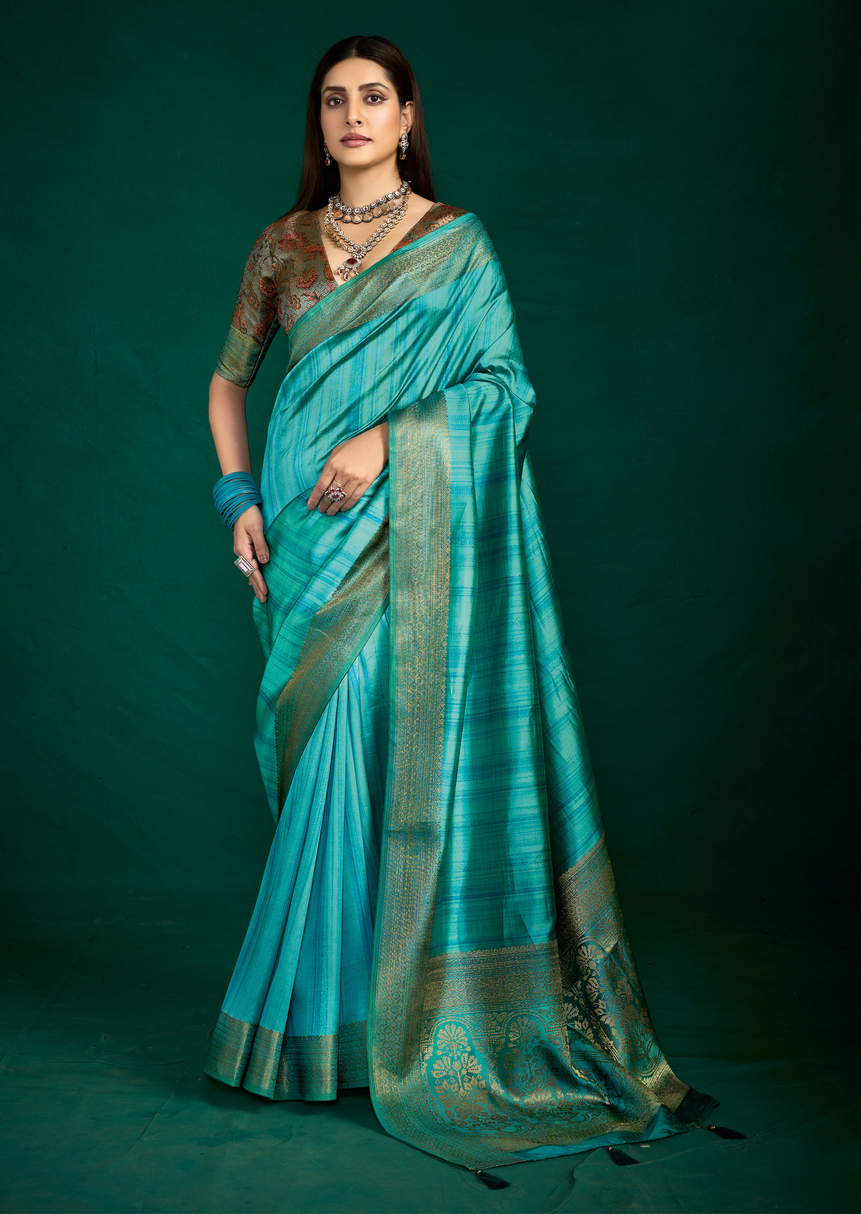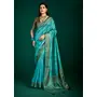 Firozi Color Beautiful Tussar Silk Fabric Sophisticated Woven Designer Saree