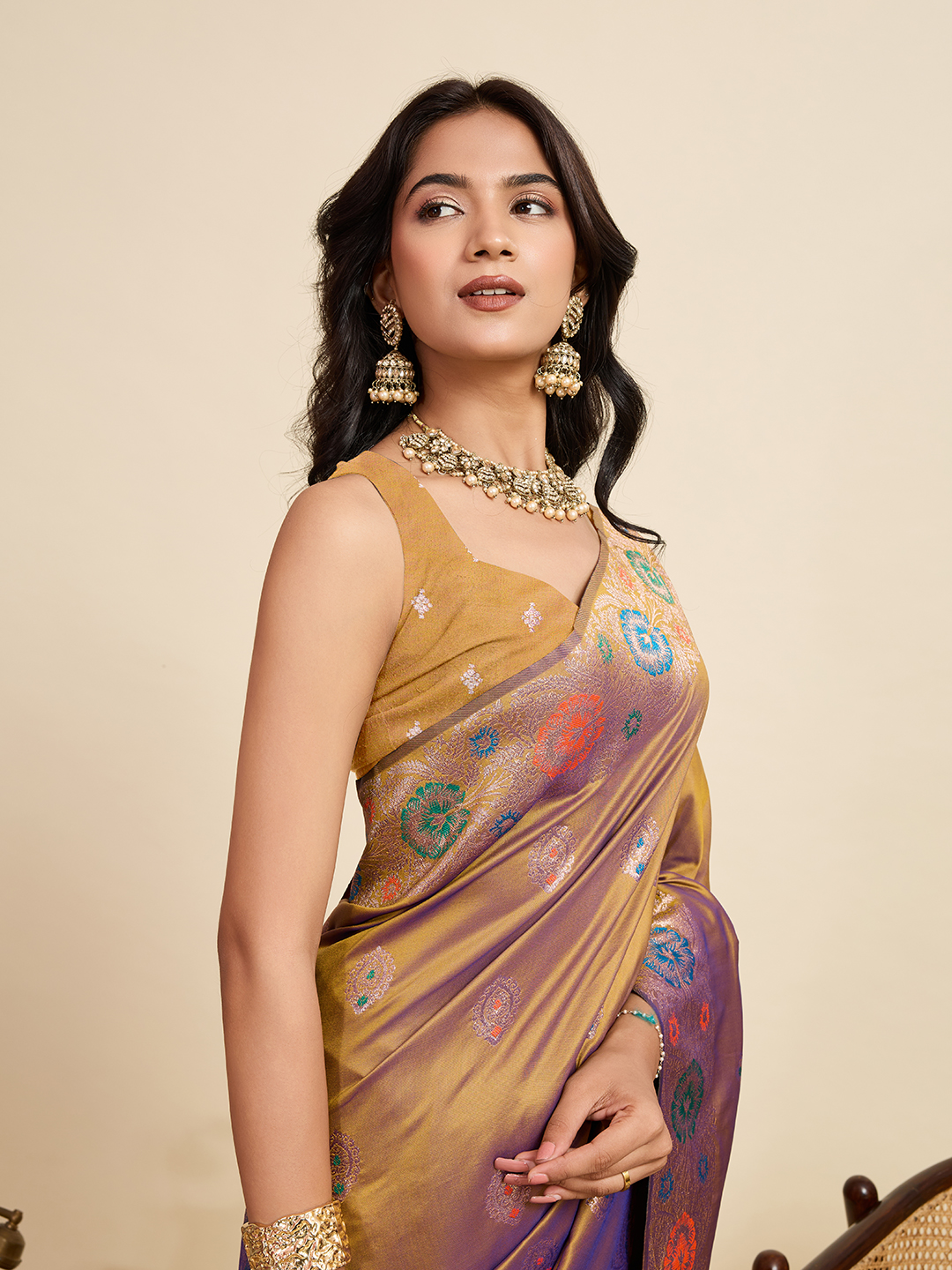 Gold Color Soft Silk Saree For Ethnic Indian Looks