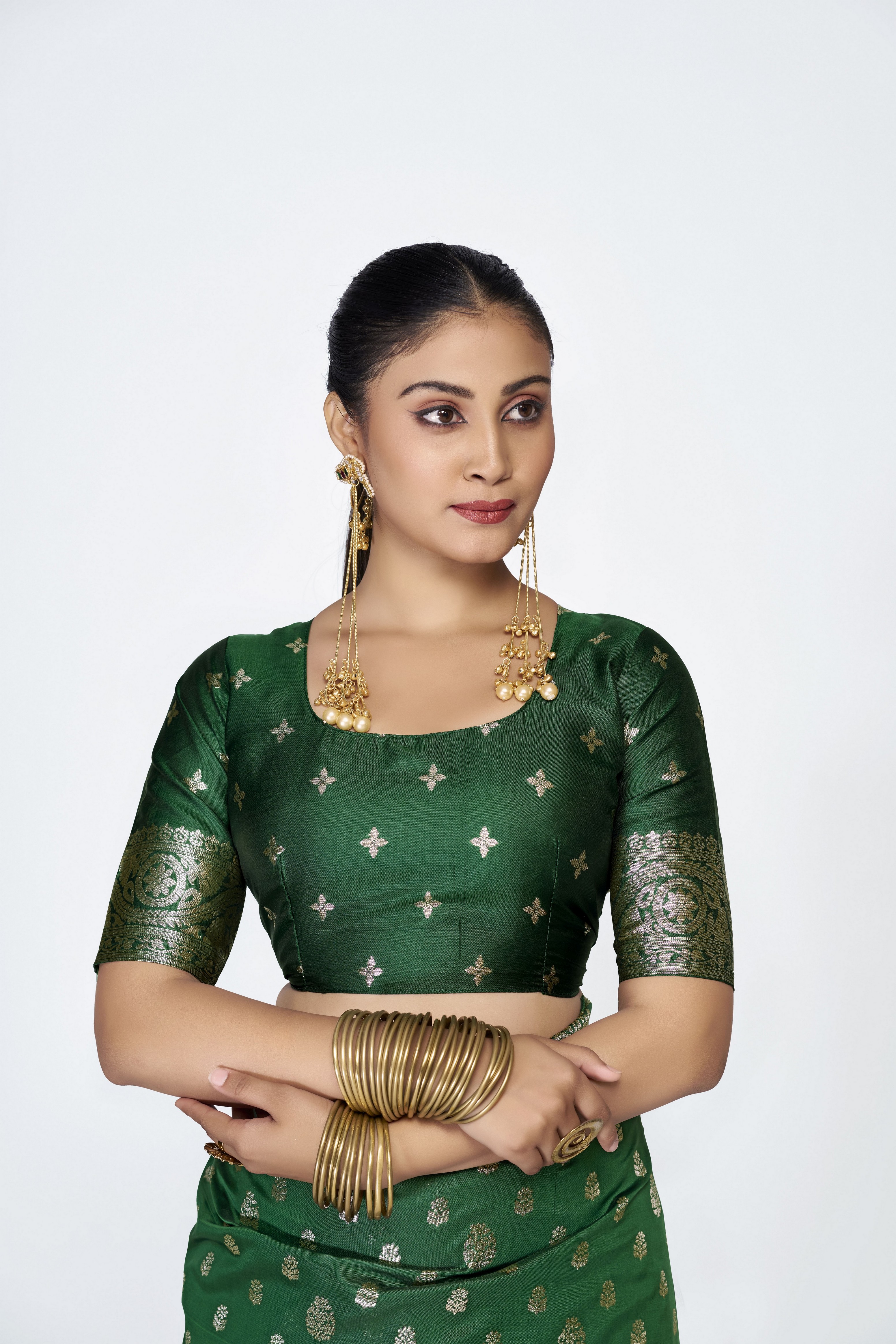 Green Color Banarasi Silk Fabric Woven Jari Butti Designer Celebrity Fancy Saree