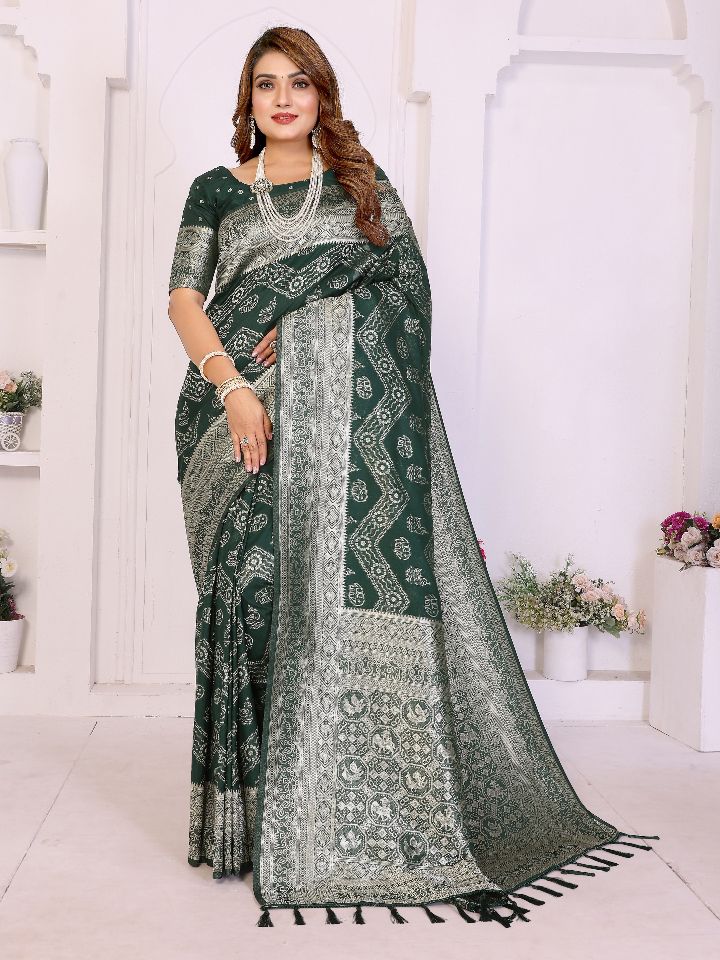 Green Color Georgette Silk Fabric Woven Laheriya Jari Designer Saree