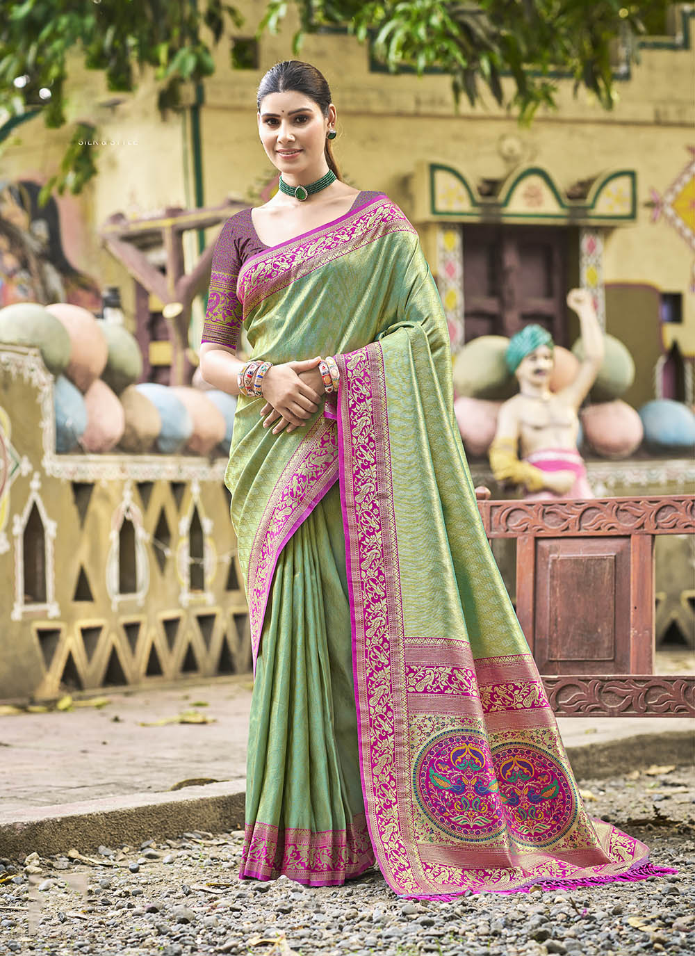 Green Color Kanjivaram Silk Fabric Designer Ethnic Festive Wear Saree