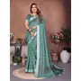 Green Color Linen Cotton Fabric Woven Checks Designer Trendy Ethnic Saree