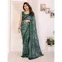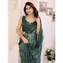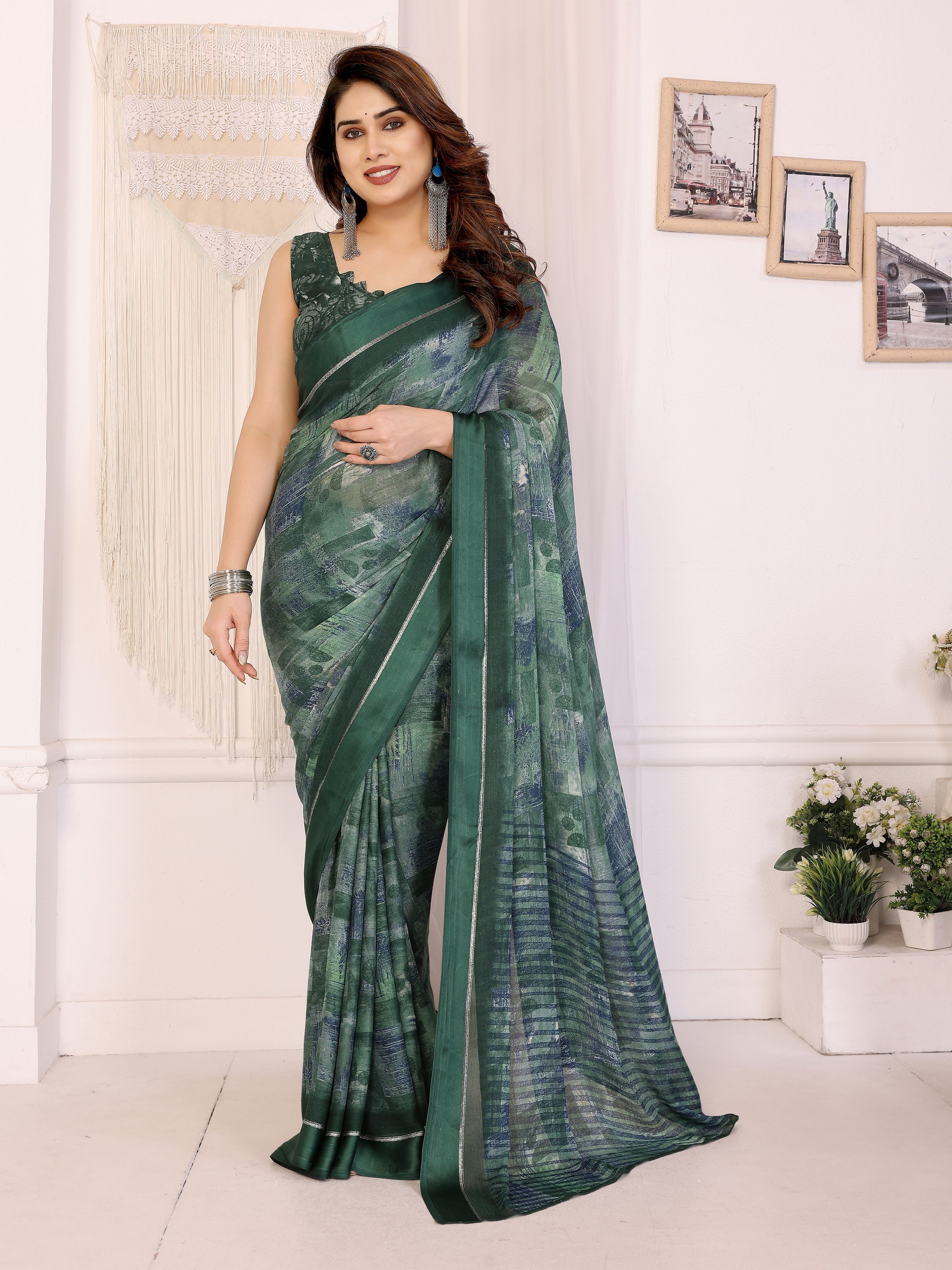 Green Color Moss Satin Patta Fabric Designer Printed Saree