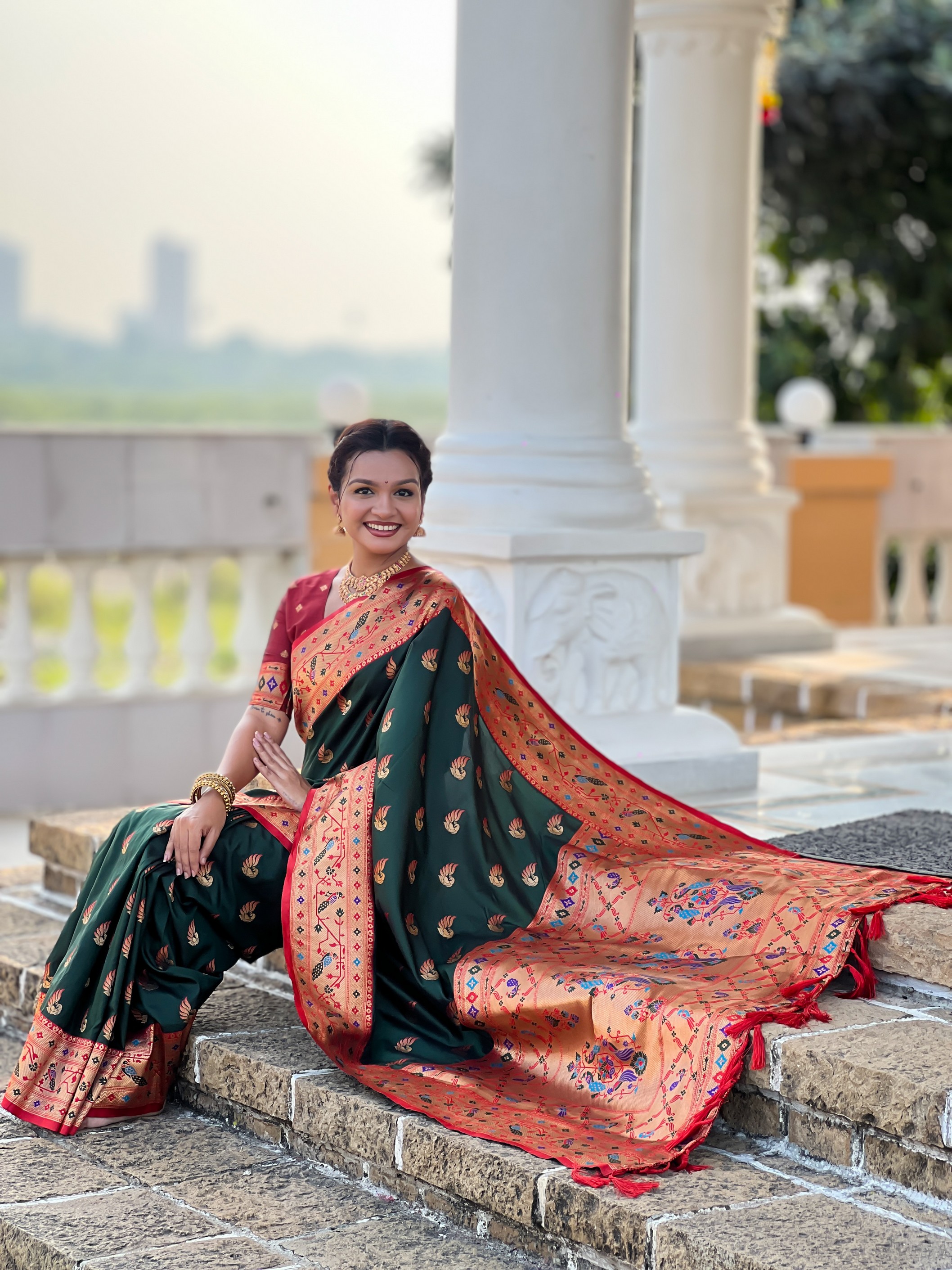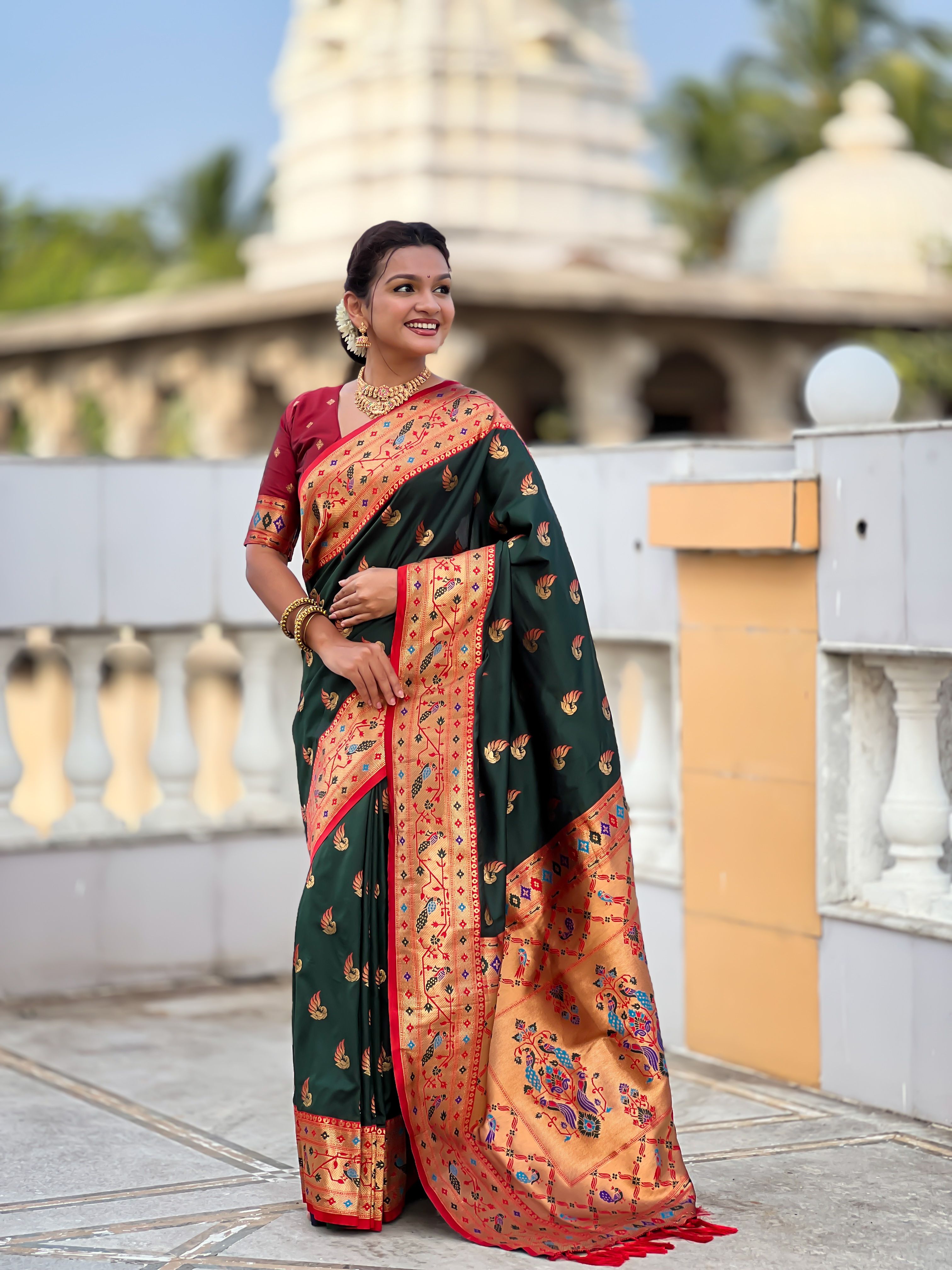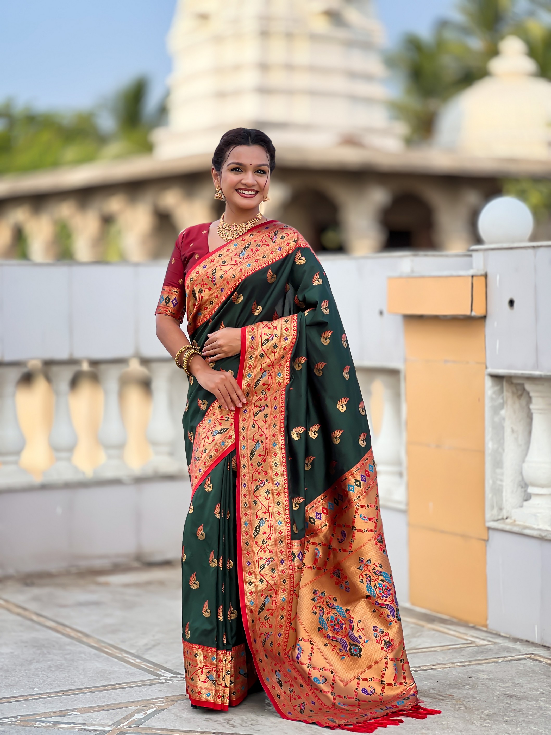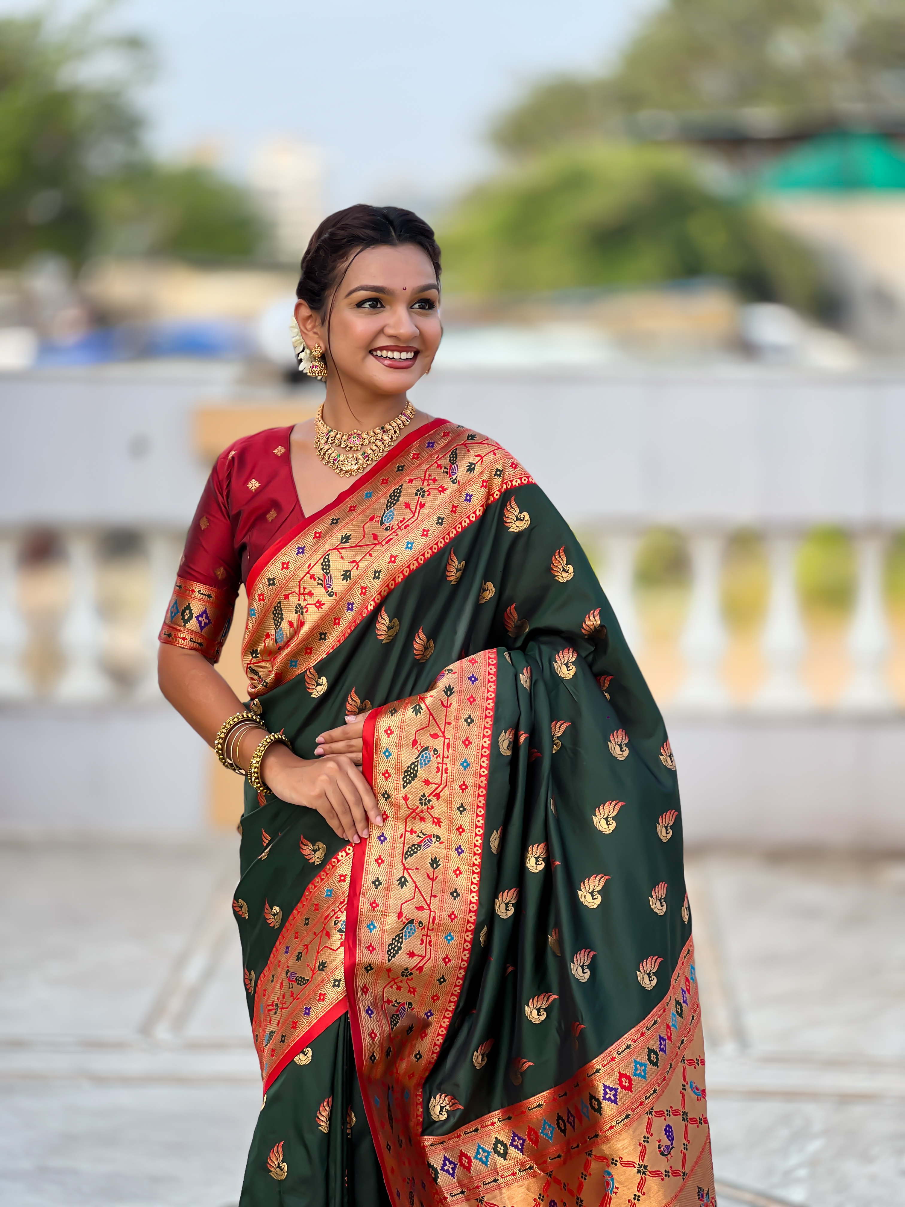 Green Color Paithani Silk Woven Meenakari Jacquard Designer Saree