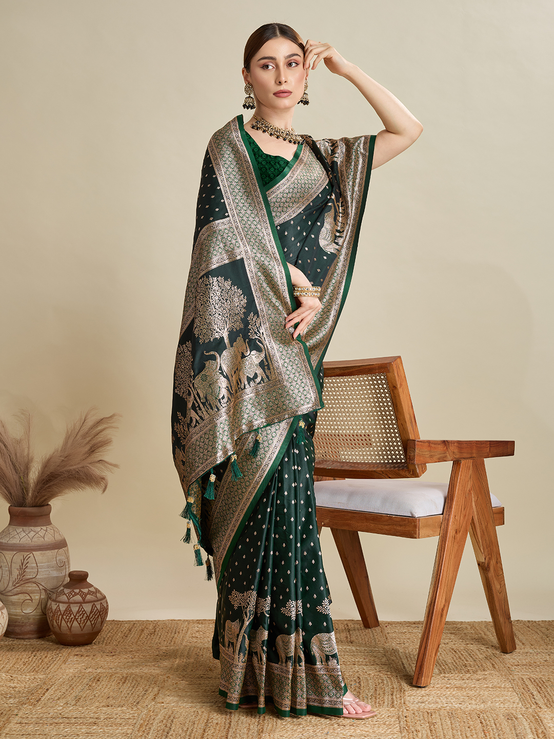 Green Color Satin Silk Fabric Woven Designer Partywear Saree
