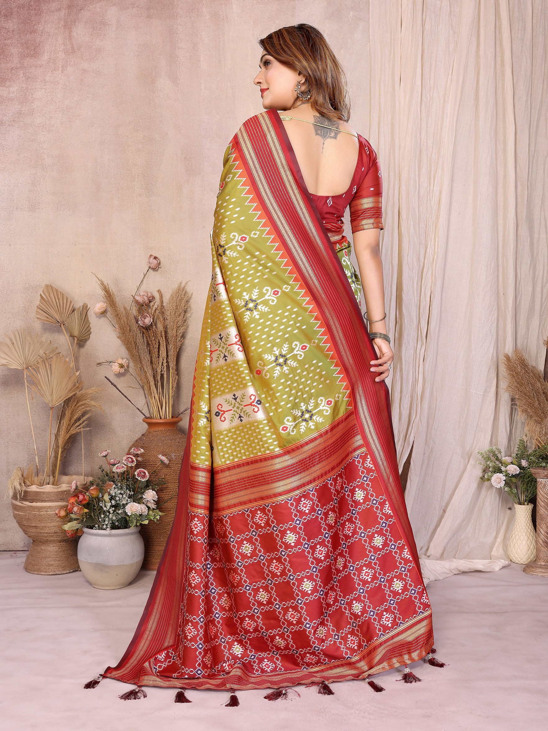 Green Color Soft Silk Fabric Ikkat Weaving Designer Traditional Partywear Saree