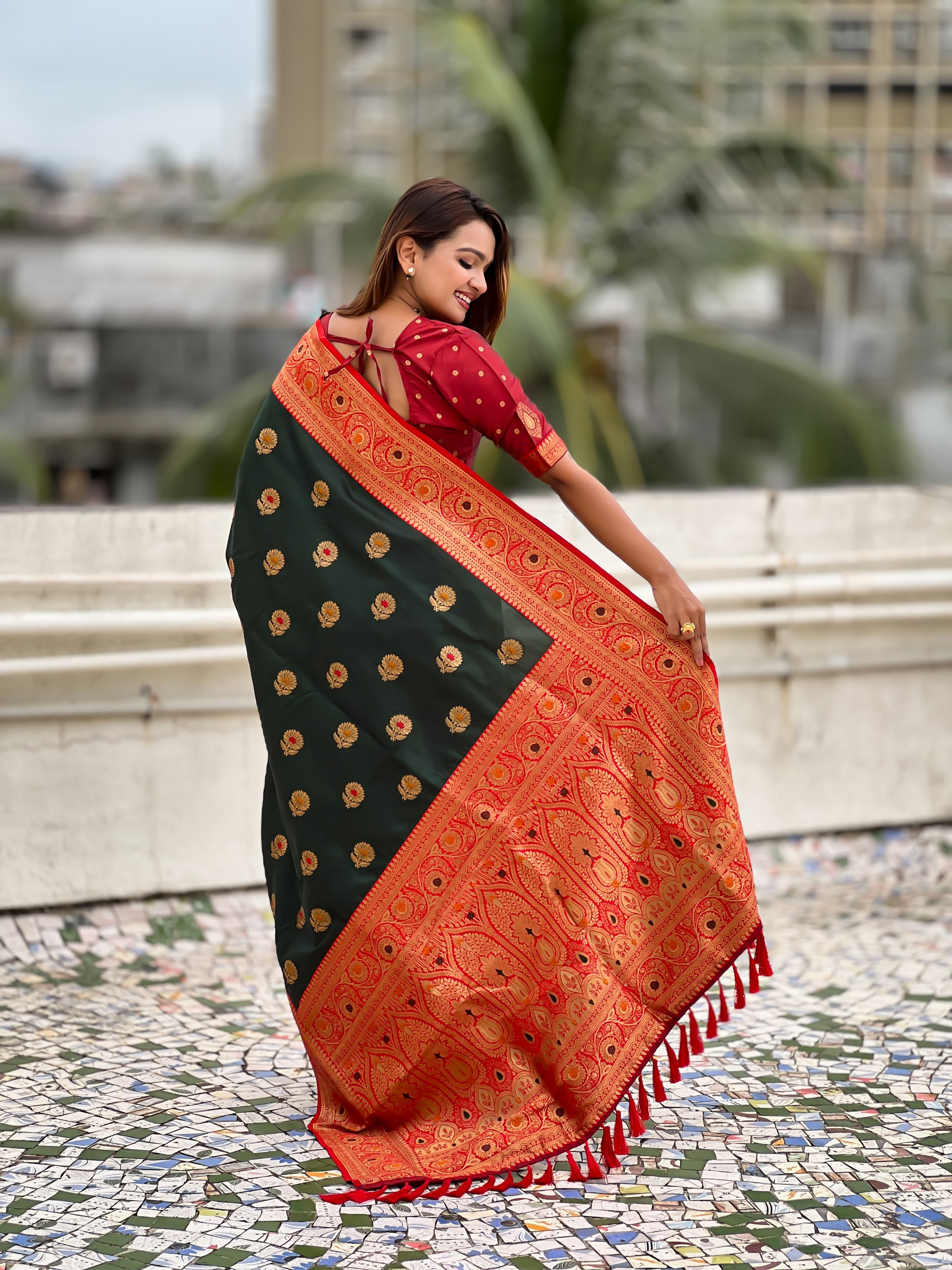 Green Color Soft Silk Fabric Wevon Meenakari Designer Trending Partywear Saree