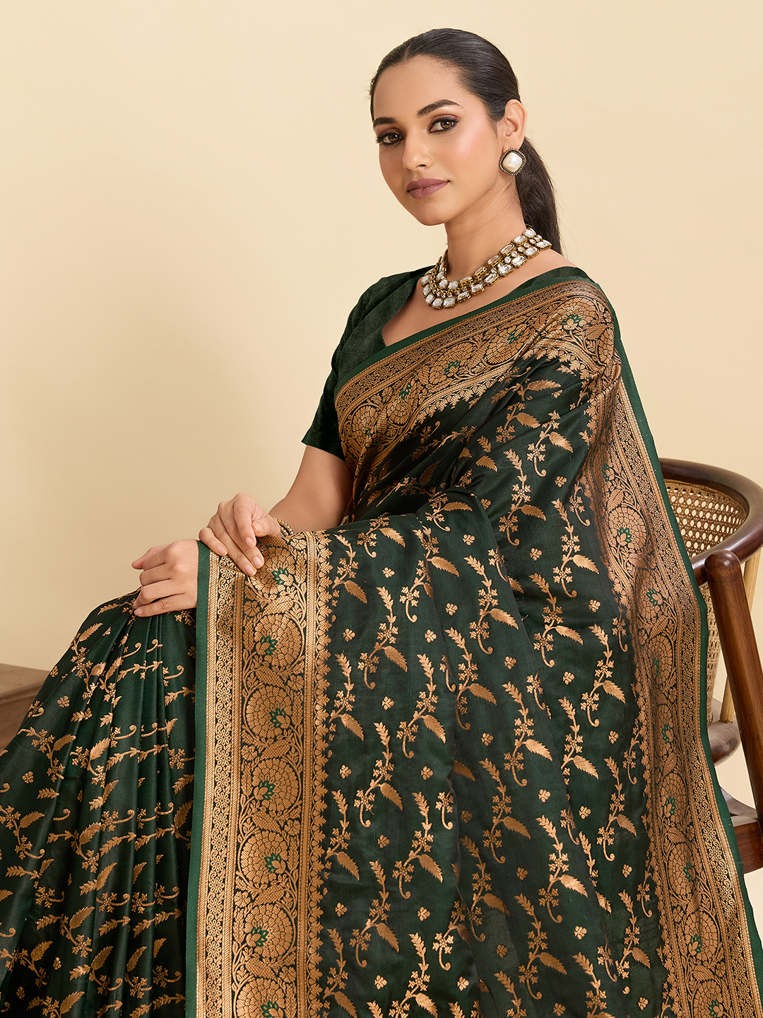 Green Color Wevon Jari Designer Soft Silk Partywear Saree