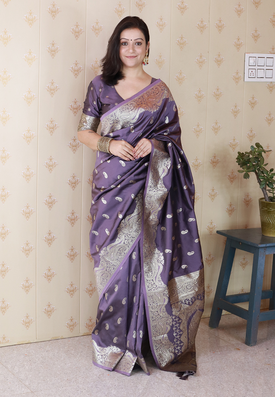 Grey Color Banarasi Silk Saree Woven Silver Jari Designer Ceremonial Partywear Saree