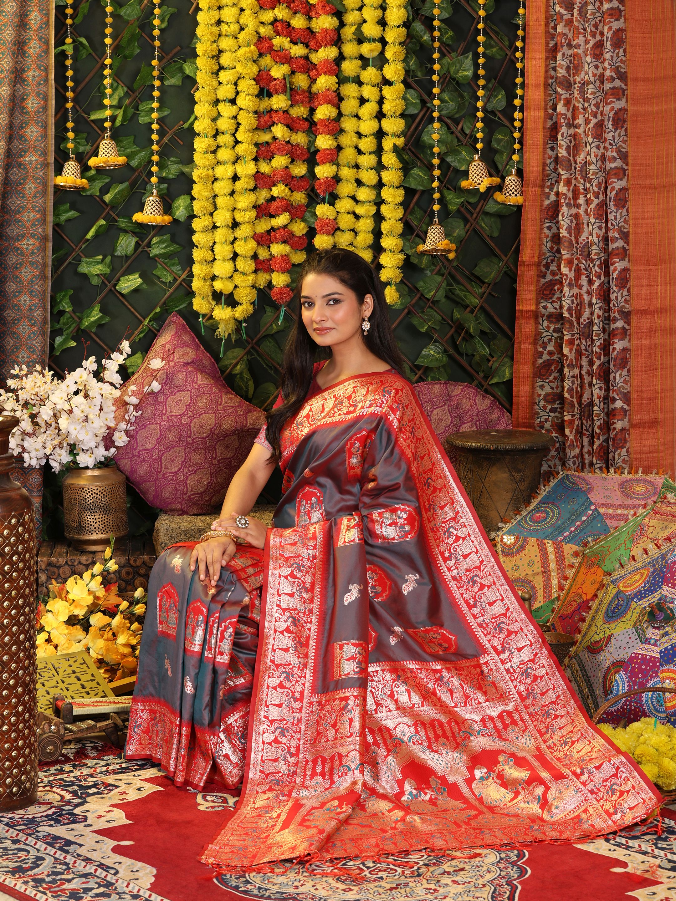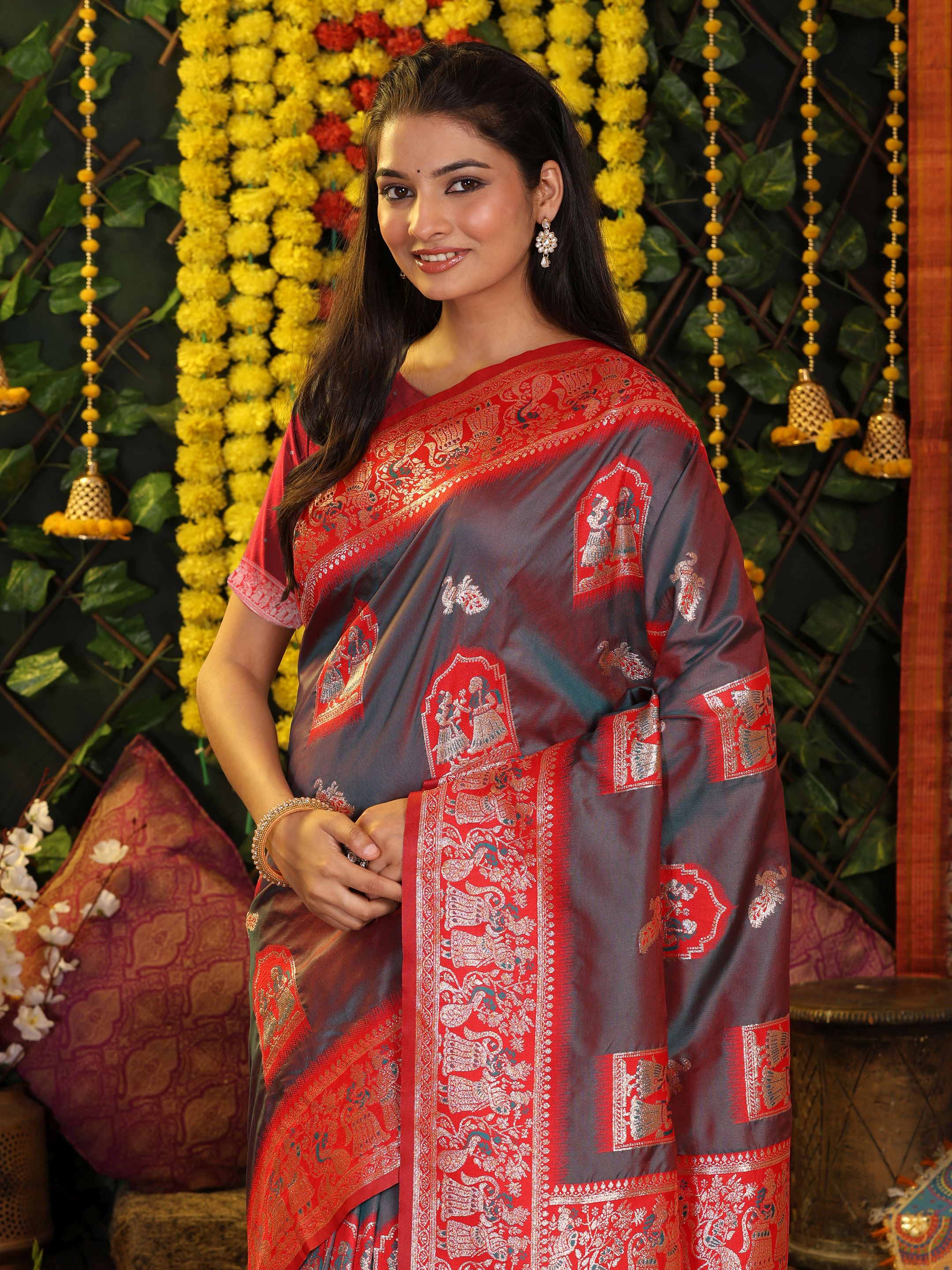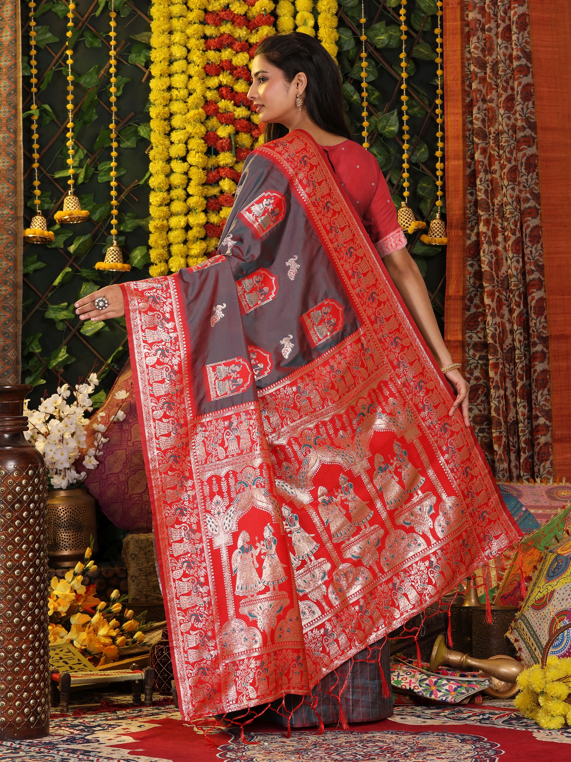 Grey Color Blended Silk Fabric Woven Jari Designer Saree