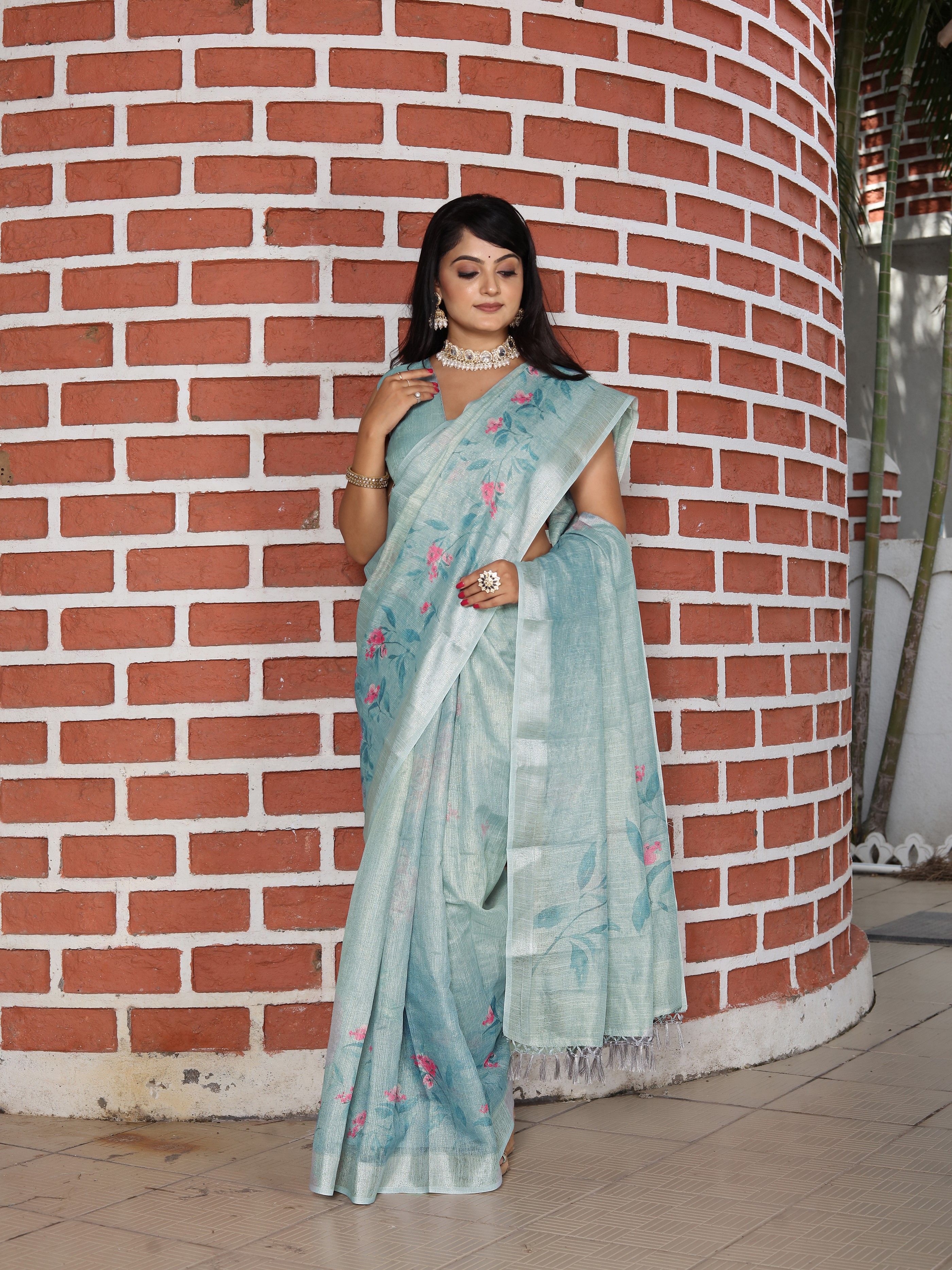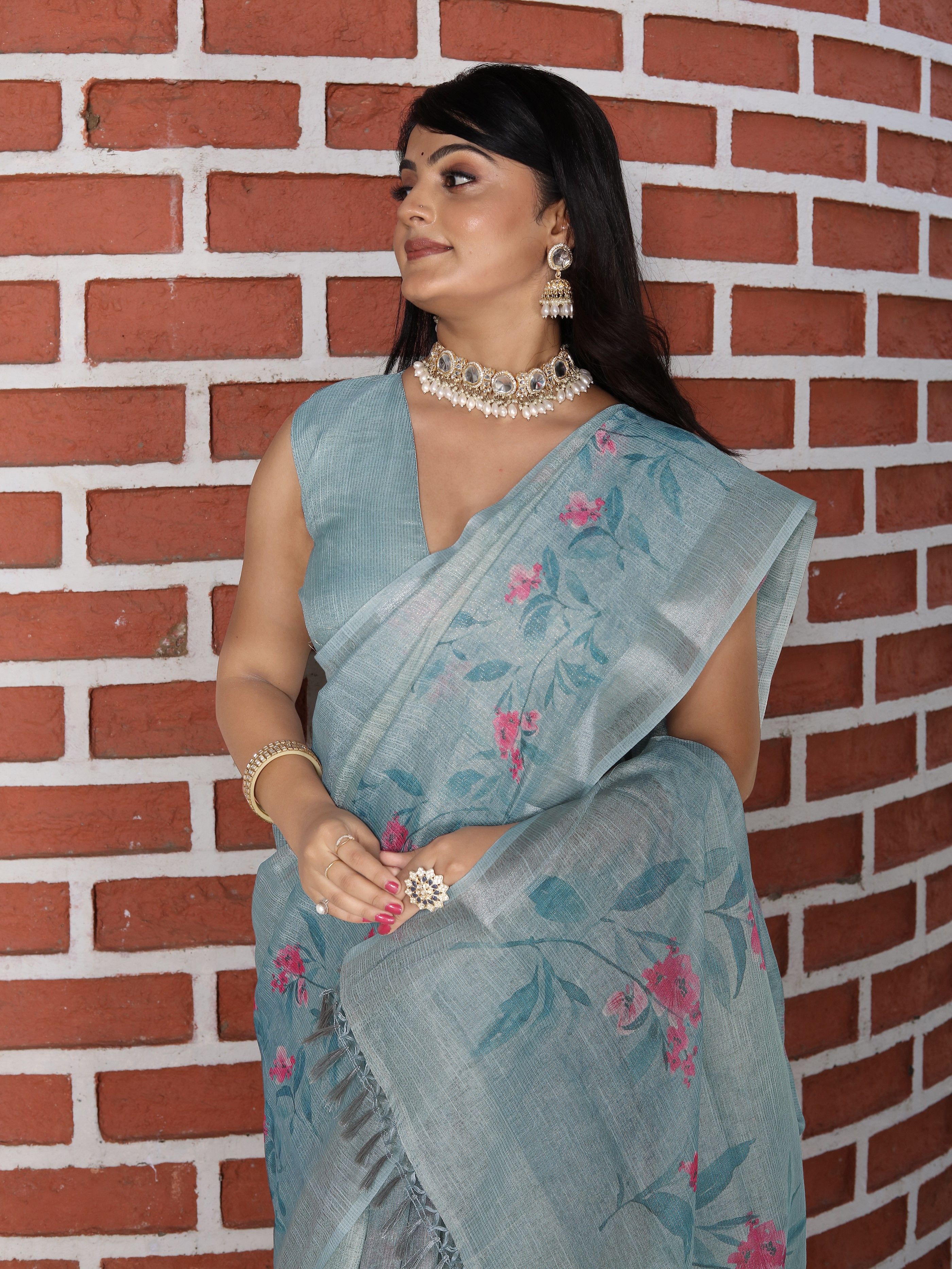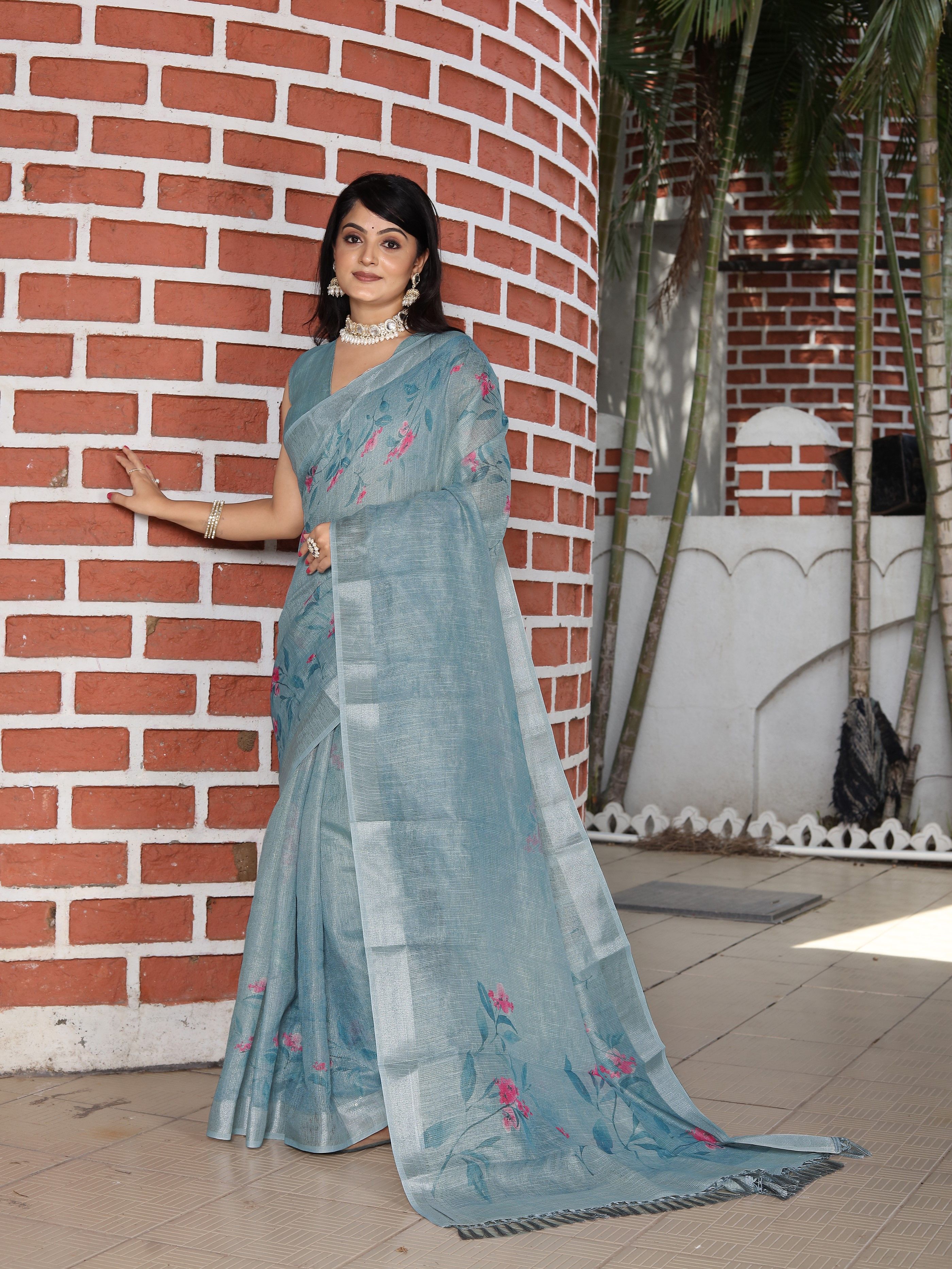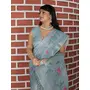 Grey Color Cotton Shimmer Fabric Designer Printed Ethnic Girlie Saree