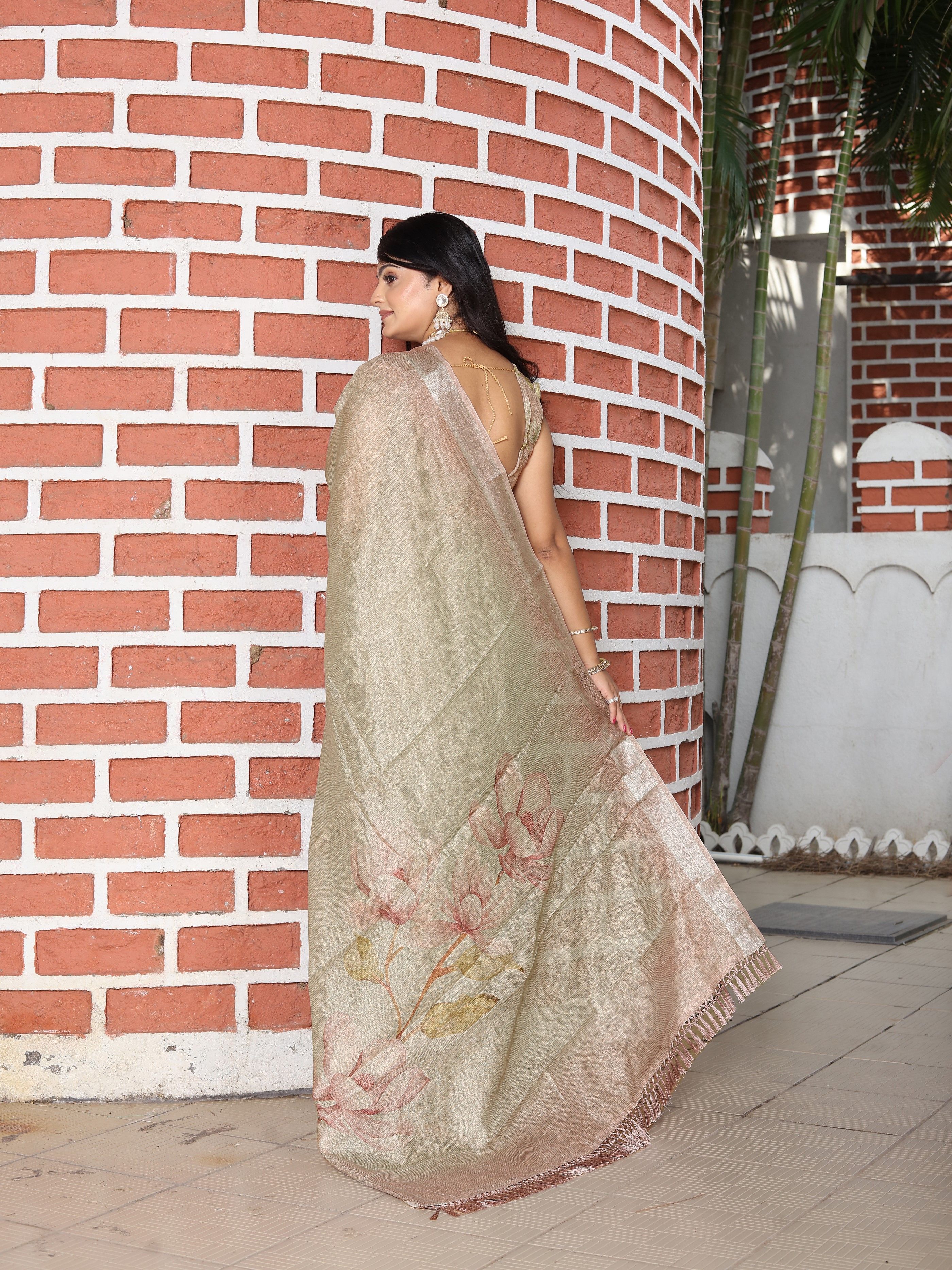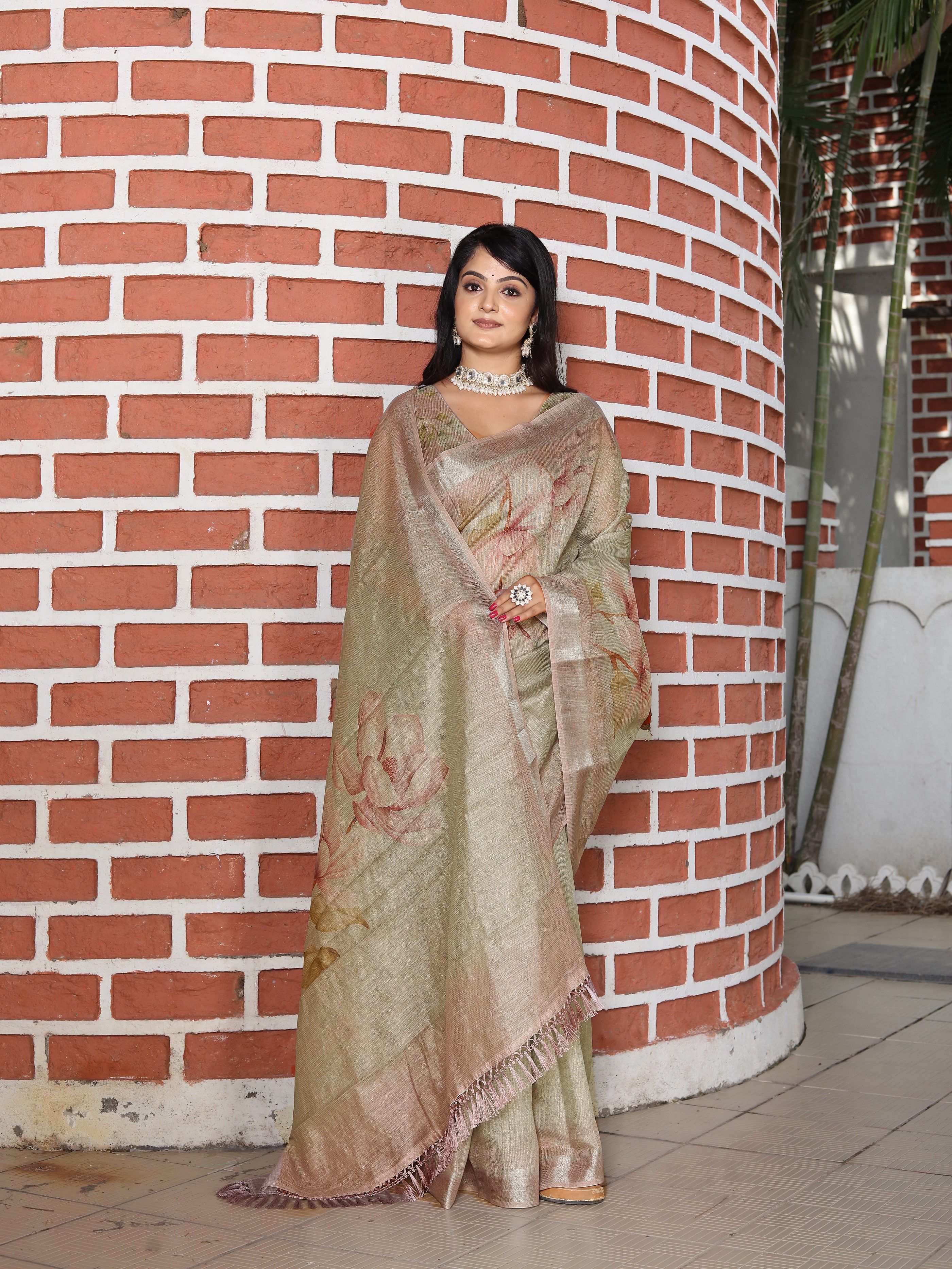 Grey Color Cotton Shimmer Fabric Designer Printed Ethnic Girlie Saree