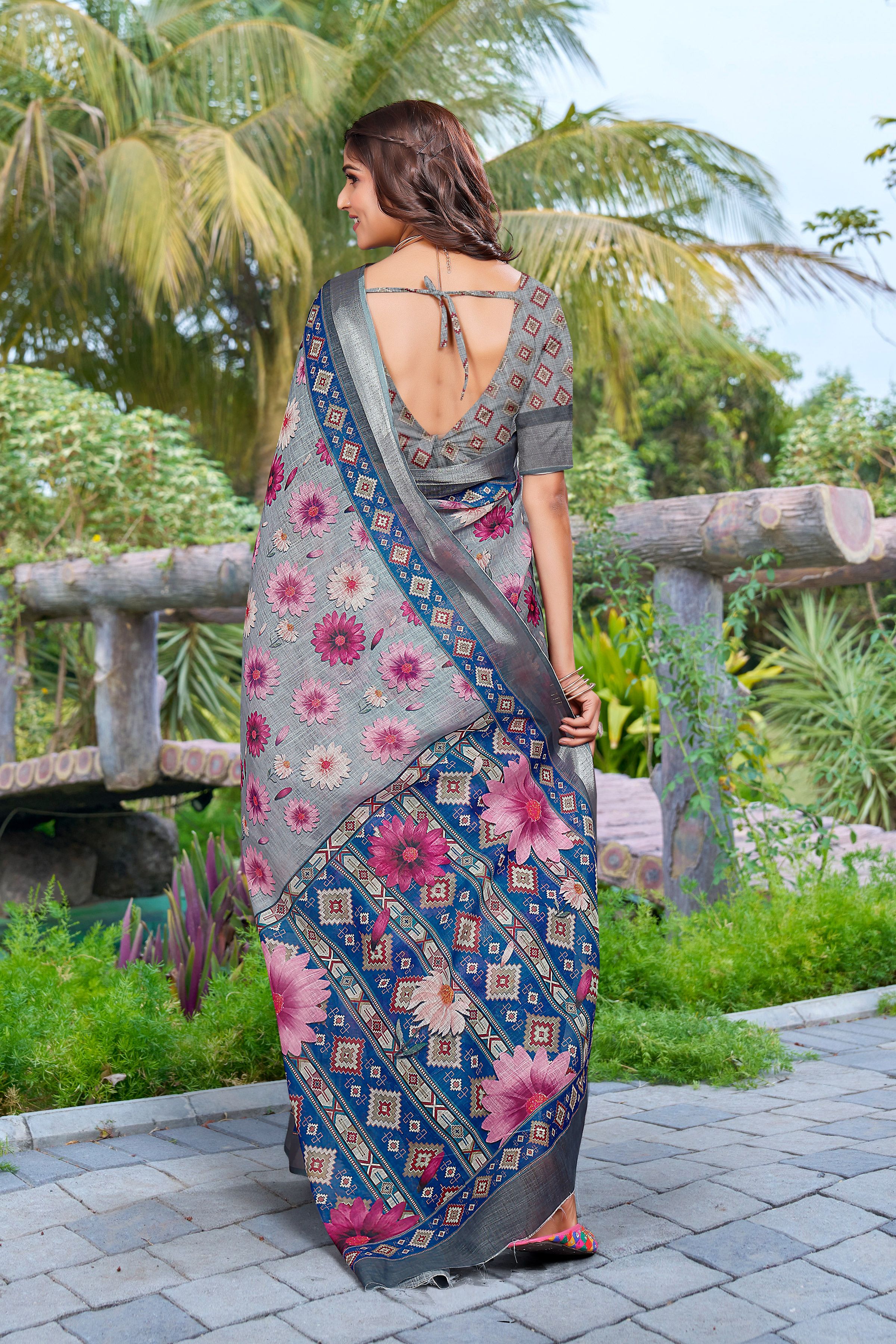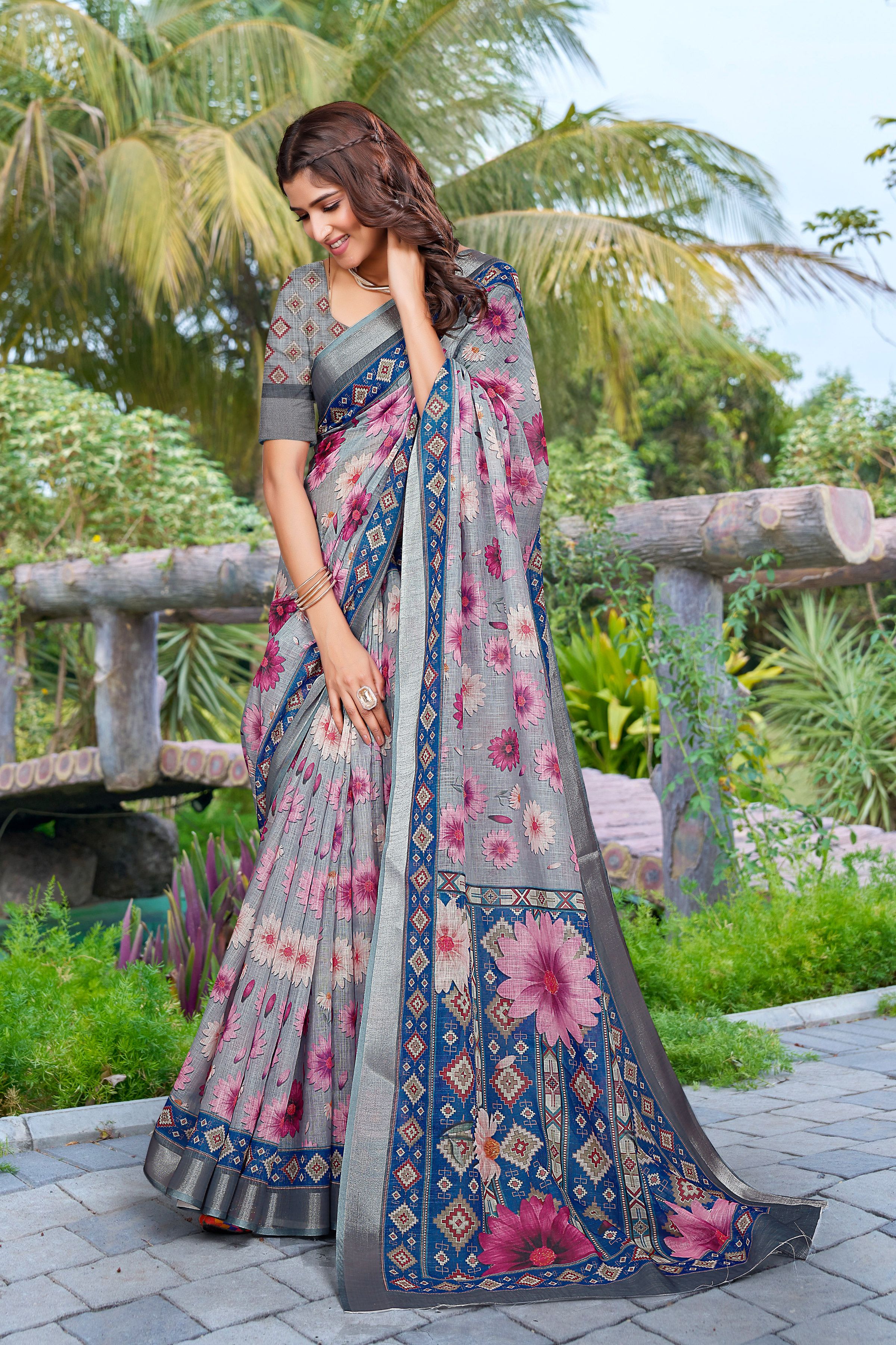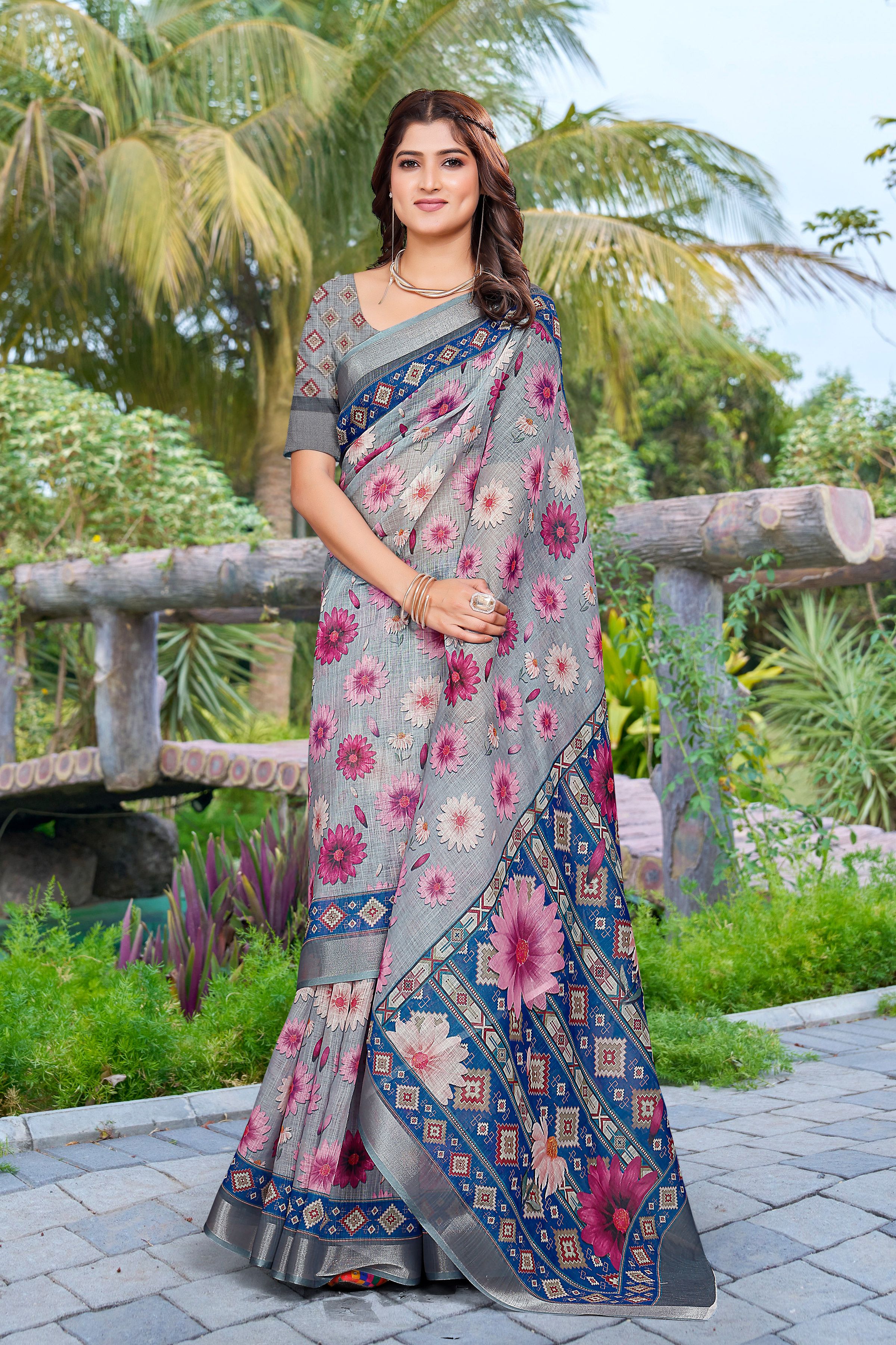 Garb These Festive Saree in Fine Colored.These Saree Are Linen Cotton And Blouse is Fabricated On Linen Cotton Pair.Its Beautified With Wevon Jari Border With Designer Digital Printed.