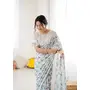 Grey Color Moss Satin Patta Fabric Designer Printed Ethnic Partywear Saree