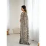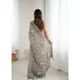 Grey Color Moss Satin Patta Printed Ethnic Partywear Saree
