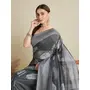 Grey Color Soft Silk Fabric Wevon Flower Designer Stylish Partywear Saree