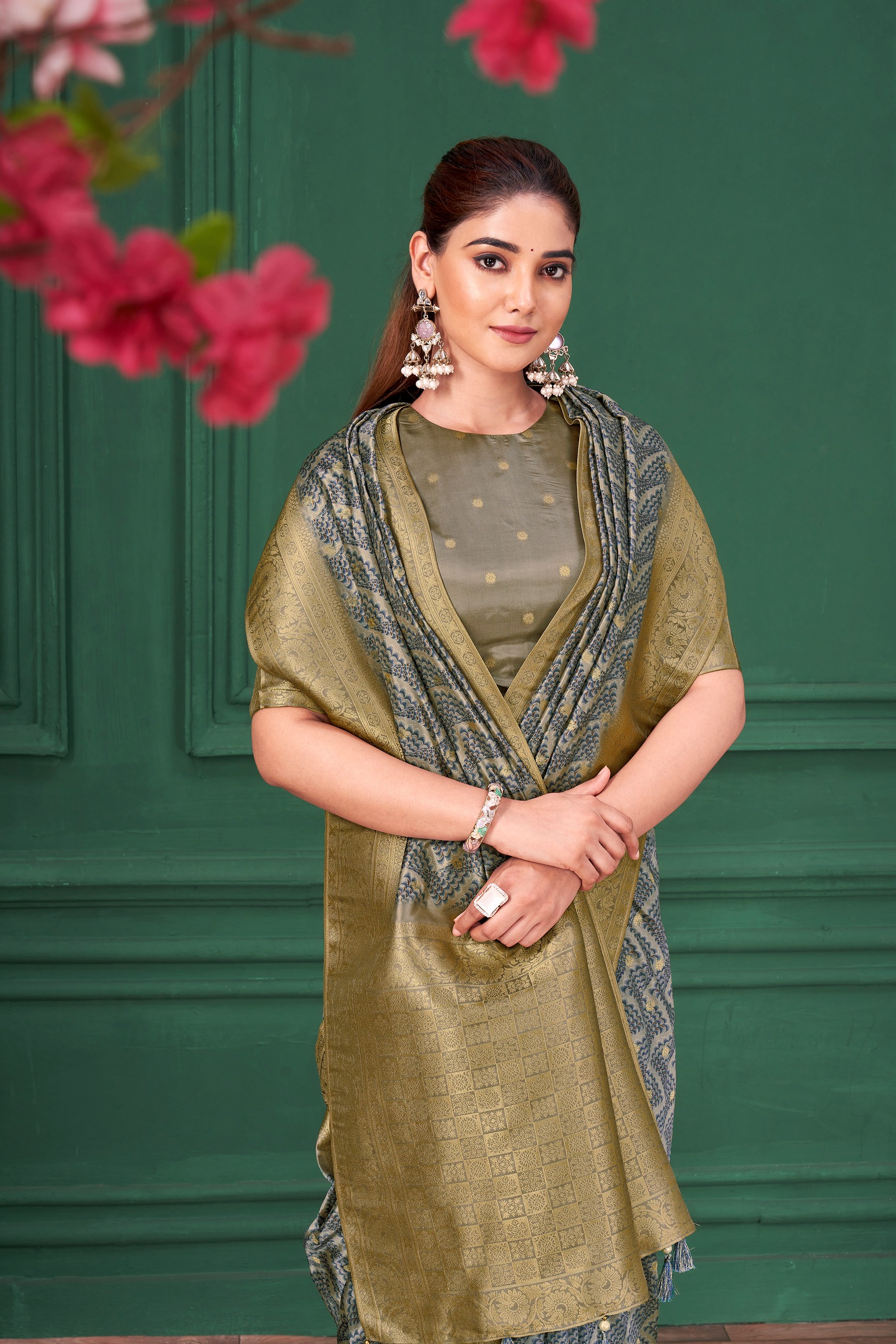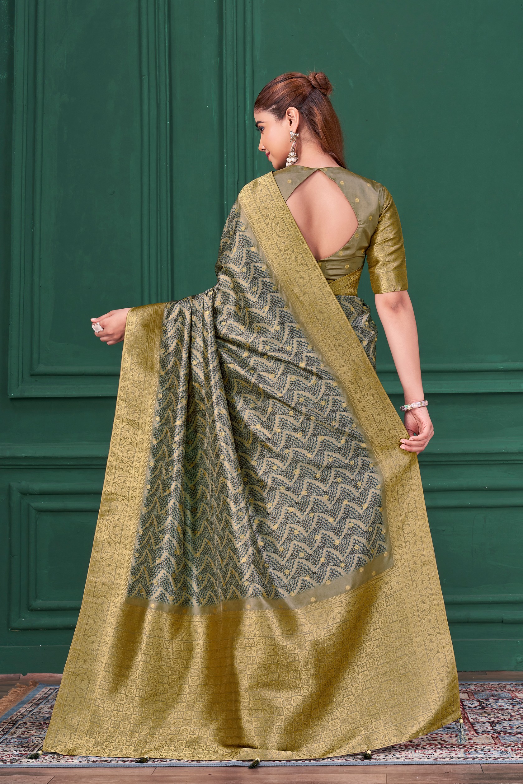 Grey Color Tussar Silk Fabric Woven Designer Saree With Beautiful Print Design