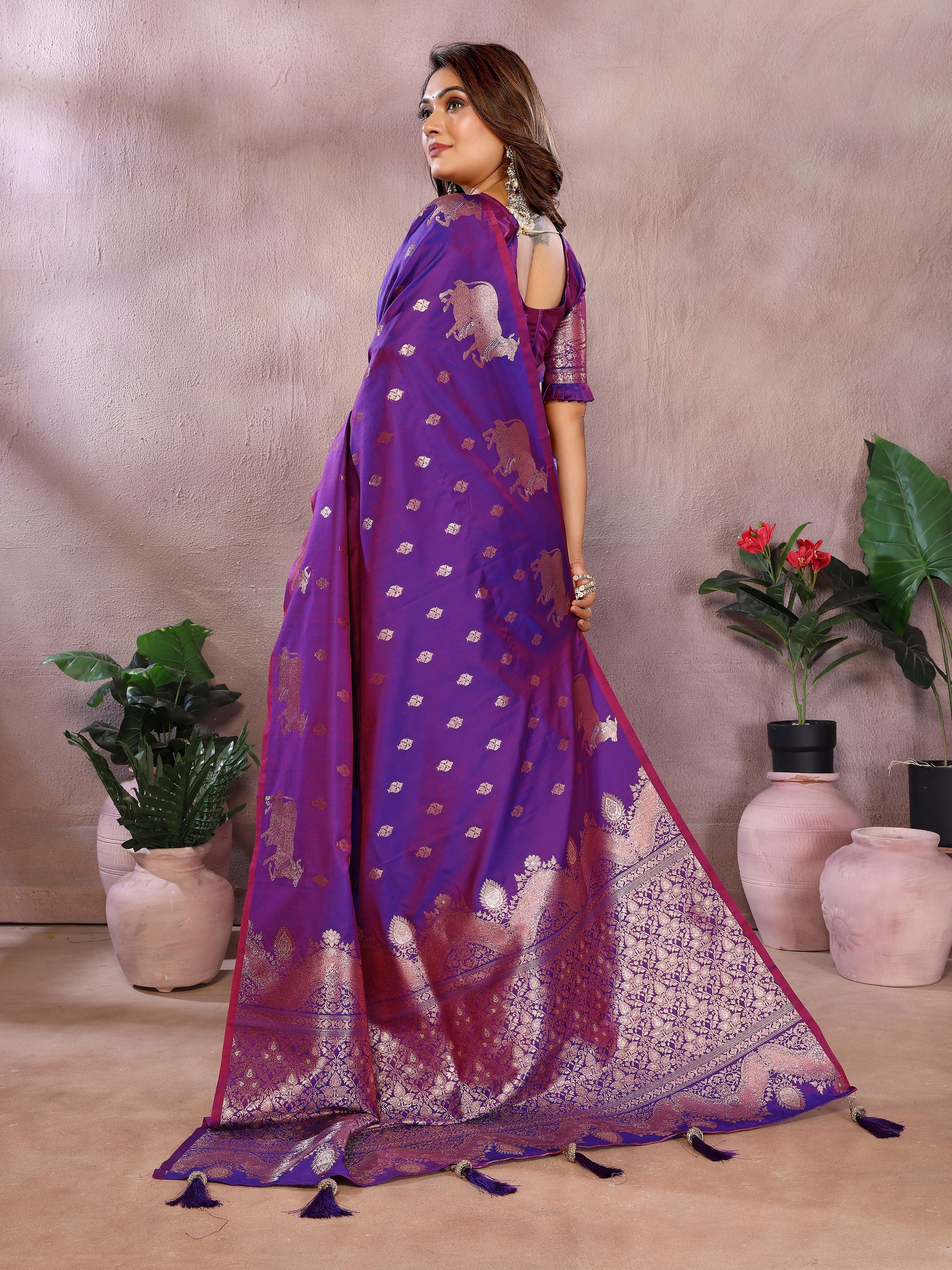 Lavender Color Banarasi Silk fabric Jacquard Weaving Designer Ceremonial Saree