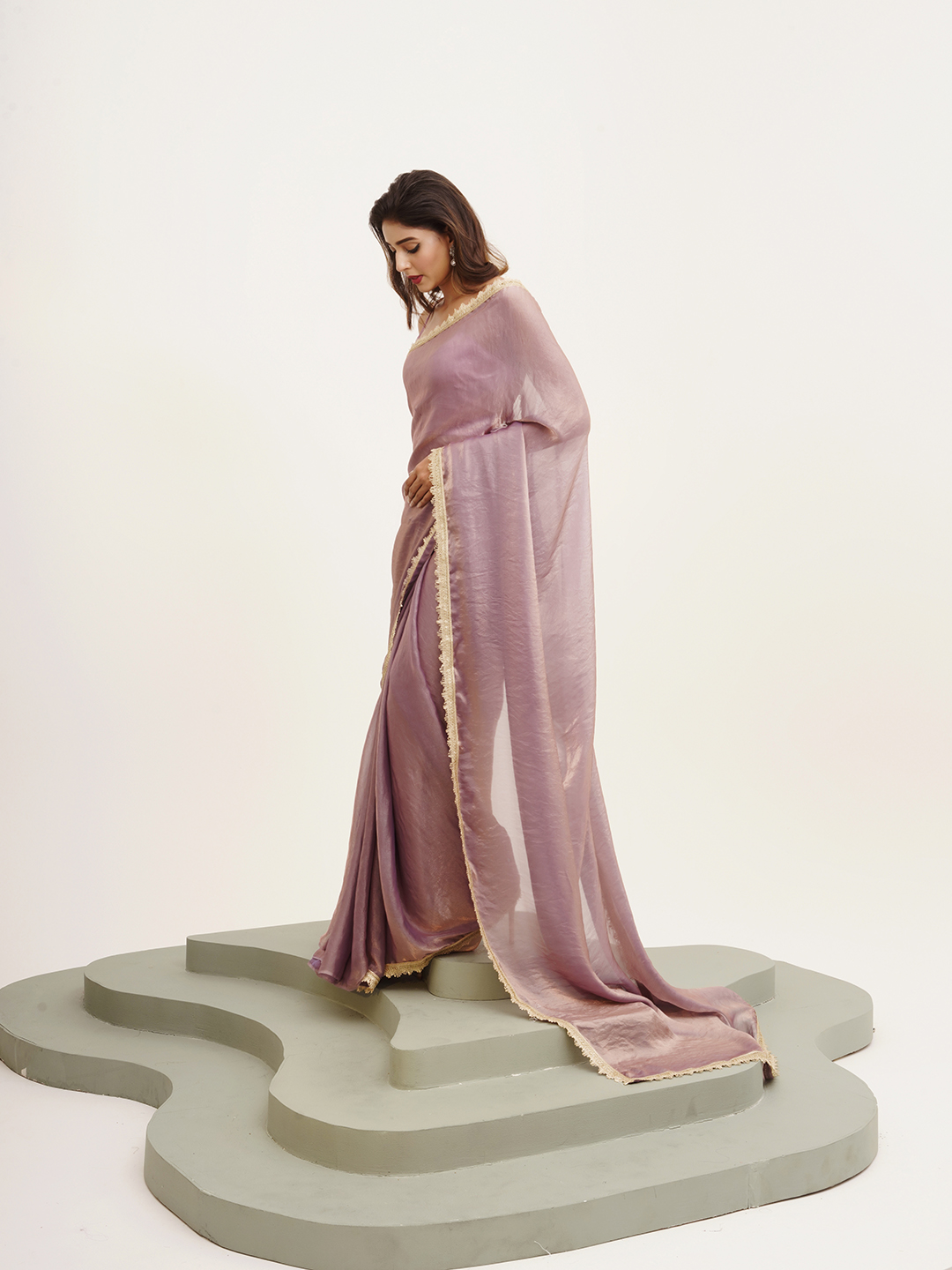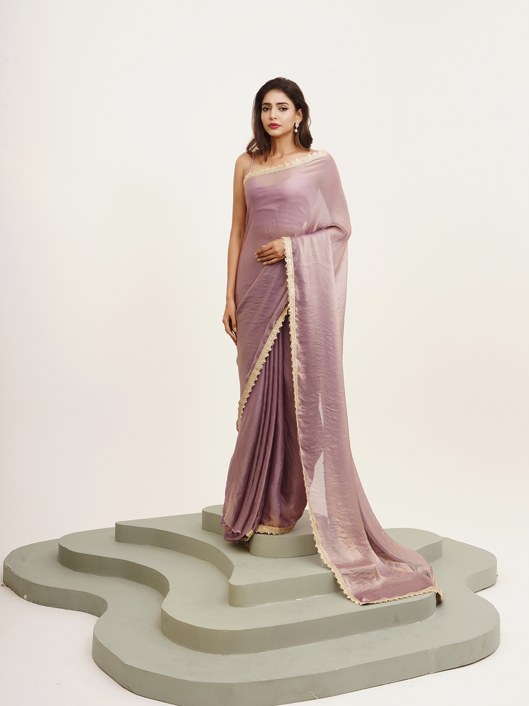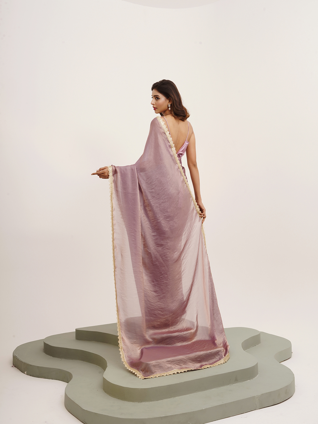 Lavender Color Beautiful Partywear Sequinned Satin Saree